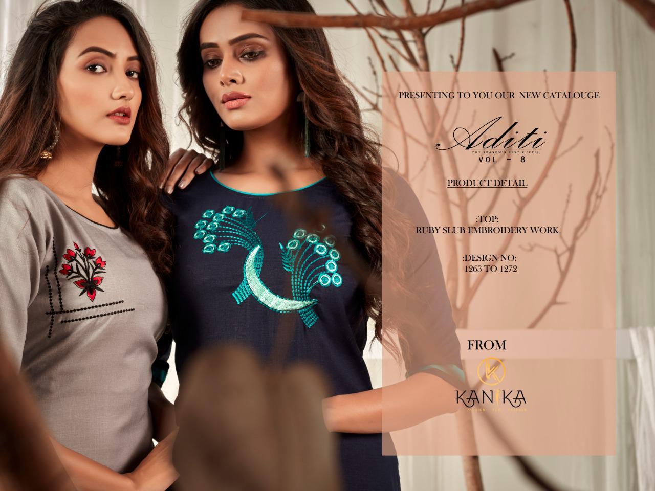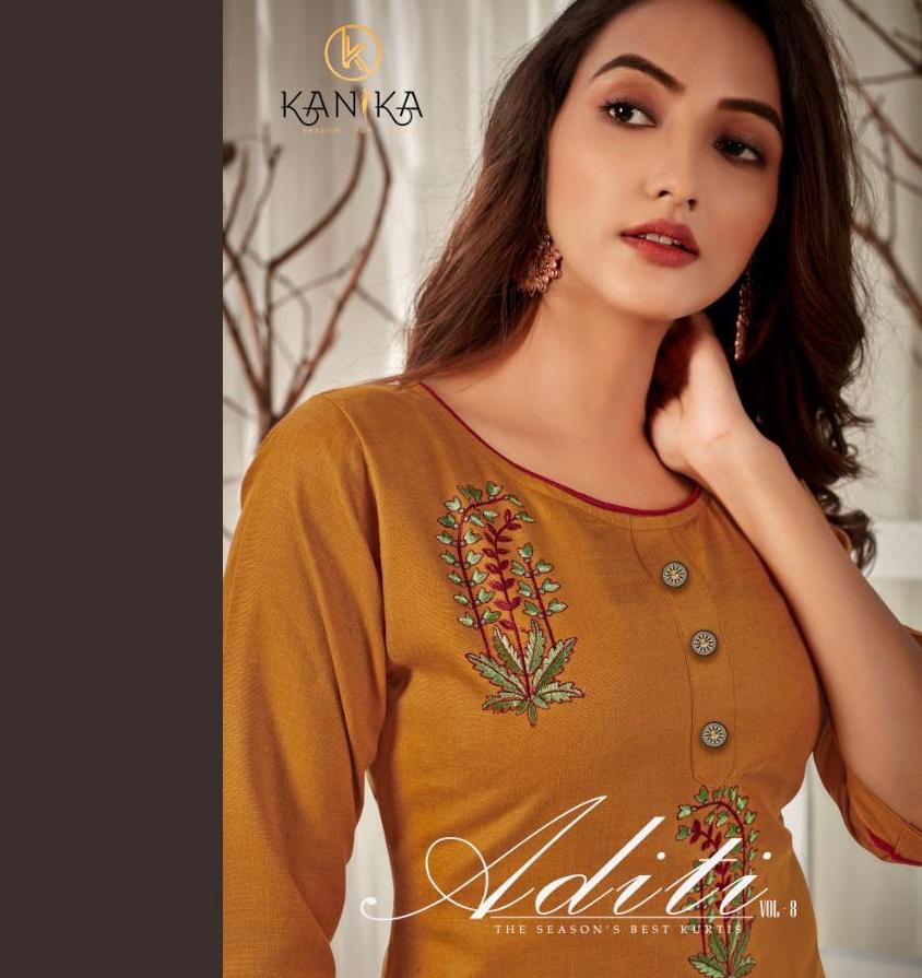 Buy Online Aditi Vol 8 By Kanika Manufacturer Traders Surat 10 Pcs of Full Catalogue at Wholesale Price. Looking for Aditi Vol 8 By Kanika Manufacturer Traders Surat Full Catalouge at Best Price? Buy Now Aditi Vol 8 By Kanika Manufacturer Traders Surat at Wholesale Rate of Rs 2710 with Total 10 Pcs from authroized dealer and supplier of KANIKA Brand. Cost of Each piece is just only Rs 271 which is very low and affordable price to resale the product in your retail store ,This is Surat based Wholesale Supplier & Dealer of KANIKA Brand. Click on Brand name to Know more about KANIKA Brand's products.Call or Whatsapp on 9898838984 for booking or enquiry