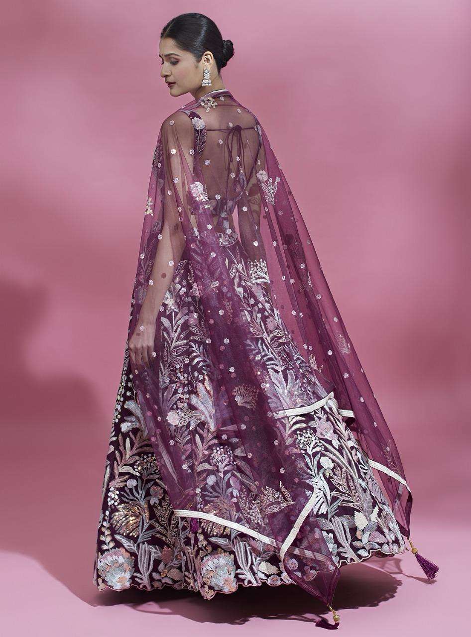 *📝 Product Details:* - *Lehenga:* Burgundy colour net full flair semi-stitched lehenga with multi-colour sequins and thread work embroidery 💃 - *Lehenga Stitching:* Double Shantoon inner with 2-layer Can Can and Buckram for added support 🧵 - *Dupatta:* Burgundy colour net dupatta with sequins embroidery work border and ethnic motifs 🧥 - *Blouse:* Burgundy net unstitched blouse with heavy sequins and thread embroidery work 👕 - *Lehenga Flair:* 3.5 meters with inner attached 📏