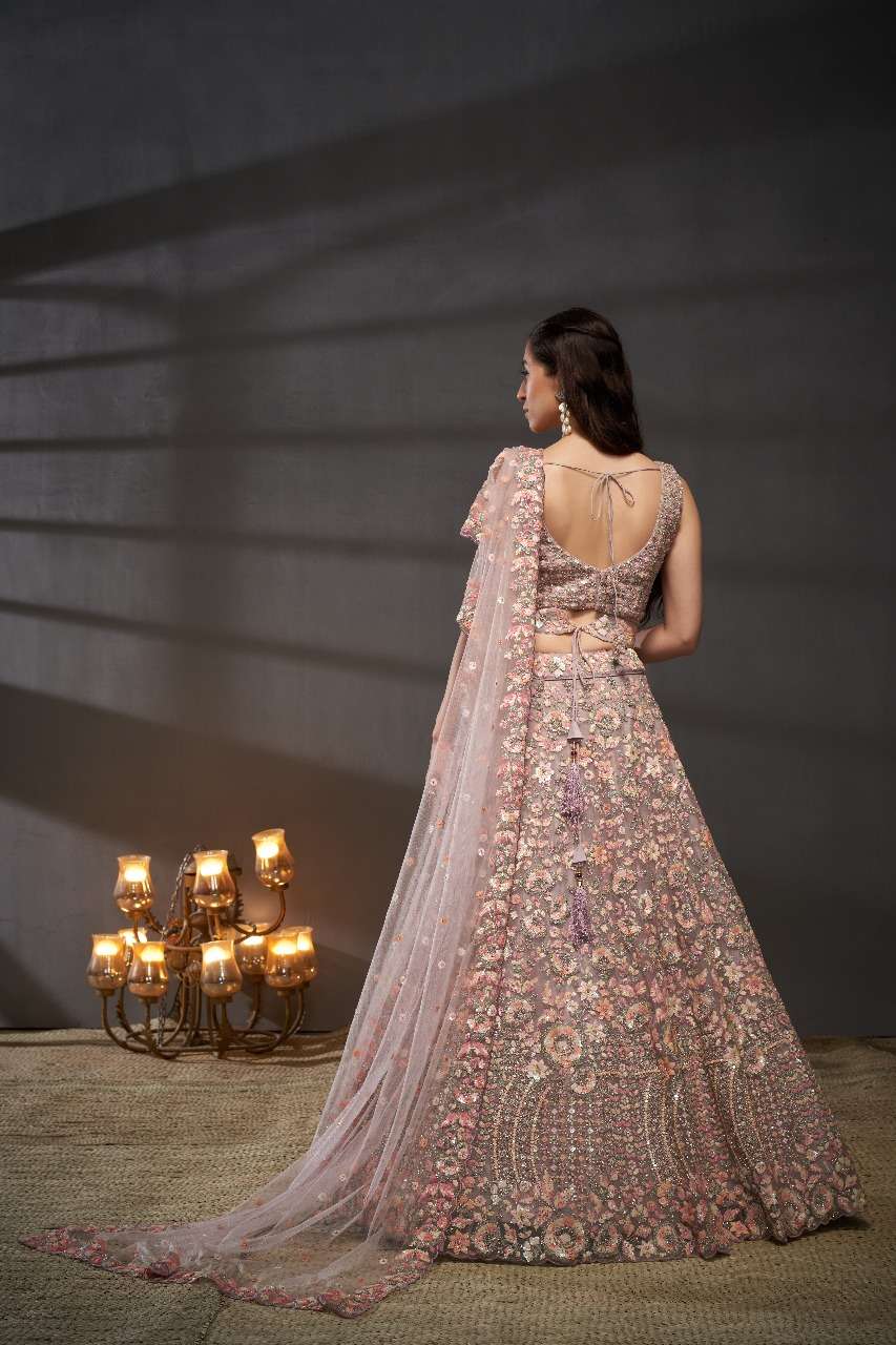 *📝 Product Details:* - *Lehenga:* Mauve colour net full flair semi-stitched lehenga with multi-colour sequins work, Zarkan, and coding thread work embroidery 👗 - *Lehenga Stitching:* Double Shantoon inner with 2 layers of Can Can and Buckram for added support 🧵 - *Dupatta:* Mauve net dupatta with multi-colour sequins work ethnic motif and embroidery lace border 🧥 - *Blouse:* Mauve net all-over material with heavy embroidery and multi-colour sequins work 👕 - *Lehenga Flair:* 3.5 meters with inner attached 📏