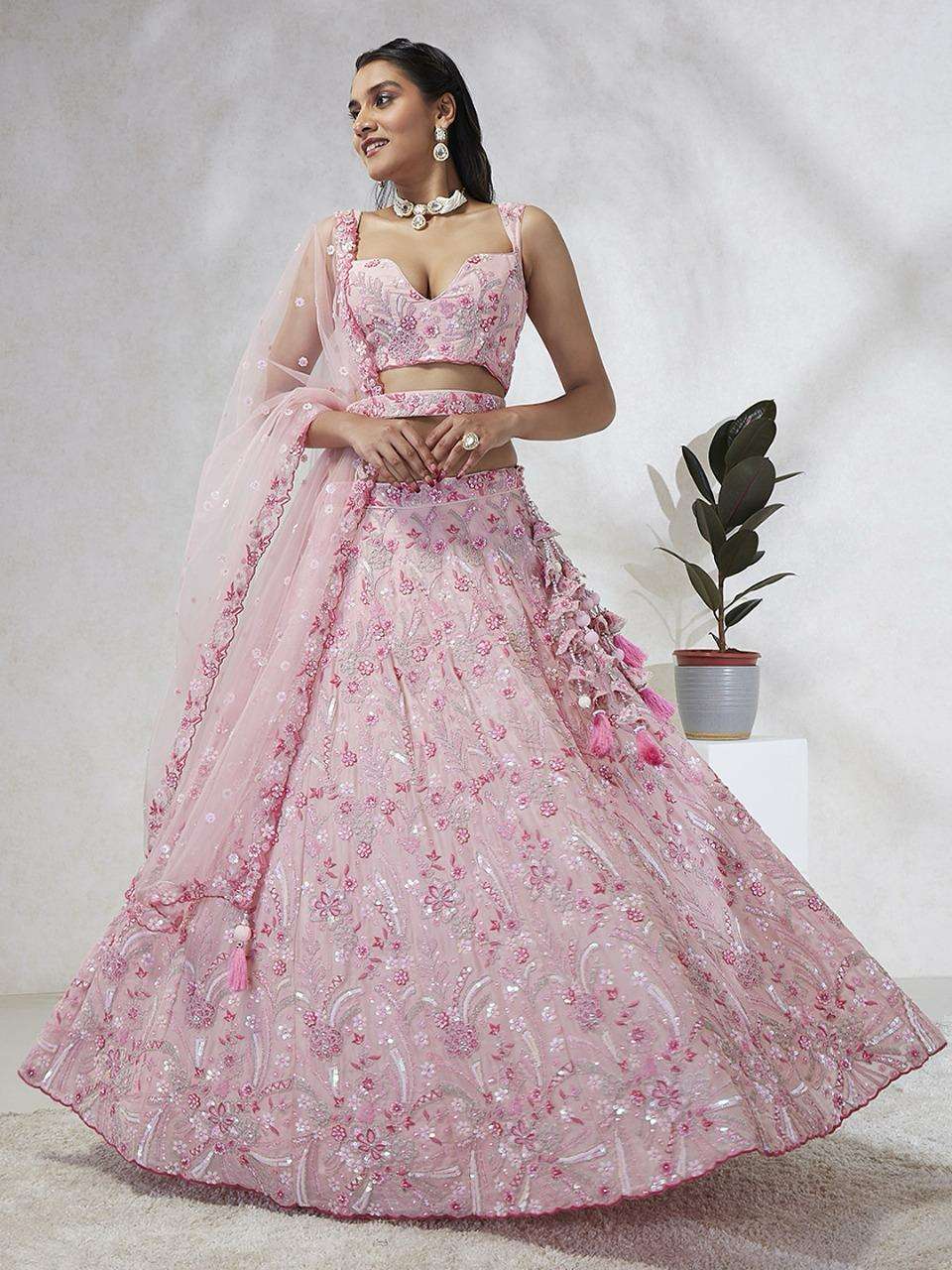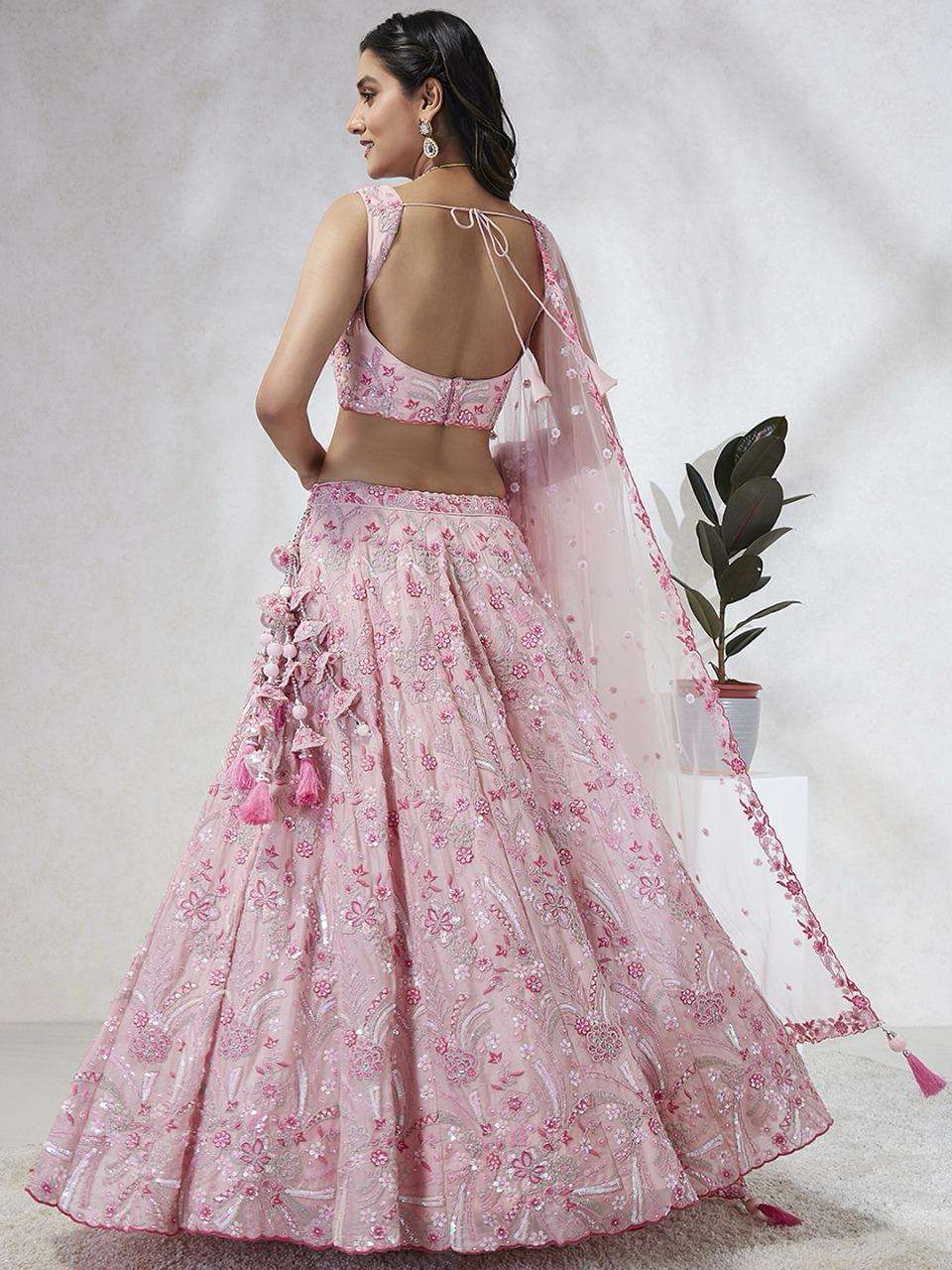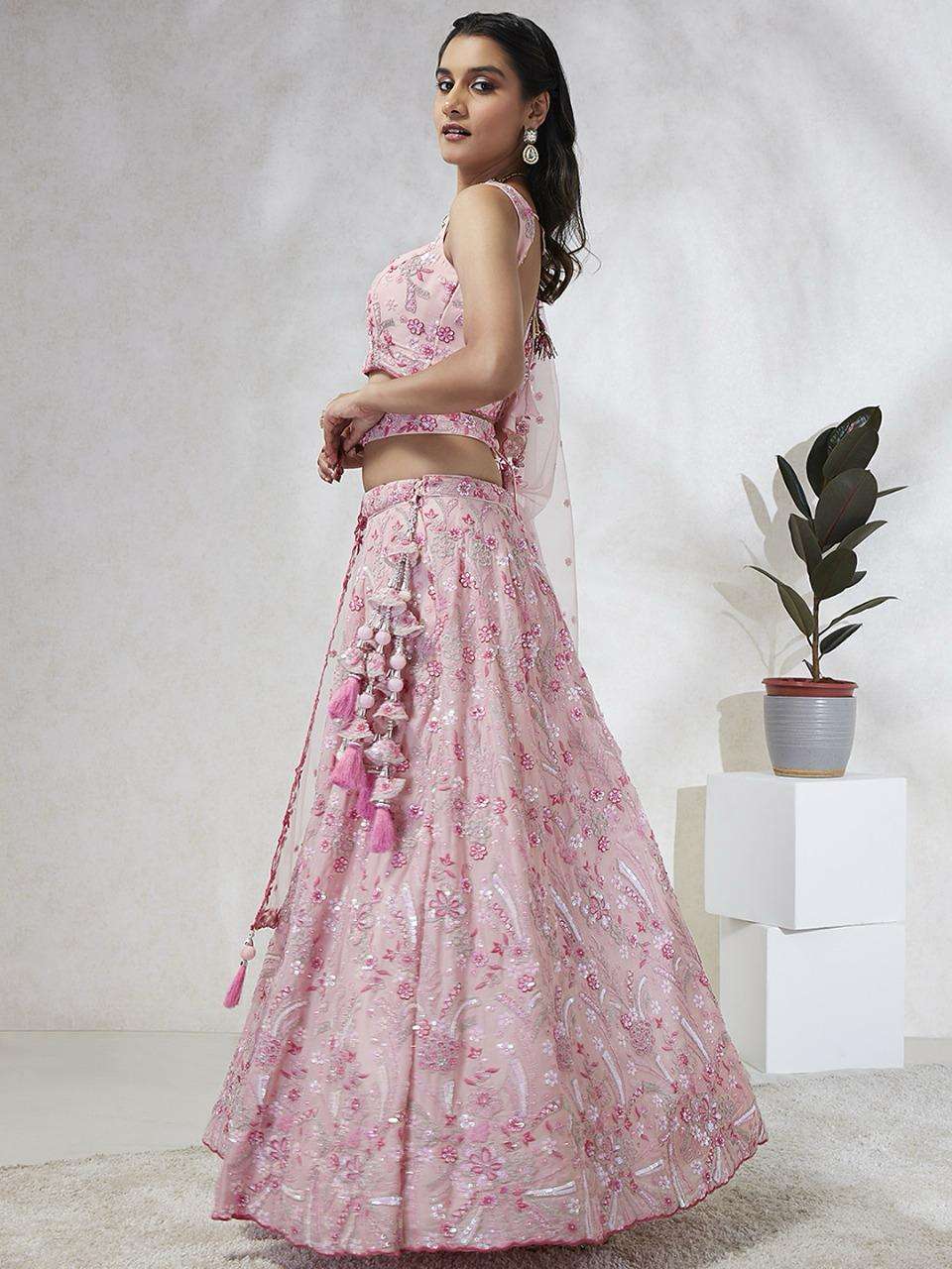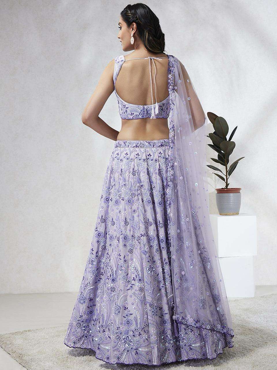 *📝 Product Details:* - *Lehenga:* Made of premium quality Lavender Colour Pure Georgette fabric Full Flaire Semi-Stitched Lehenga with heavy Sequins and thread Work Embroidery 🧵 - *Lehenga Stitching:* Double Shantoon inner with 2 layers of Can Can and Buckram for added support 🧵 - *Dupatta:* Lavender Net Dupatta with sequinse work Ethnic motif, Embroidery lace Border, and latkan on the corner 🧥 - *Blouse:* Lavender Pure Georgette all-over material with Heavy Embroidery and multi-color sequinse work 👕 - *Lehenga Flair:* 4 meters with Inner attached 📏 - *Waist Belt:* Cutdana, Sequinse Embroidered belt with Stunning tassels 👖 - *Lehenga Latkan:* Unique long lehenga hand-made tassel with ethnic work hanging beads latkan 💎