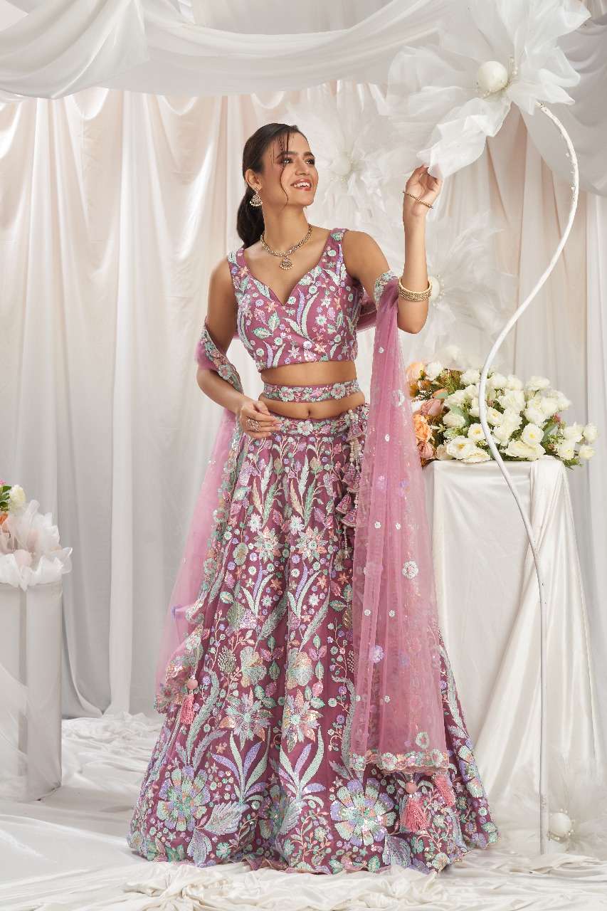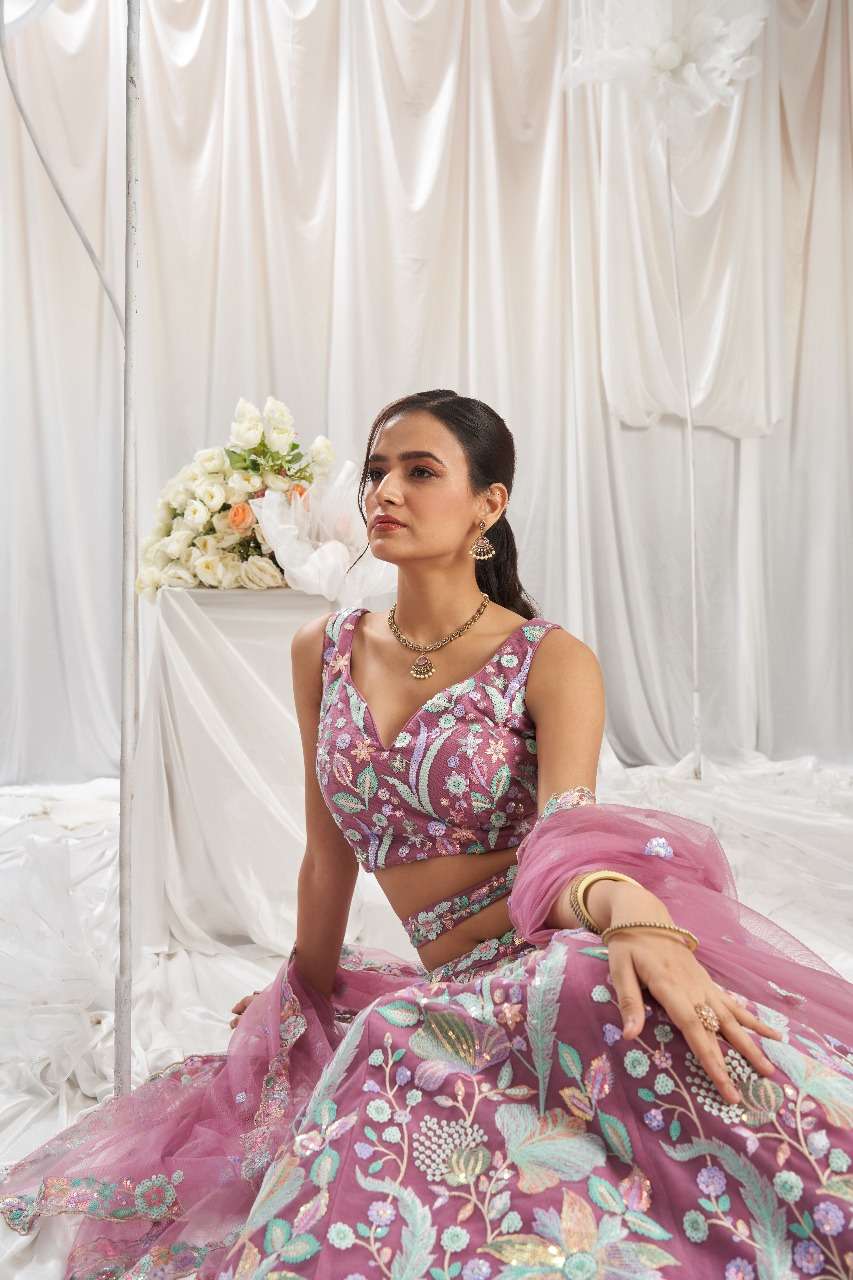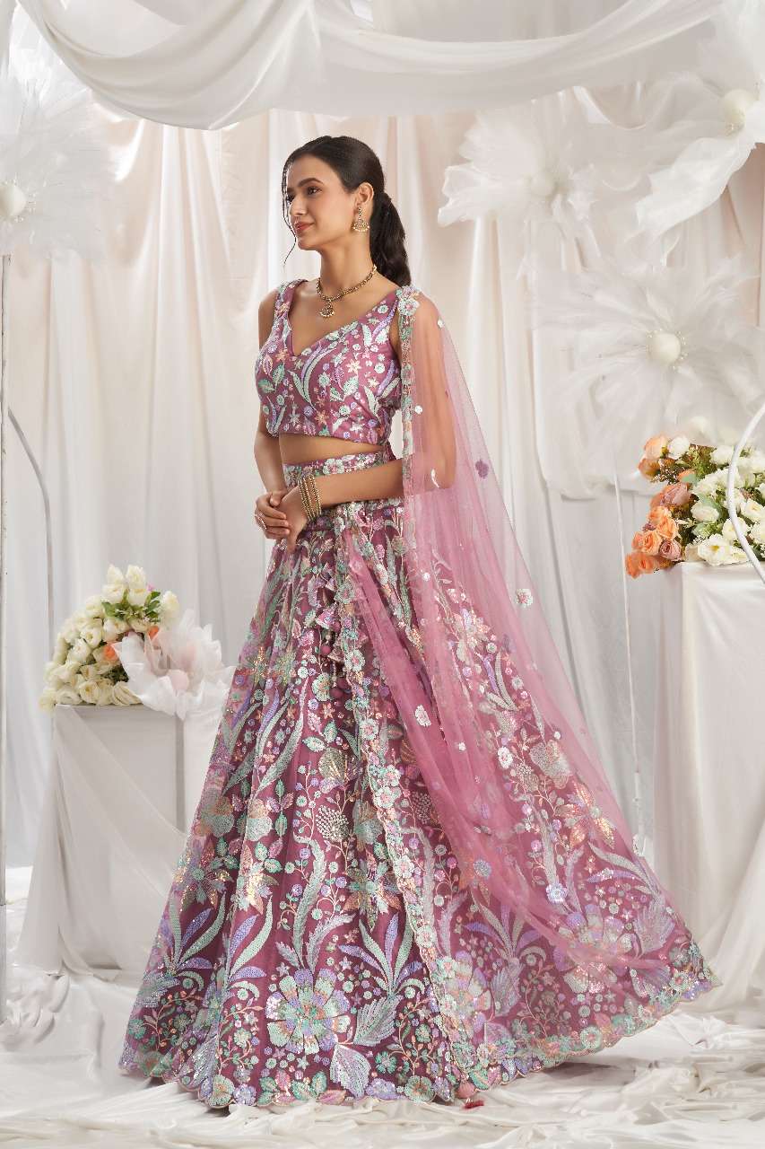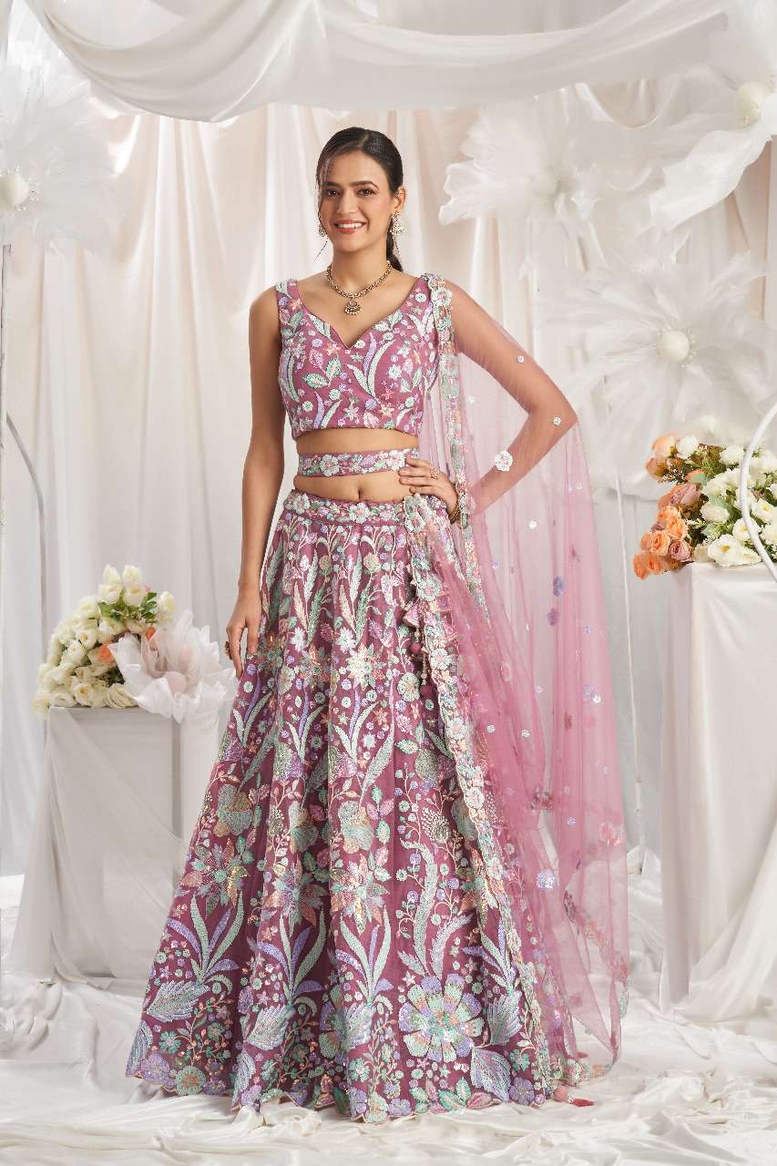 Adorn Craft 6058 Cream Lime Green Mauve Rose Gold Lehenga choli collection manufacturer surat