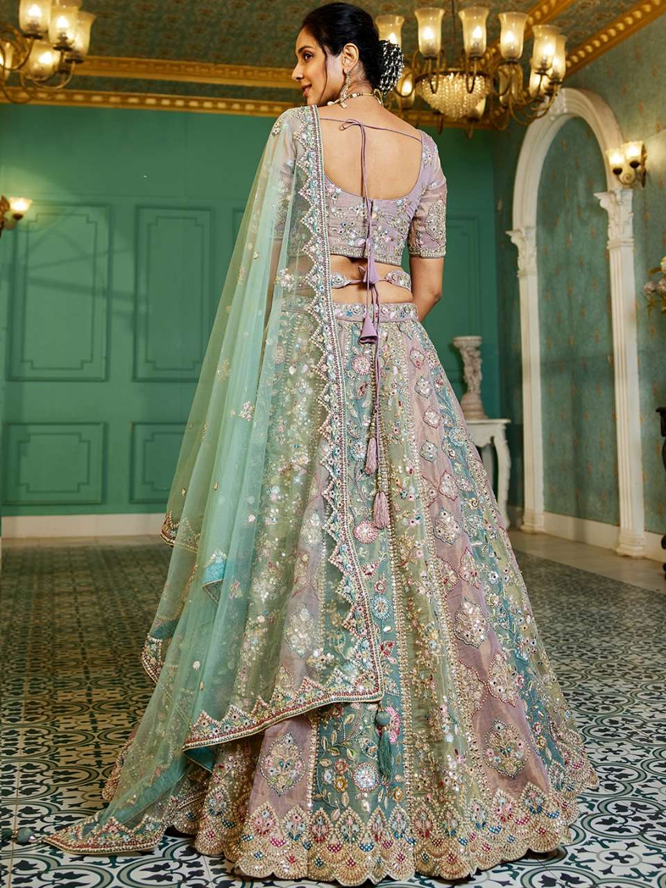 *Blouse Details* - *Fabric:* Lavender Bridel Net fabric - *Work:* Heavy sequinse and thread Embroidery - *Neckline:* Sweetheart - *Inner:* Shantoon inner attached