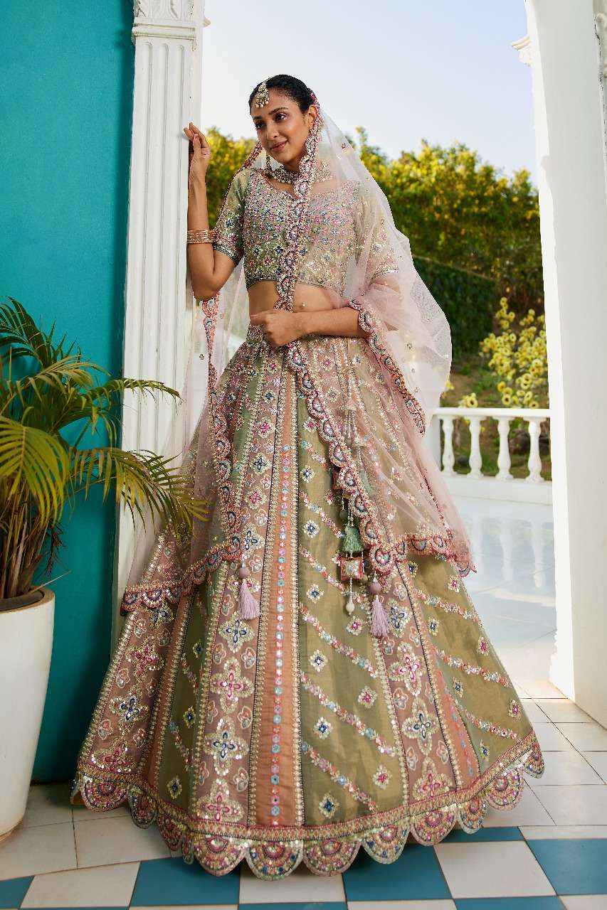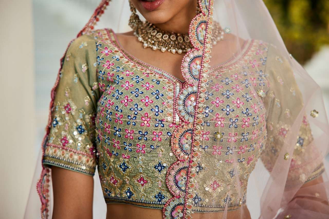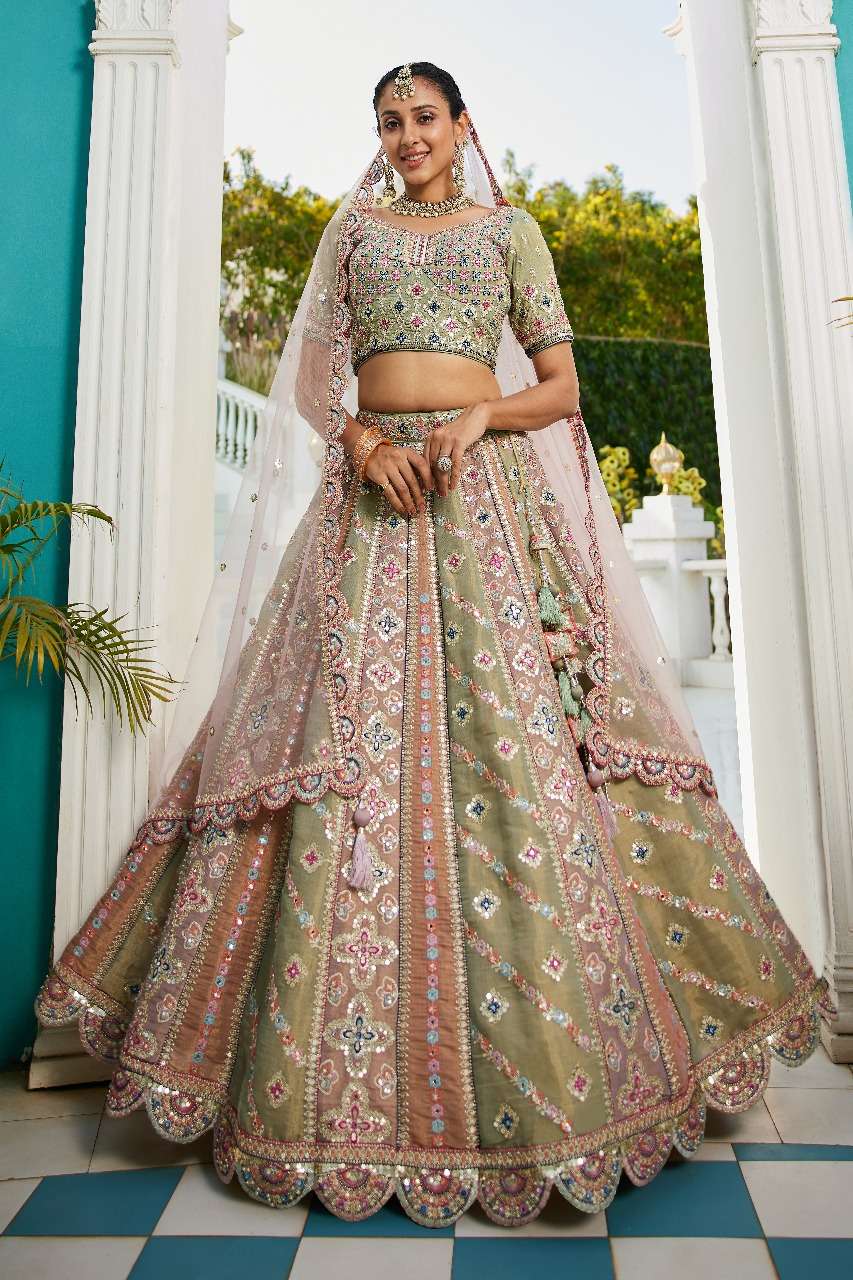 ADORN CRAFT 6114 LAVENDER LIMEGREEN net lehenga choli collection manufacturer surat