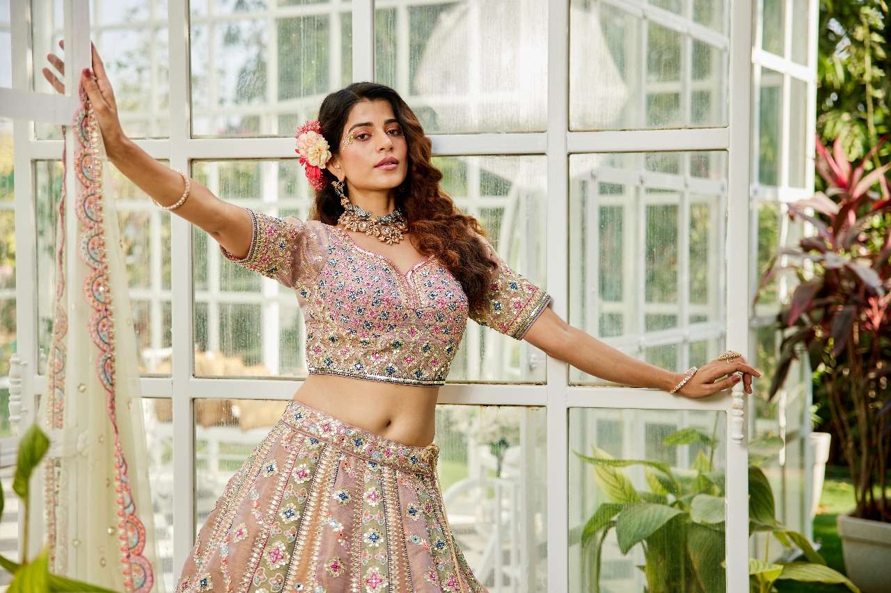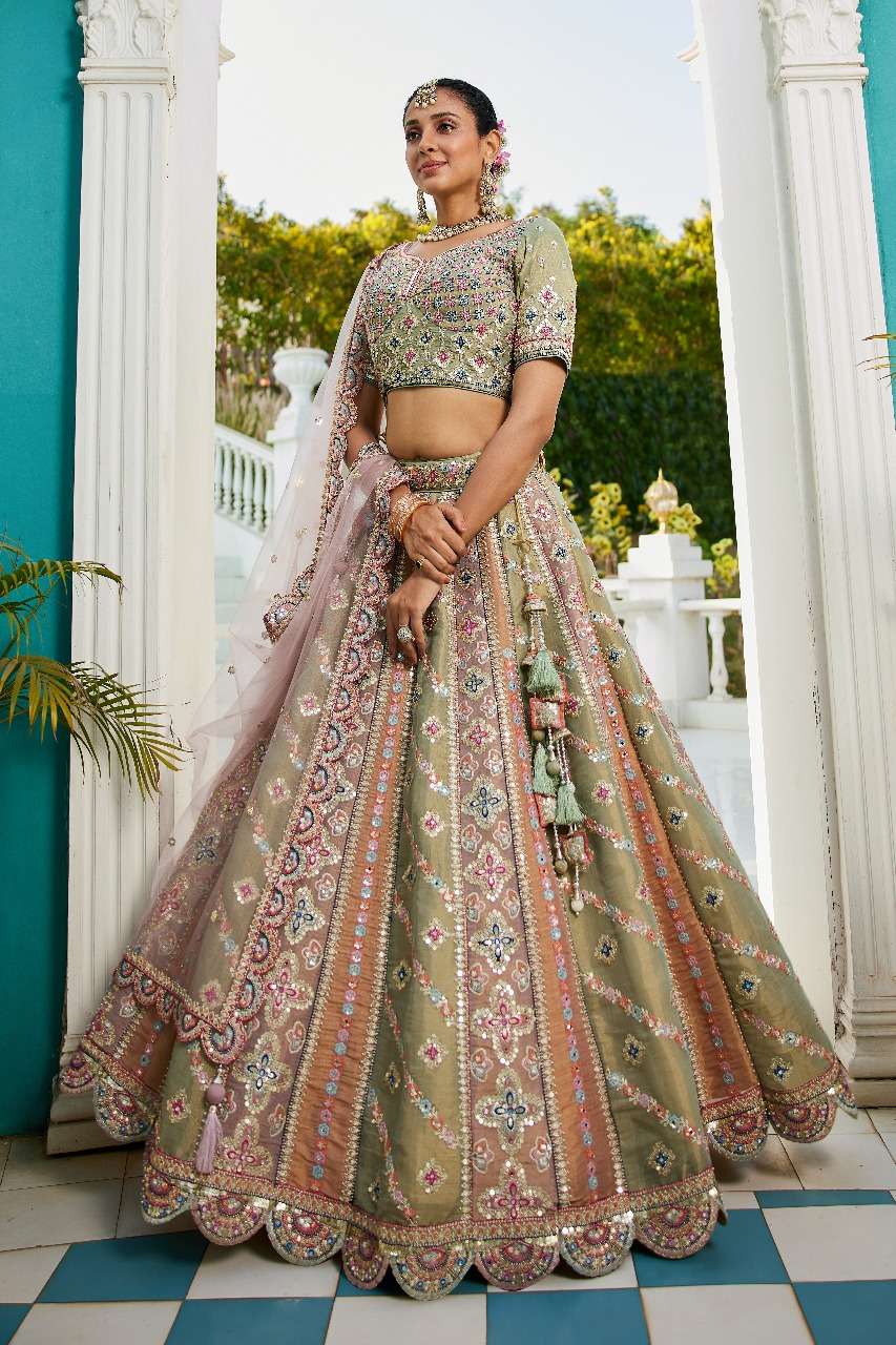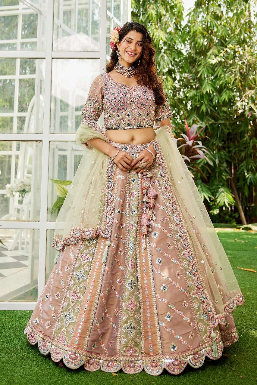 ADORN CRAFT 6114 LAVENDER LIMEGREEN net lehenga choli collection manufacturer surat