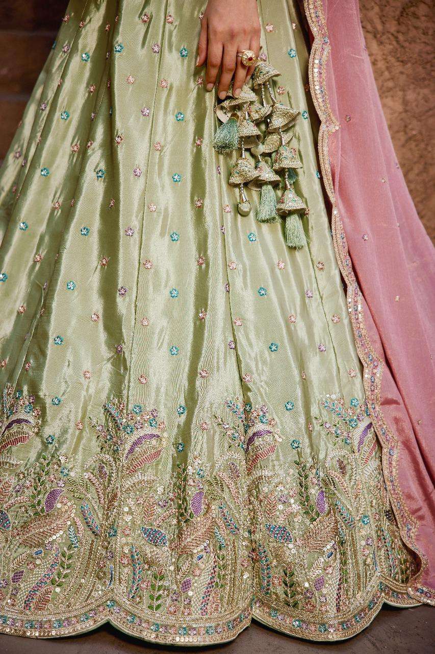 *Additional Features* - *Lehenga Flair:* 3.5 meters with inner attached - *Lehenga Latkan:* Unique long lehenga handmade tassel with ethnic work hanging beads latkan