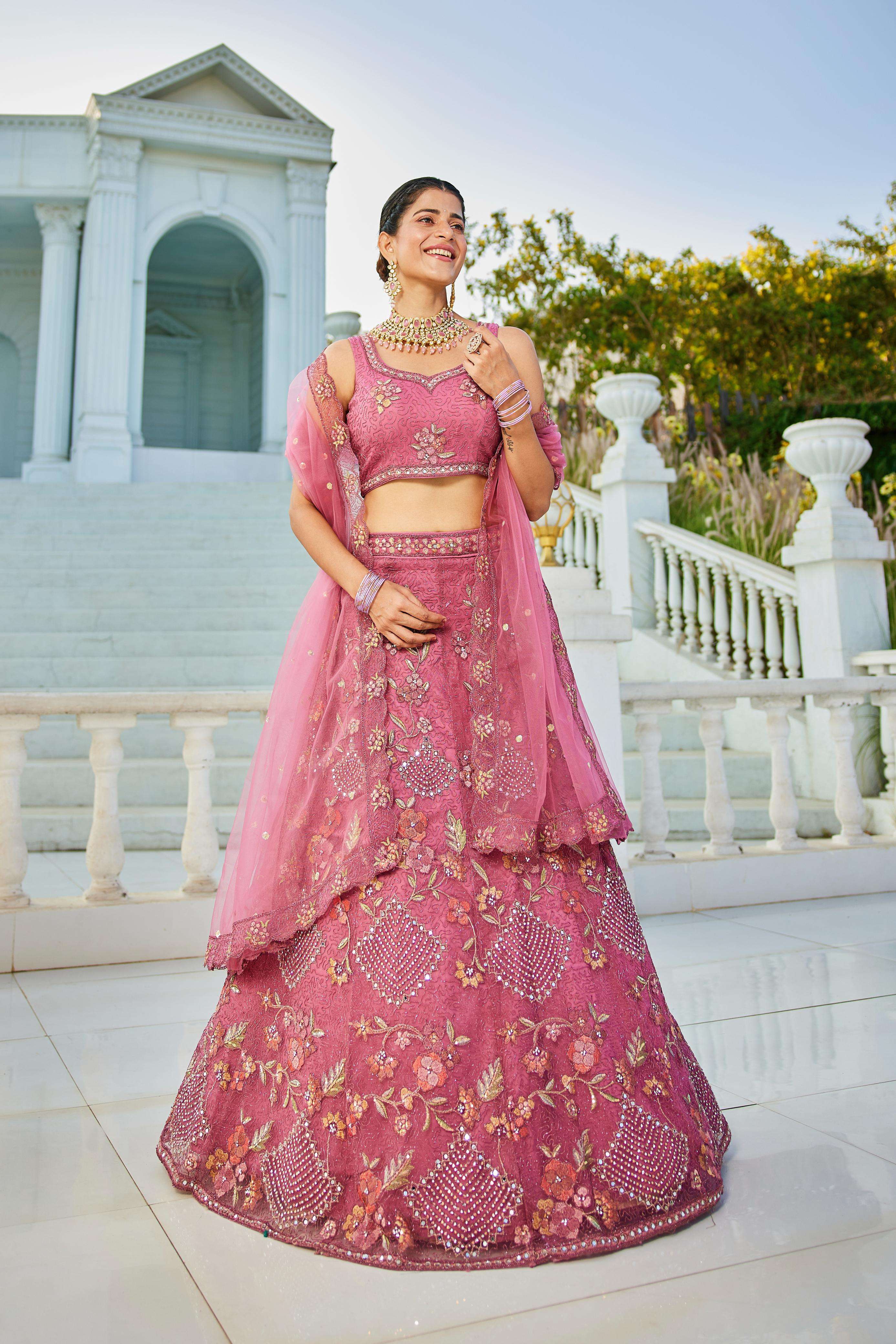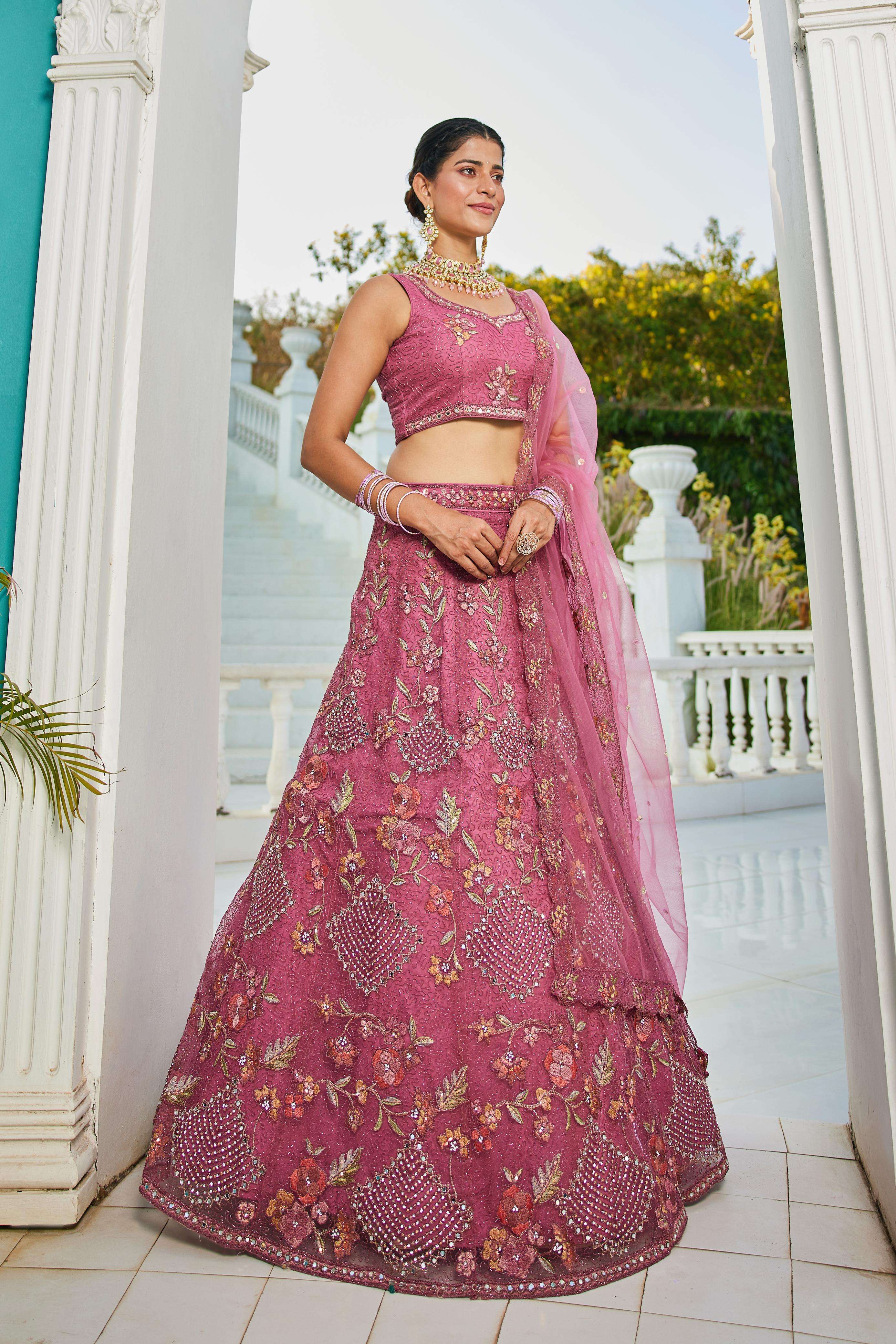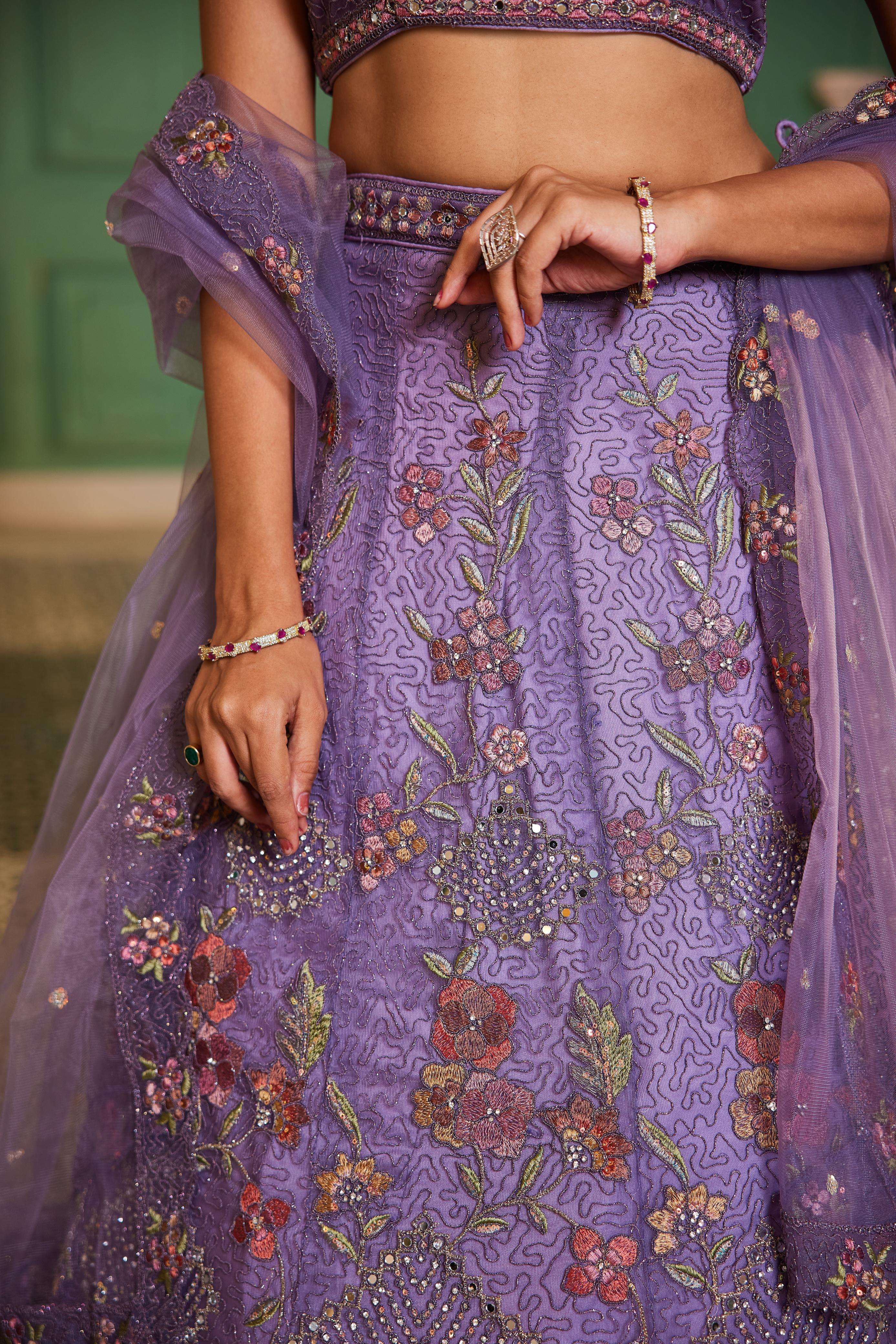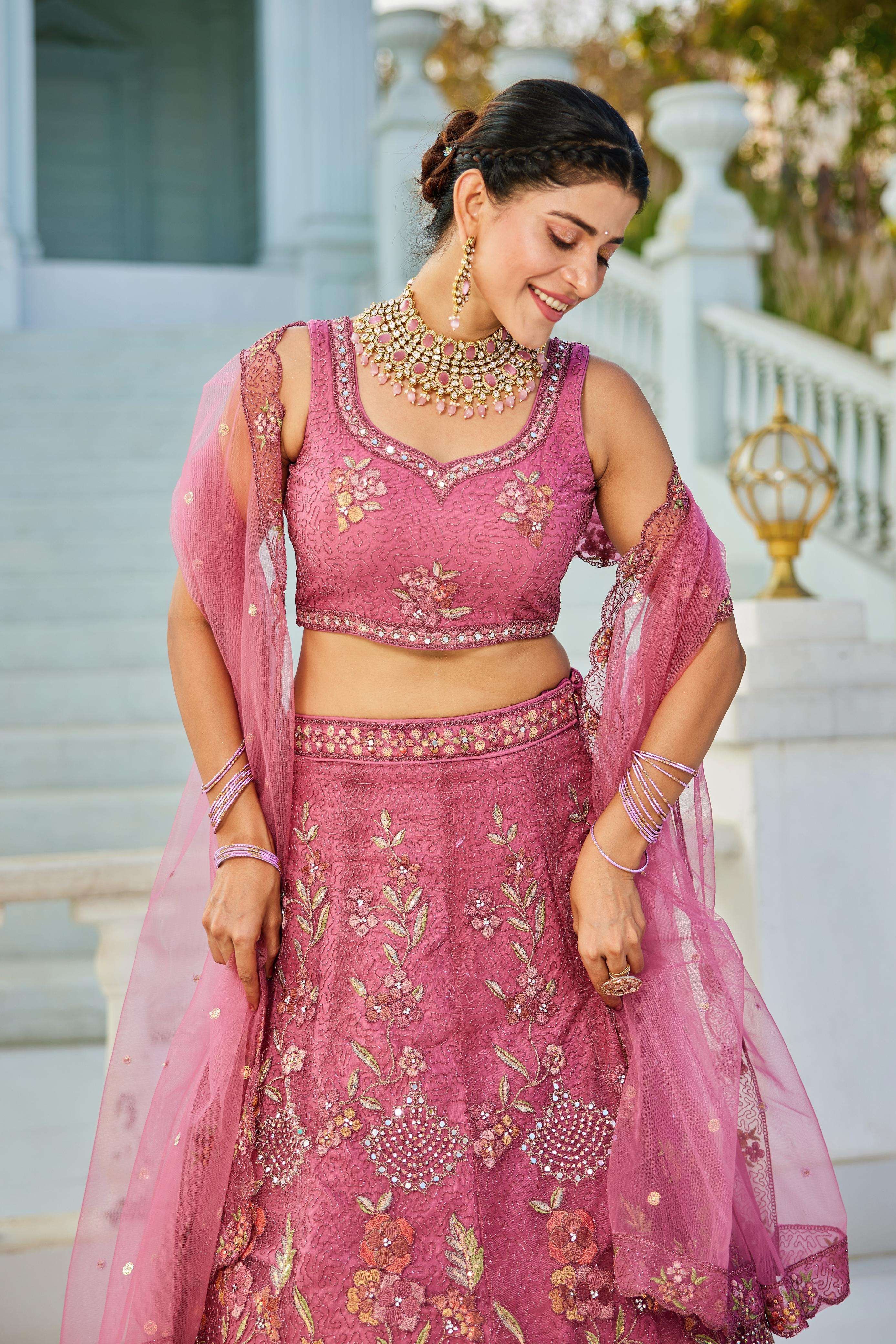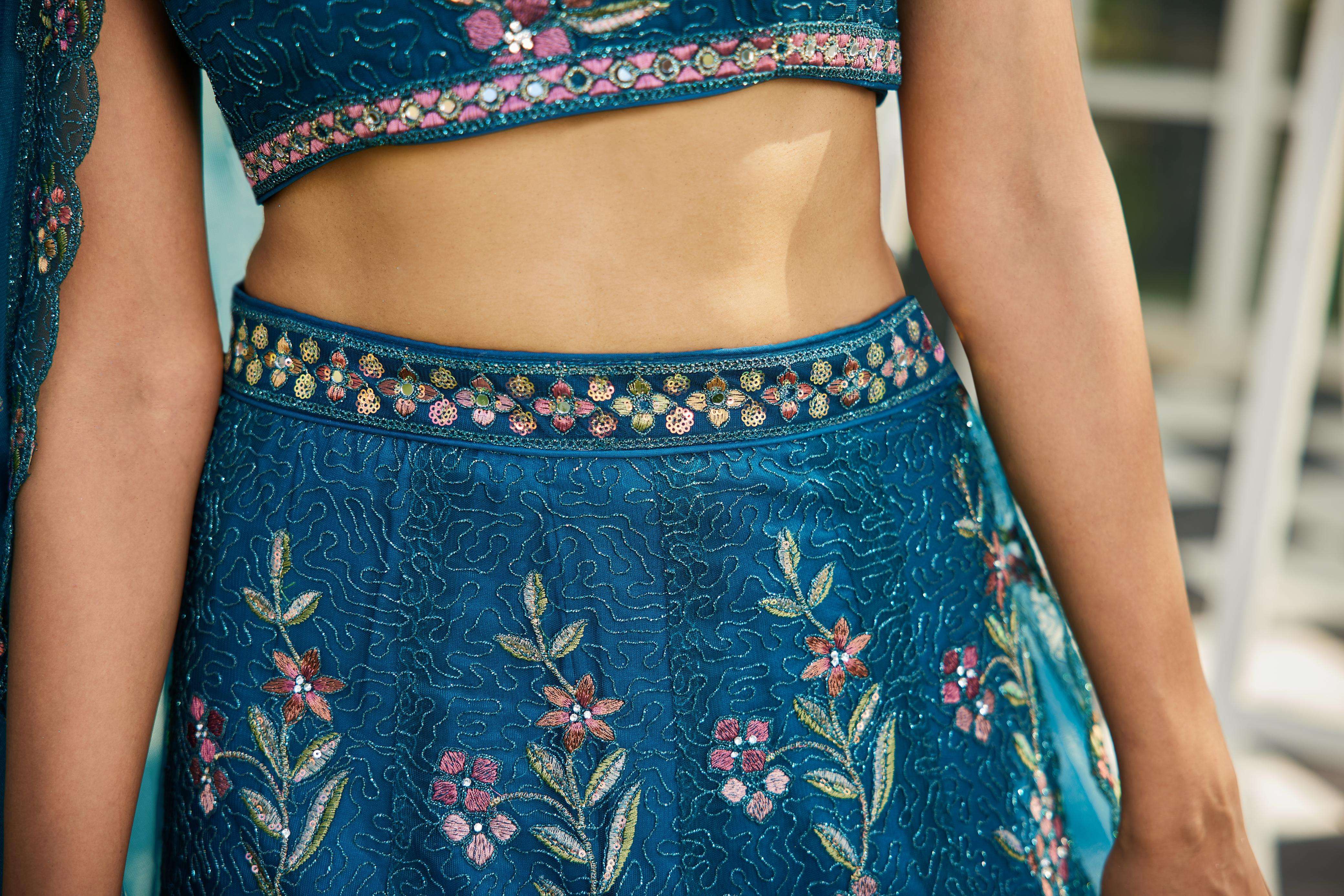 "• Lehenga:- Made of premium quality NEW Colour Net fabric Full Flaire Semi-Stitched Lehenga With Sequins, Zarkan with Coding thread Embroidery work. Has a Coding cutwork border on the hemline. • Lehenga Stitching Note:- Double Shantoon inner with Can Can 18 inch with Buckram 9 inch is given together in lehenga. • Dupatta:- Net Dupatta has a sequinse Ethnic motif with Embroidery work Border. • Blouse:- Net fabric Sweetheart Neck material With Heavy sequinse and thread Embroidery work. Has a shantoon inner attached. • Lehenga Flair : 3 meter with Inner attached."