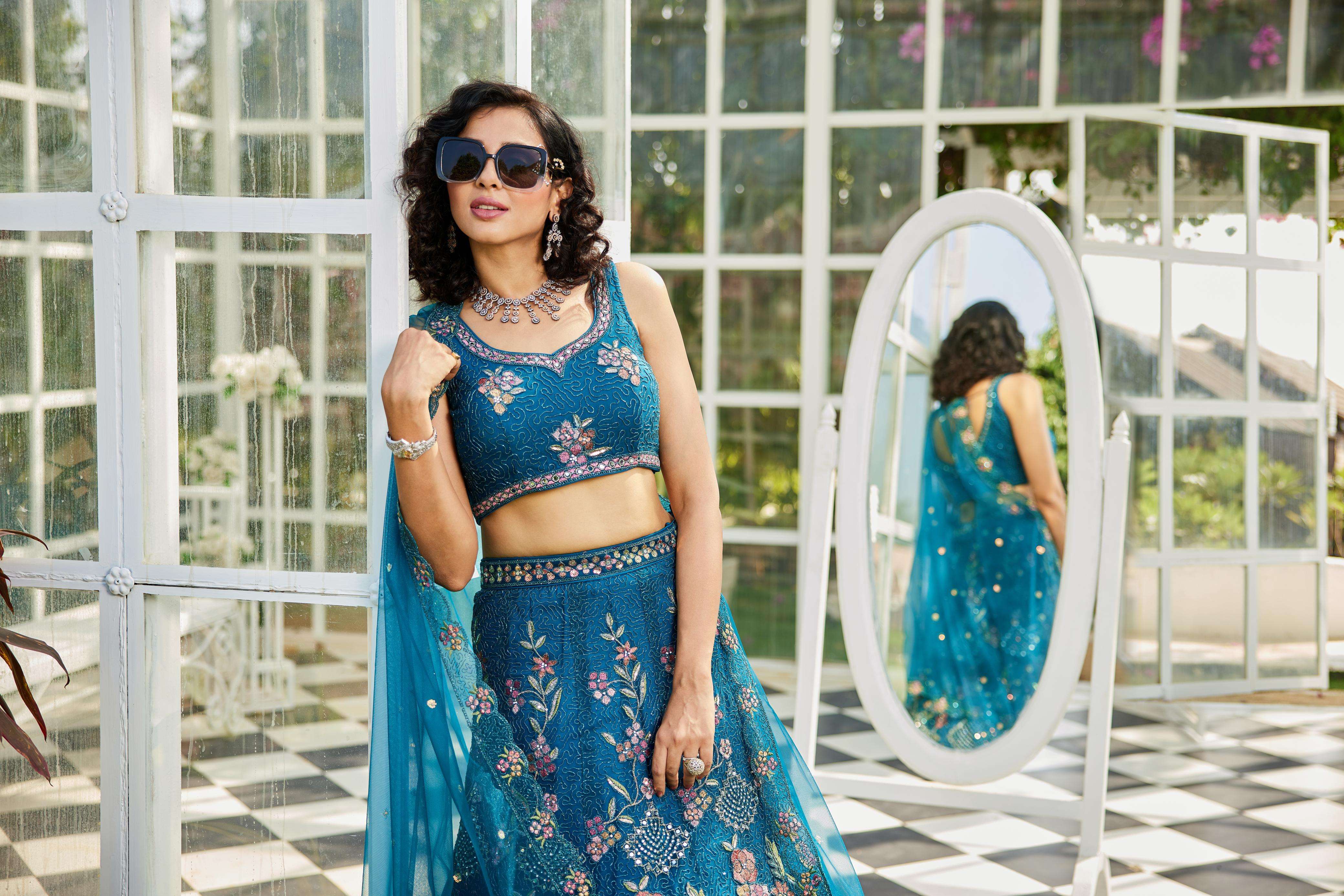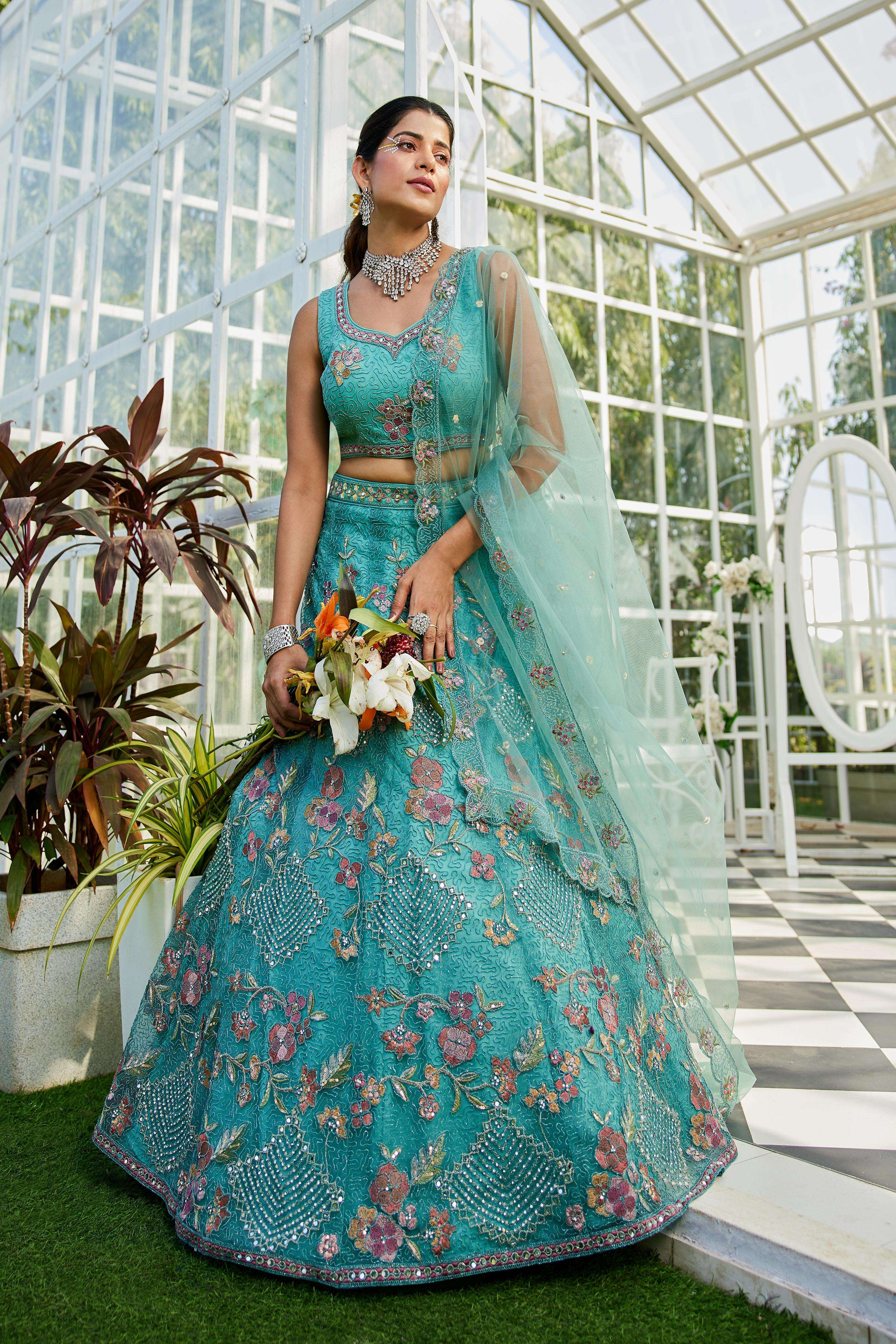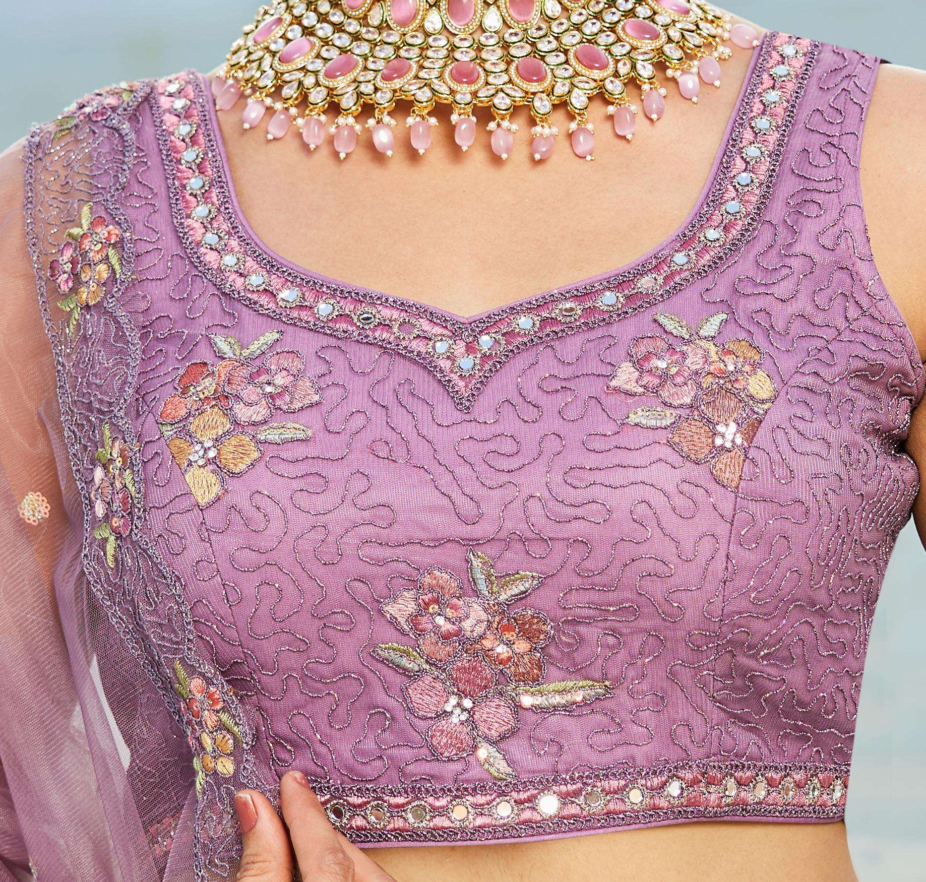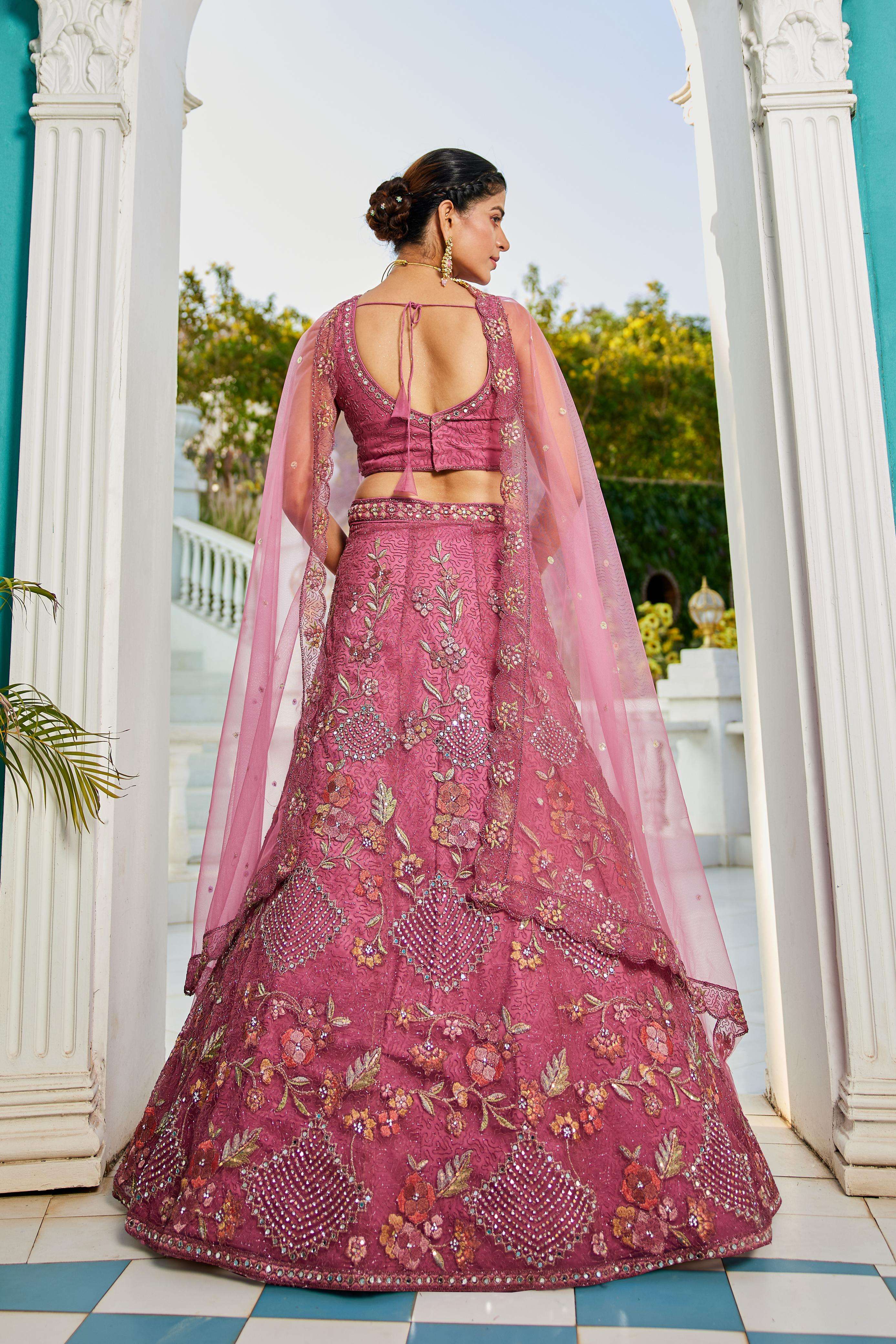 "• Lehenga:- Made of premium quality NEW Colour Net fabric Full Flaire Semi-Stitched Lehenga With Sequins, Zarkan with Coding thread Embroidery work. Has a Coding cutwork border on the hemline. • Lehenga Stitching Note:- Double Shantoon inner with Can Can 18 inch with Buckram 9 inch is given together in lehenga. • Dupatta:- Net Dupatta has a sequinse Ethnic motif with Embroidery work Border. • Blouse:- Net fabric Sweetheart Neck material With Heavy sequinse and thread Embroidery work. Has a shantoon inner attached. • Lehenga Flair : 3 meter with Inner attached."