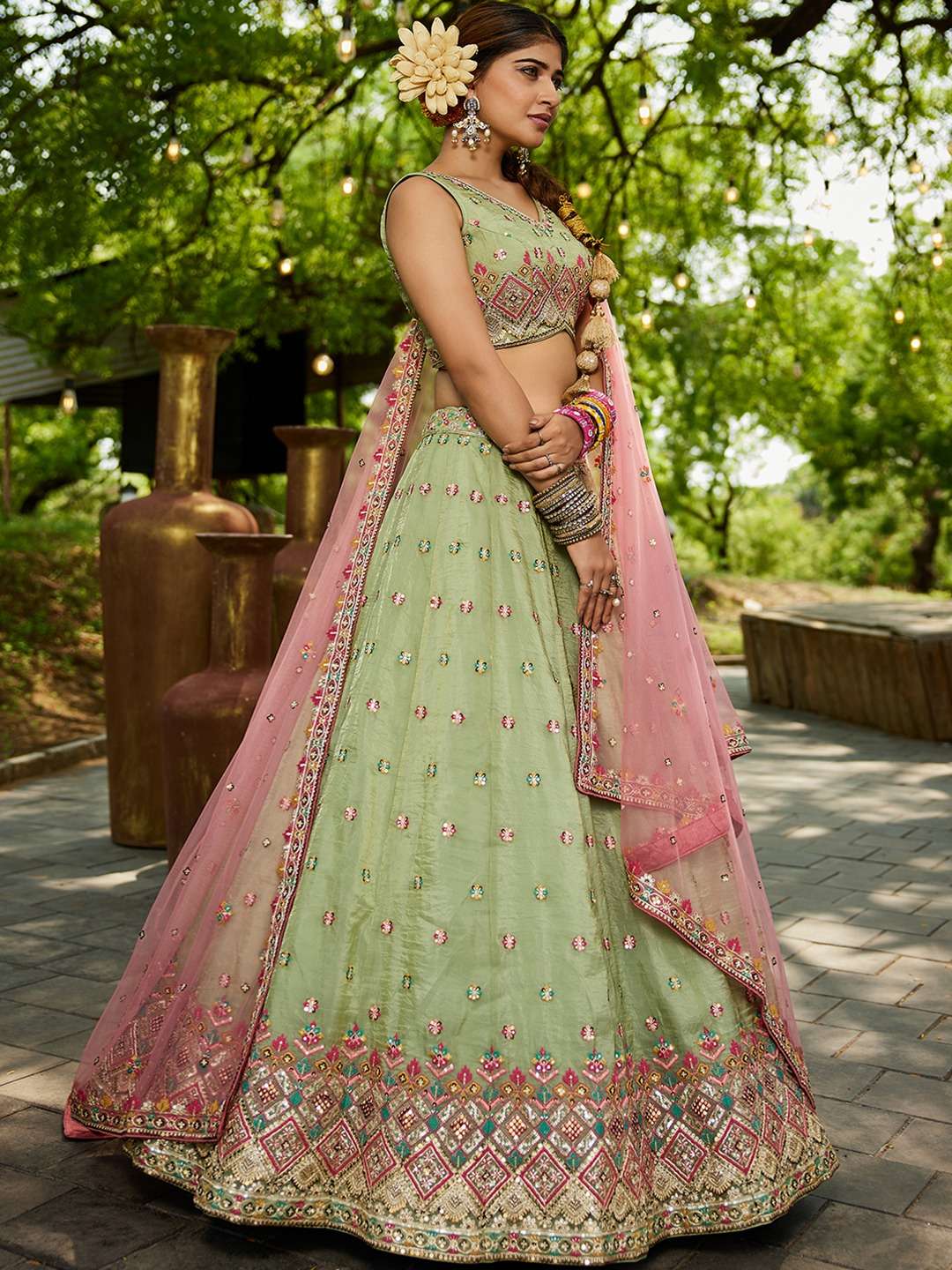 ADORN CRAFT 6159-LIMEGREEN,TEAL,LAVENDER,PINK LEHENGA HD