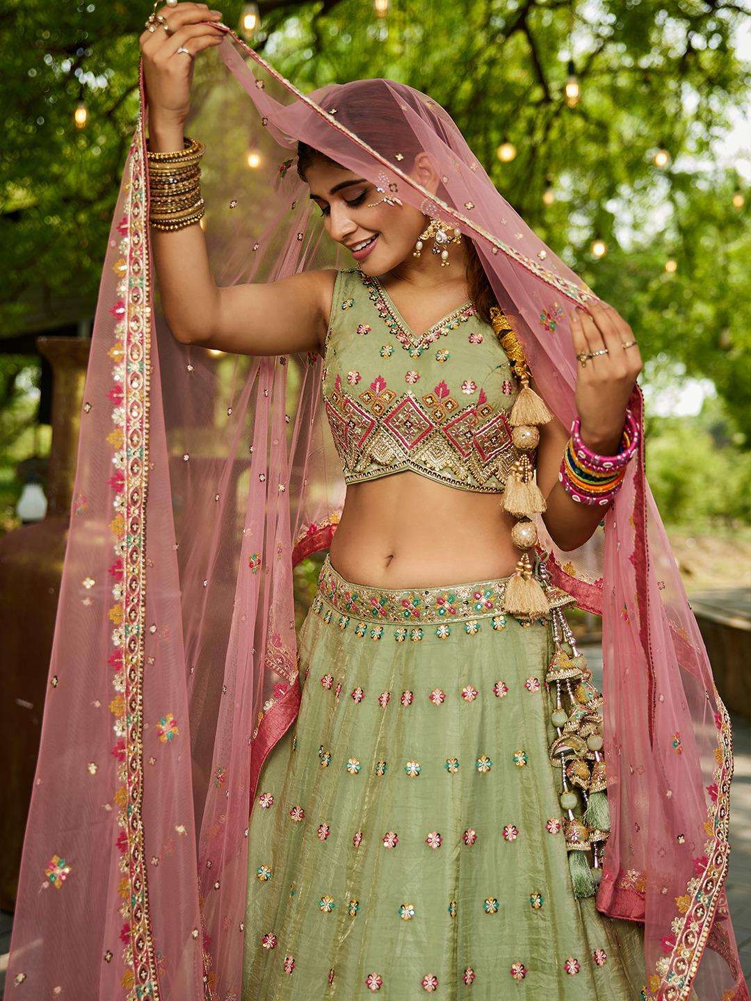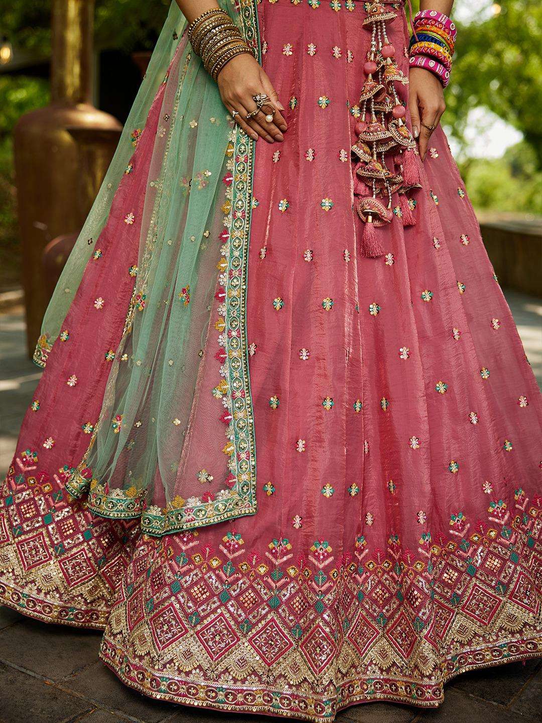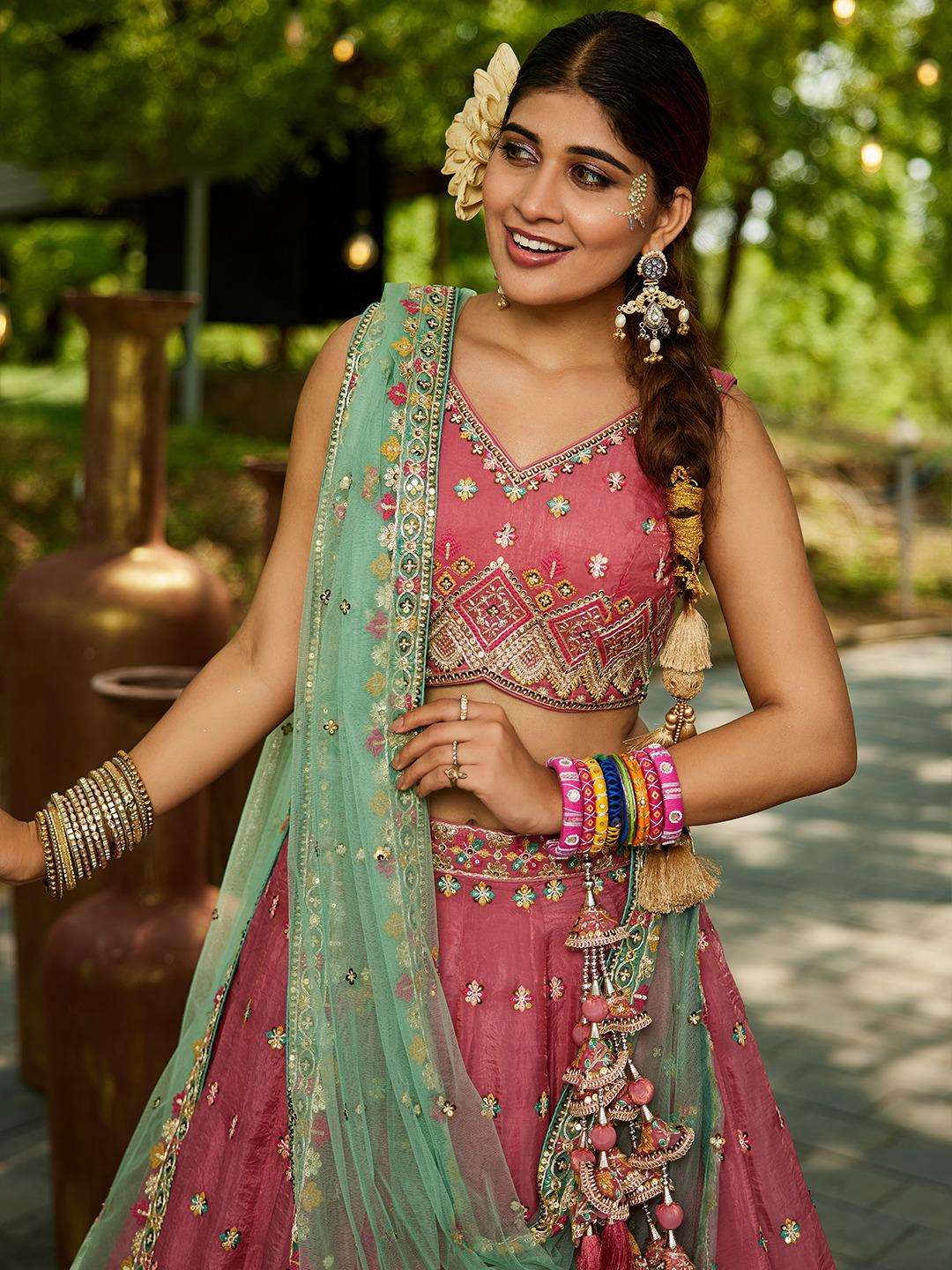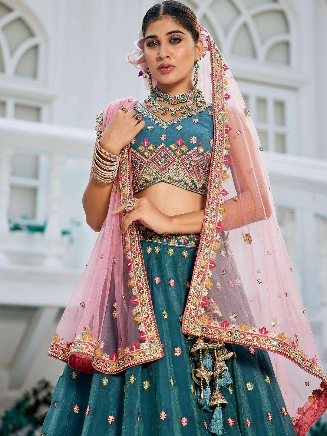 ADORN CRAFT 6159 LIMEGREEN TEAL LAVENDER PINK LEHENGA collection manufacturer surat