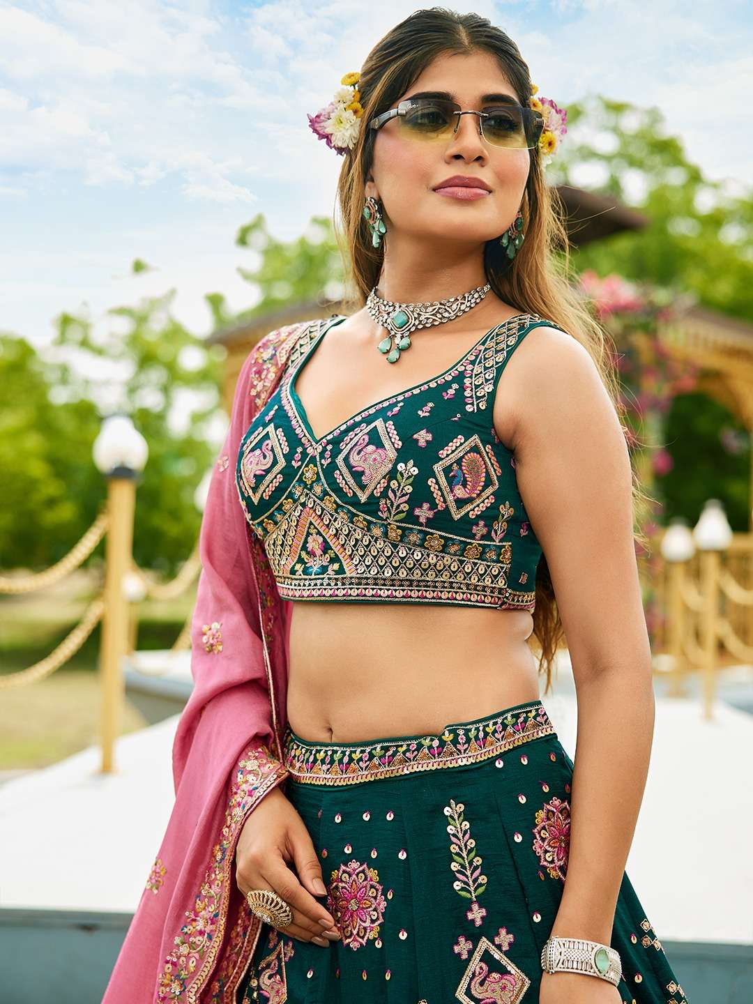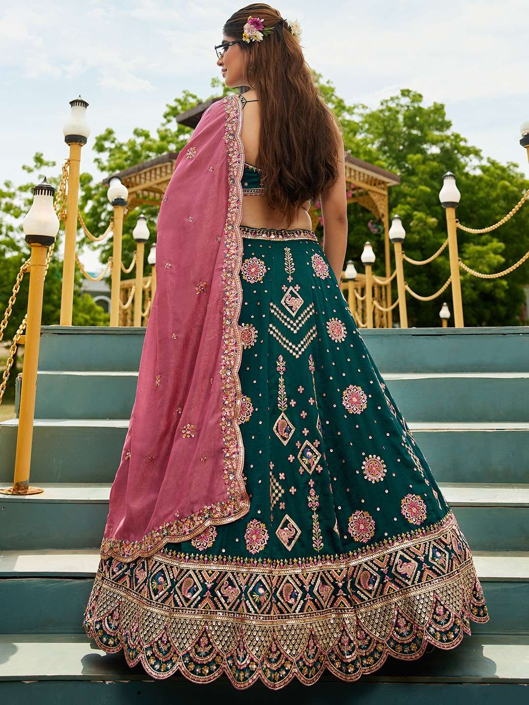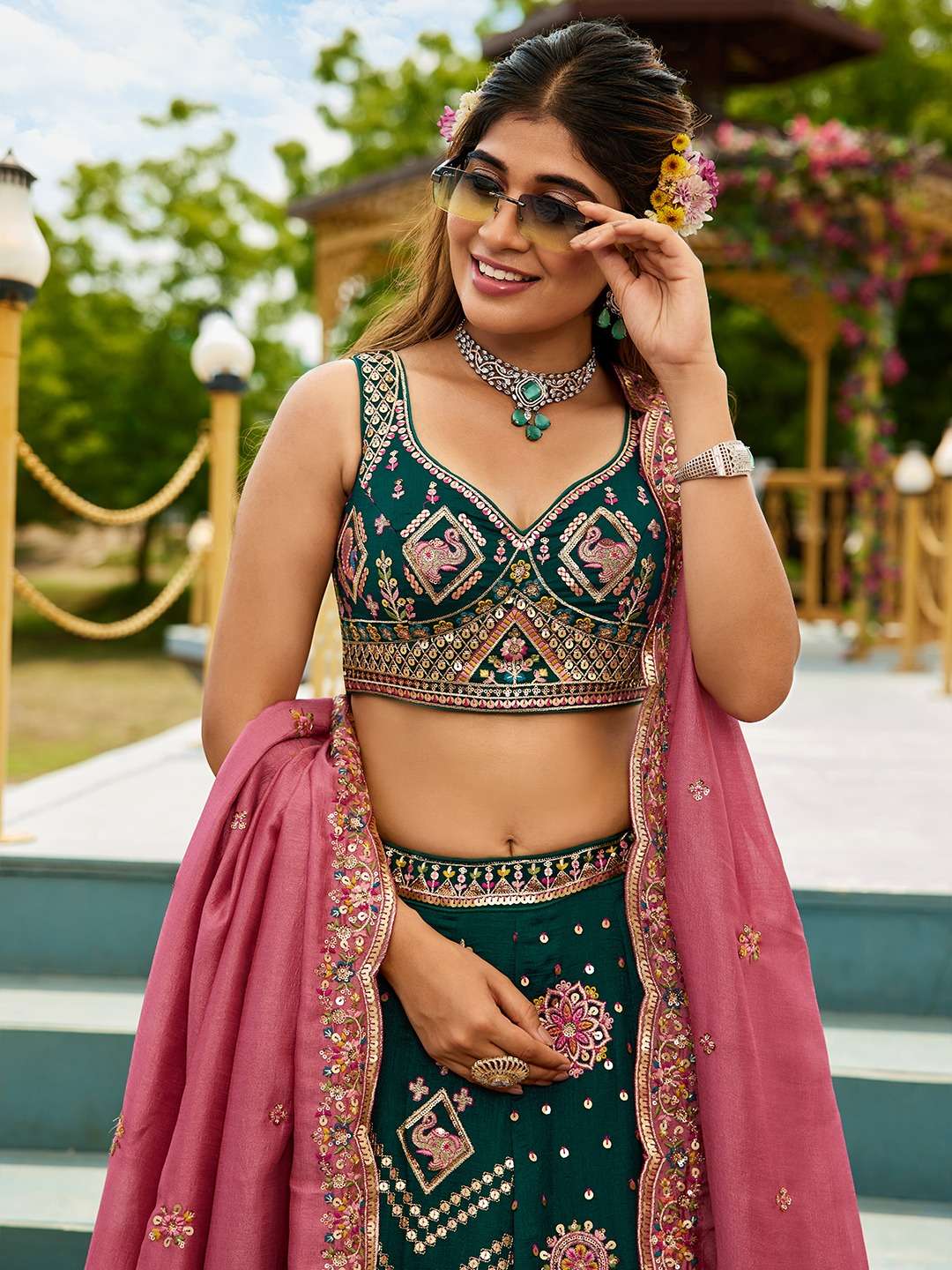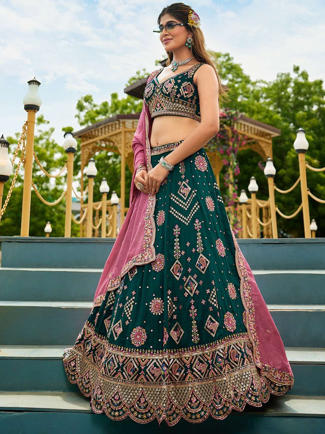 ADORN CRAFT 6201 SEMI STITCHED -4985/- FULL STITCHED -5985/- (XS,S,M,L,XL) GST 12% GST EXTRA Georgette Sequinse embroidery Semi-Stitched Lehenga choli & Dupatta"• Lehenga:- Made of premium quality Green Colour Georgette fabric Full Flaire Semi-Stitched Lehenga With Sequinse and Coding work has a thread Embroidery work. Has a thread cutwork border on the hemline. • Lehenga Stitching Note:- Double Shantoon inner with Can Can 17 inches with 2 layers of Buckram 9 and 5 inch is given together in lehenga. • Dupatta:- Pink Georgette has a Ethnic Dupatta with Heavy Coding, Embroidery cut work Border. • Blouse:- Green Georgette crush fabric Sweetheart pattern material With Heavy Sequinse, Coding and thread Embroidery work. Has a shantoon inner attached. • Lehenga Flair : 3.4 meter with Inner attached."1 Lehenga ; 1 Choli ; 1 Dupatta"• Lehenga: Customizable upto 40 inches at the waist, • Lehenga Flair: 3.5 Meter • Lehenga Belt: 27 inch. • Lehenga length: 42 inches at the length • Choli: Customizable upto 38 inches at the Bust • Dupatta length: 2.50 meter • Dupatta width: 1 meter"Poly GeorgettePoly GeorgettePoly GeorgetteSequinnedDrawstringSemi-StitchedWith DupattaUnstitchedThree-Quarter SleevesPlease keep in mind that there may be slight variations in the color of the item you receive as compared to the product picture on the website. While the actual color depends on fabric dyes and the weather, the colors seen on the monitor will change according to the light, camera and settings. Hence, the slight difference. • |