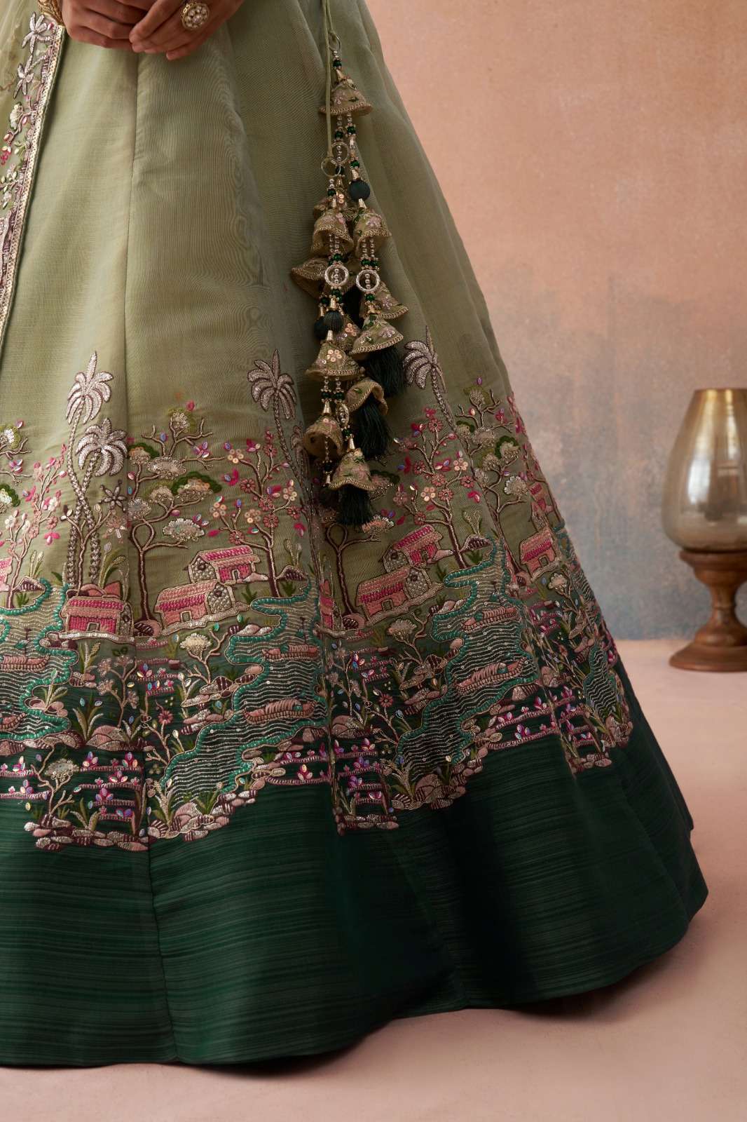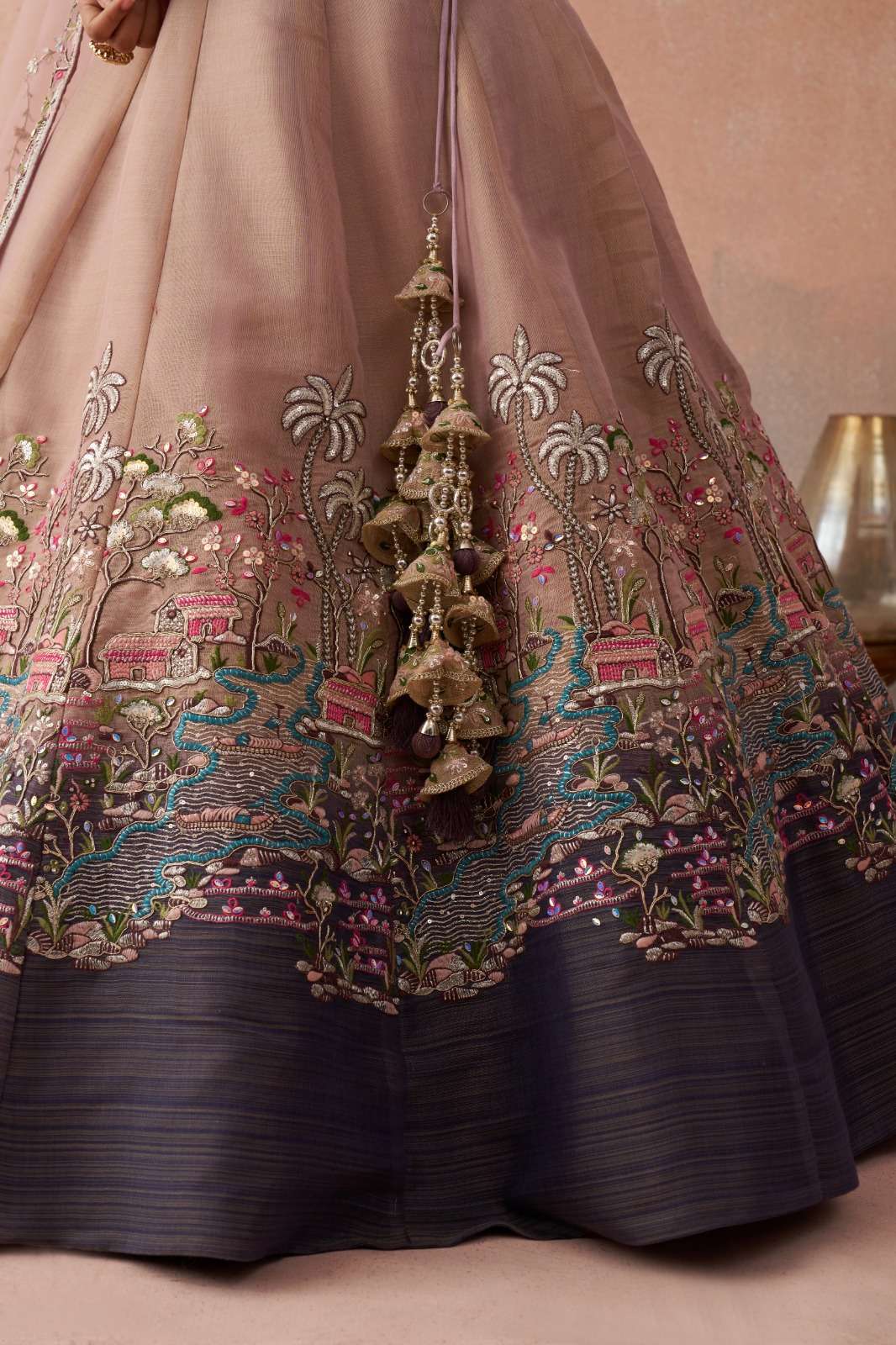 ✨ Lehenga comes with beautiful heavy latkan tassels for an elegant finishing touch.