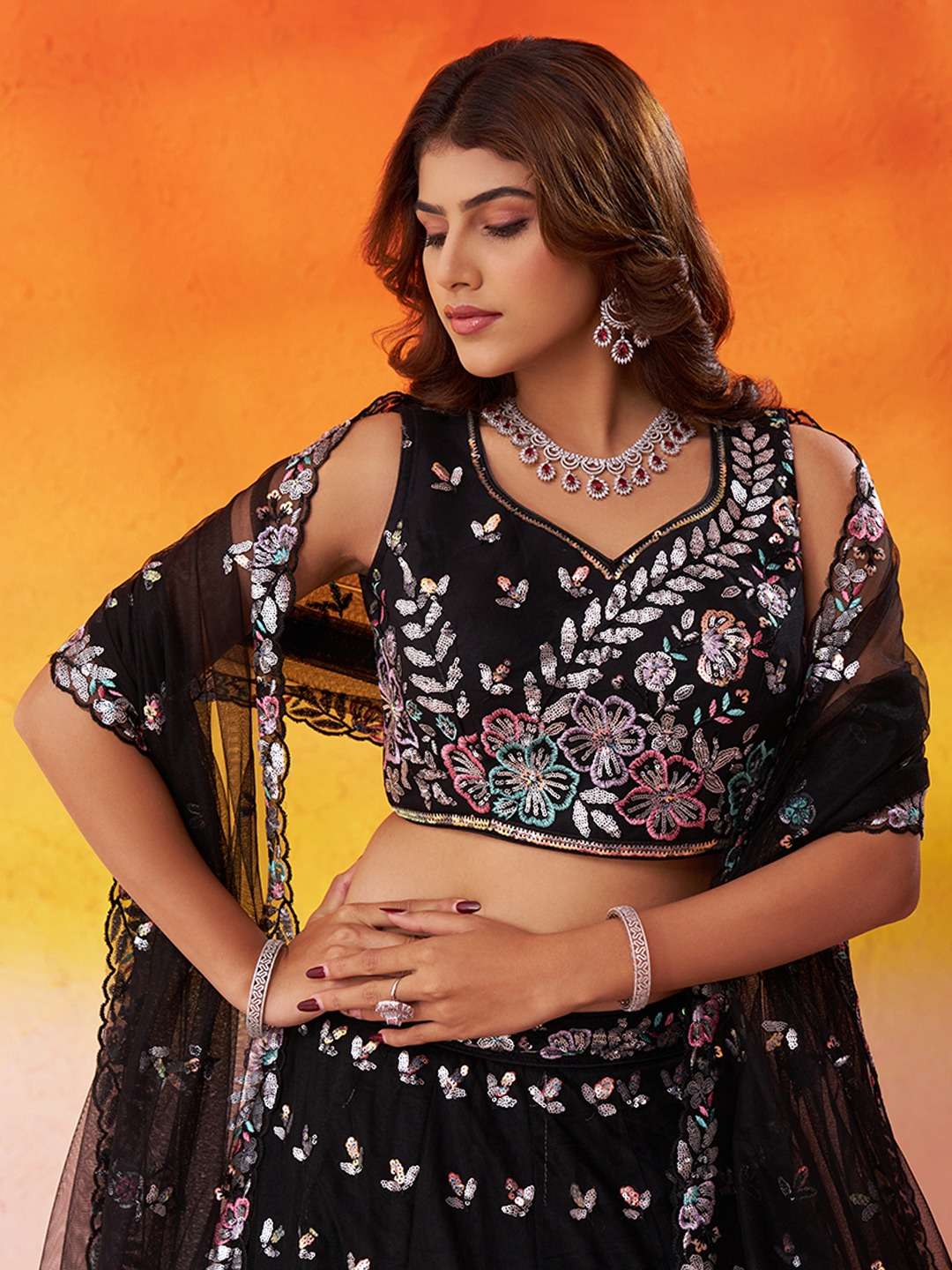 • Fabric: Net • Color: Matching (Black/Grey/Cream) • Neck Pattern: Sweetheart Neck • Work: Heavy Sequins + Thread Embroidery • Inner: Shantoon Attached • Customizable up to 38 Inches Bust