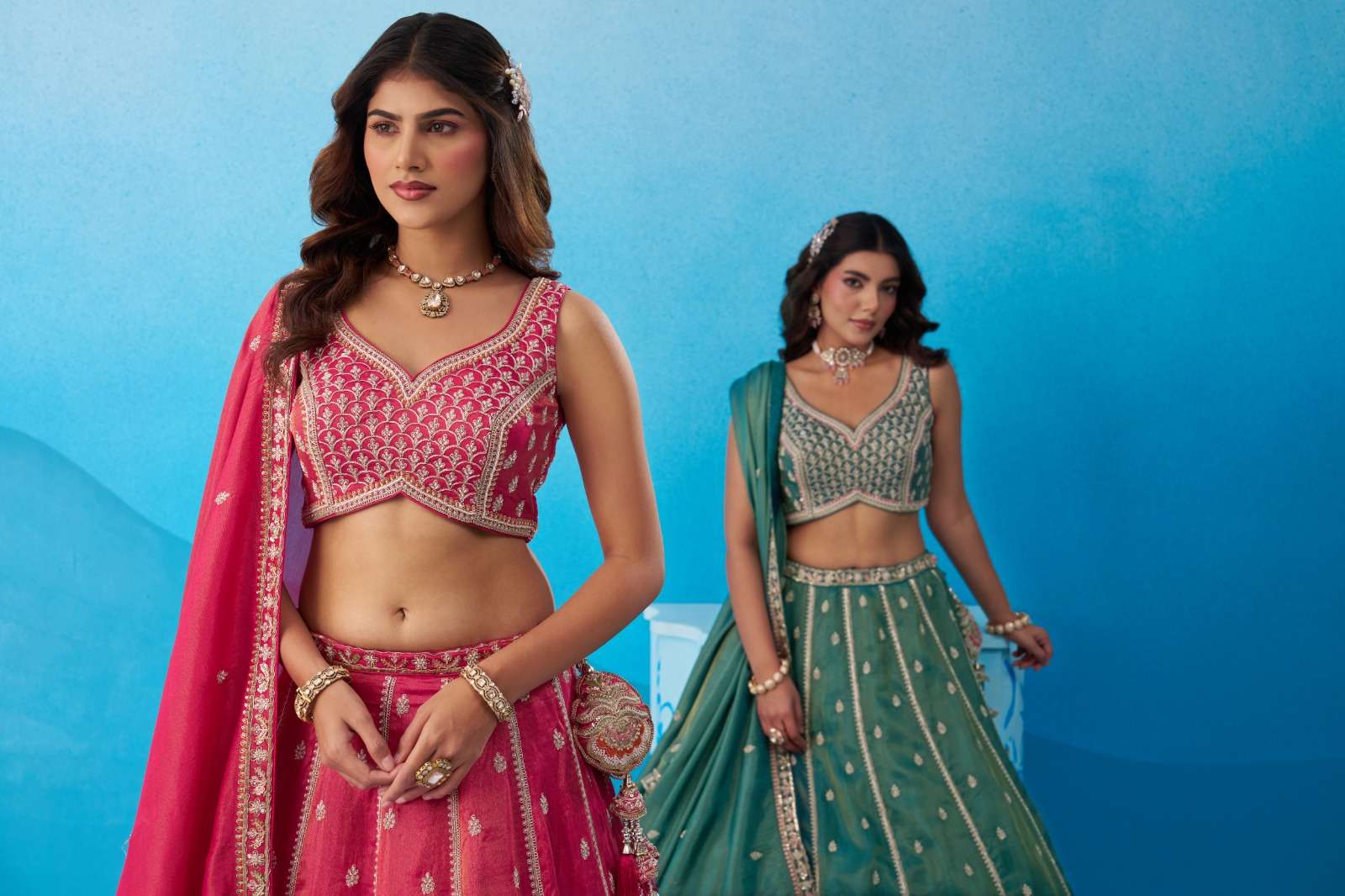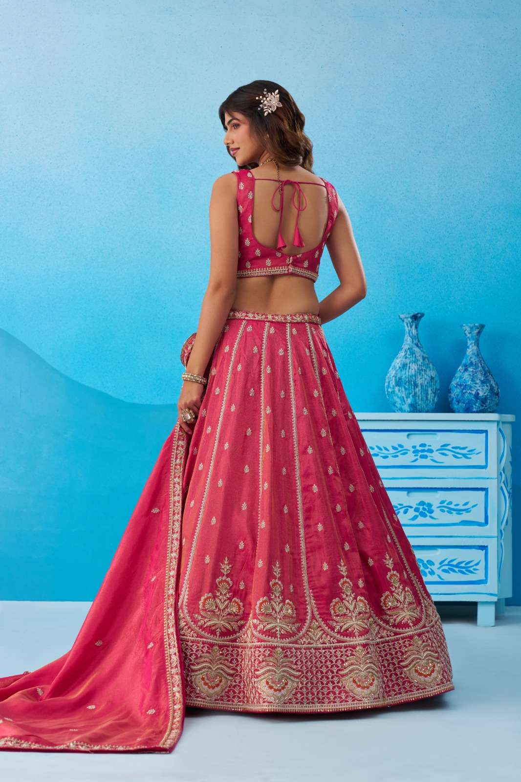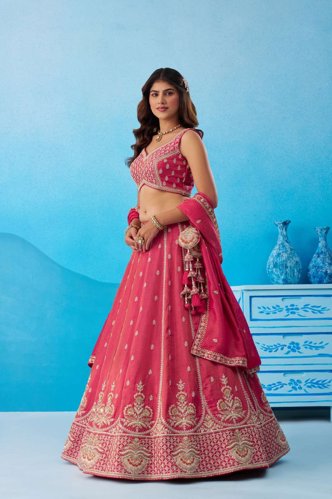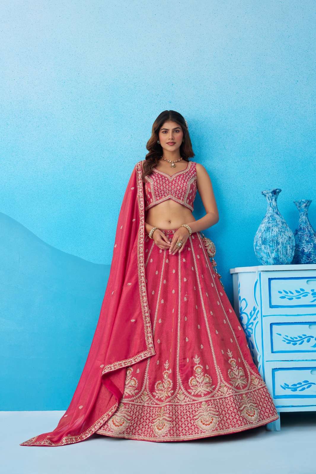 📏 Size Details : • Lehenga Waist : Up to 40 inches (customizable) • Lehenga Length : 42 inches • Lehenga Flair : 3.5 Meter • Blouse Bust : Up to 38 inches (customizable) • Dupatta Length : 2.5 Meter • Dupatta Width : 1 Meter