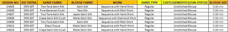 *PRICE :-* *24805-3885/-* *24806-4095/-* *24807-3745/-* *24808-3715/-* *24809-3145/-* *24812-3255/-* *24816-3645/-* +*5% GST EXTRA*