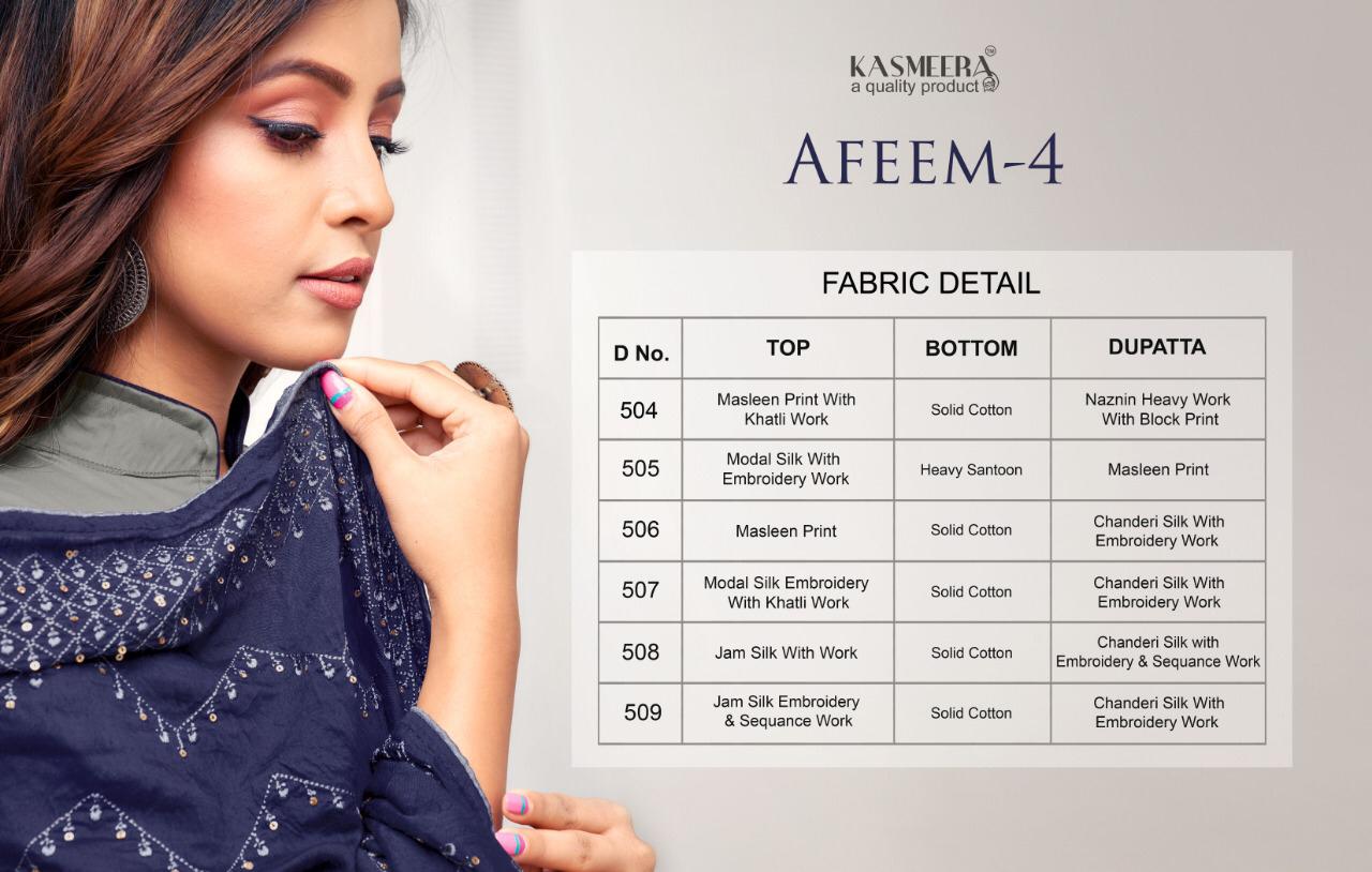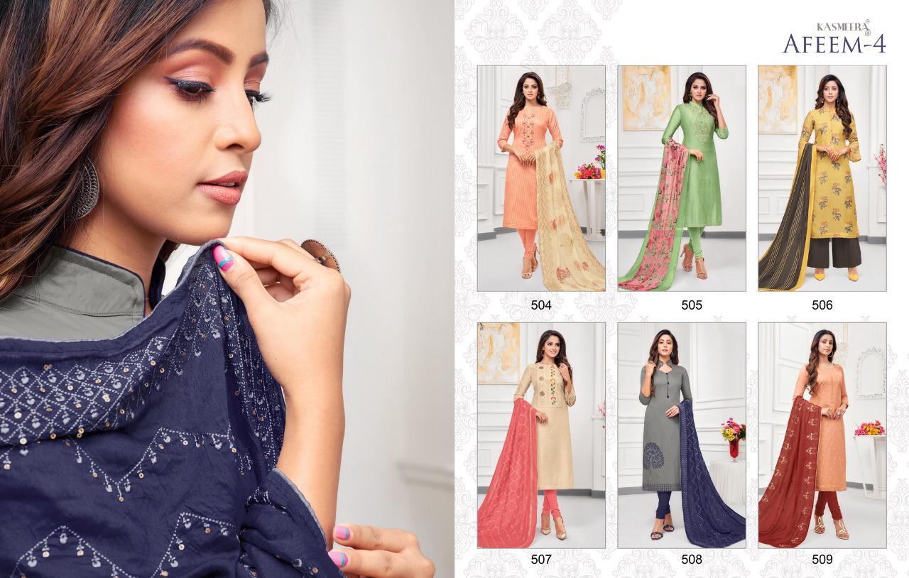 Buy Online Afeem 4 By Kasmeera Silk Designer Party Wear Suits Wholesale Supplier Nd Dealer Gujarat 6 Pcs of Full Catalogue at Wholesale Price. Looking for Afeem 4 By Kasmeera Silk Designer Party Wear Suits Wholesale Supplier Nd Dealer Gujarat Full Catalouge at Best Price? Buy Now Afeem 4 By Kasmeera Silk Designer Party Wear Suits Wholesale Supplier Nd Dealer Gujarat at Wholesale Rate of Rs 4626 with Total 6 Pcs from authroized dealer and supplier of Brand. Cost of Each piece is just only Rs 771 which is very low and affordable price to resale the product in your retail store ,This is Surat based Wholesale Supplier & Dealer of Brand. Click on Brand name to Know more about Brand's products.Call or Whatsapp on 9898838984 for booking or enquiry