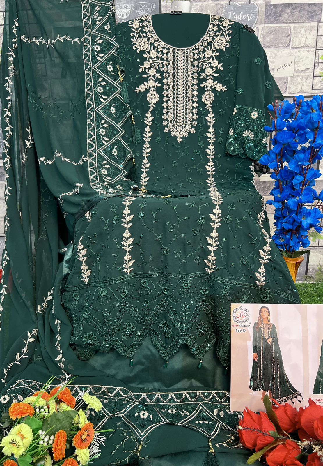 Buy Online Affan Creation D No 189 Georgette Eid Collection Manufacturer Surat 4 Pcs of Full Catalogue at Wholesale Price. Looking for Affan Creation D No 189 Georgette Eid Collection Manufacturer Surat Full Catalouge at Best Price? Buy Now Affan Creation D No 189 Georgette Eid Collection Manufacturer Surat at Wholesale Rate of Rs 4800 with Total 4 Pcs from authroized dealer and supplier of Brand. Cost of Each piece is just only Rs 1200 which is very low and affordable price to resale the product in your retail store ,This is Surat based Wholesale Supplier & Dealer of Brand. Click on Brand name to Know more about Brand's products.Call or Whatsapp on 9898838984 for booking or enquiry
