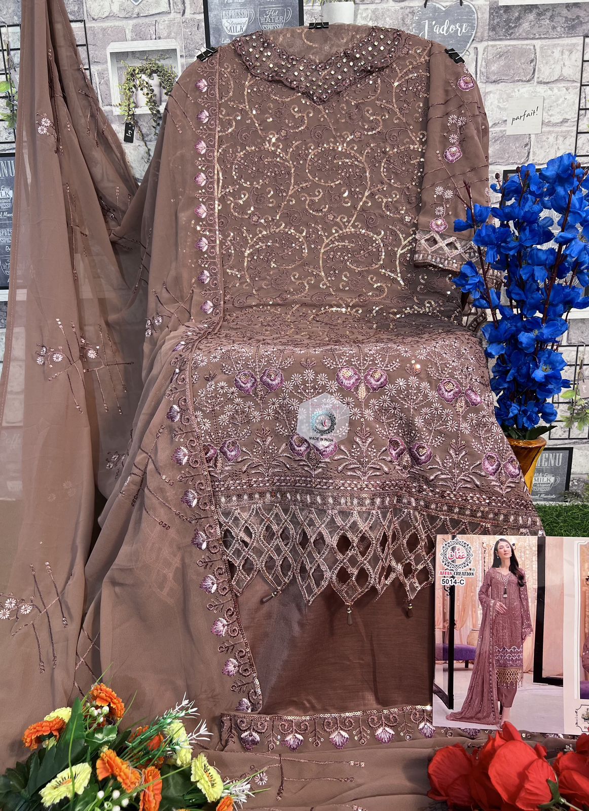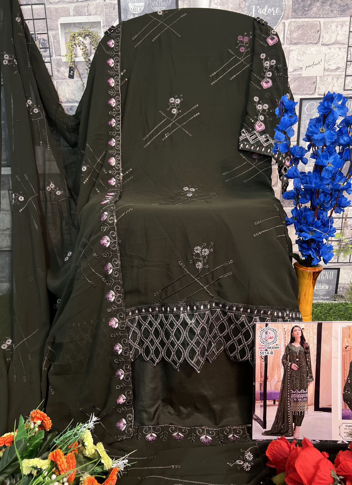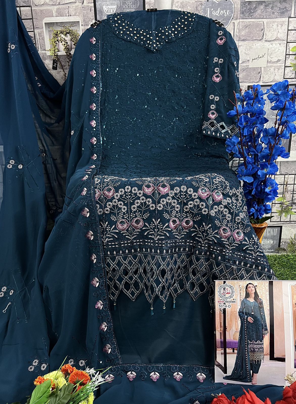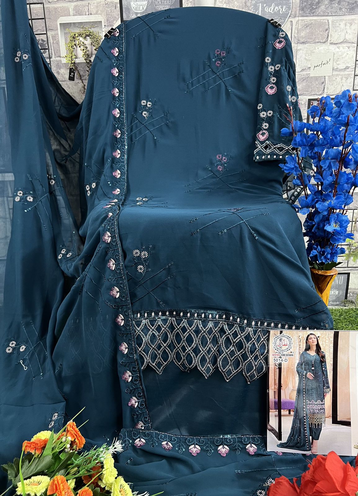 Buy Online Affan Creation D No 5014 Georgette Pakistani Suits 4 Pcs of Full Catalogue at Wholesale Price. Looking for Affan Creation D No 5014 Georgette Pakistani Suits Full Catalouge at Best Price? Buy Now Affan Creation D No 5014 Georgette Pakistani Suits at Wholesale Rate of Rs 5000 with Total 4 Pcs from authroized dealer and supplier of Brand. Cost of Each piece is just only Rs 1250 which is very low and affordable price to resale the product in your retail store ,This is Surat based Wholesale Supplier & Dealer of Brand. Click on Brand name to Know more about Brand's products.Call or Whatsapp on 9898838984 for booking or enquiry