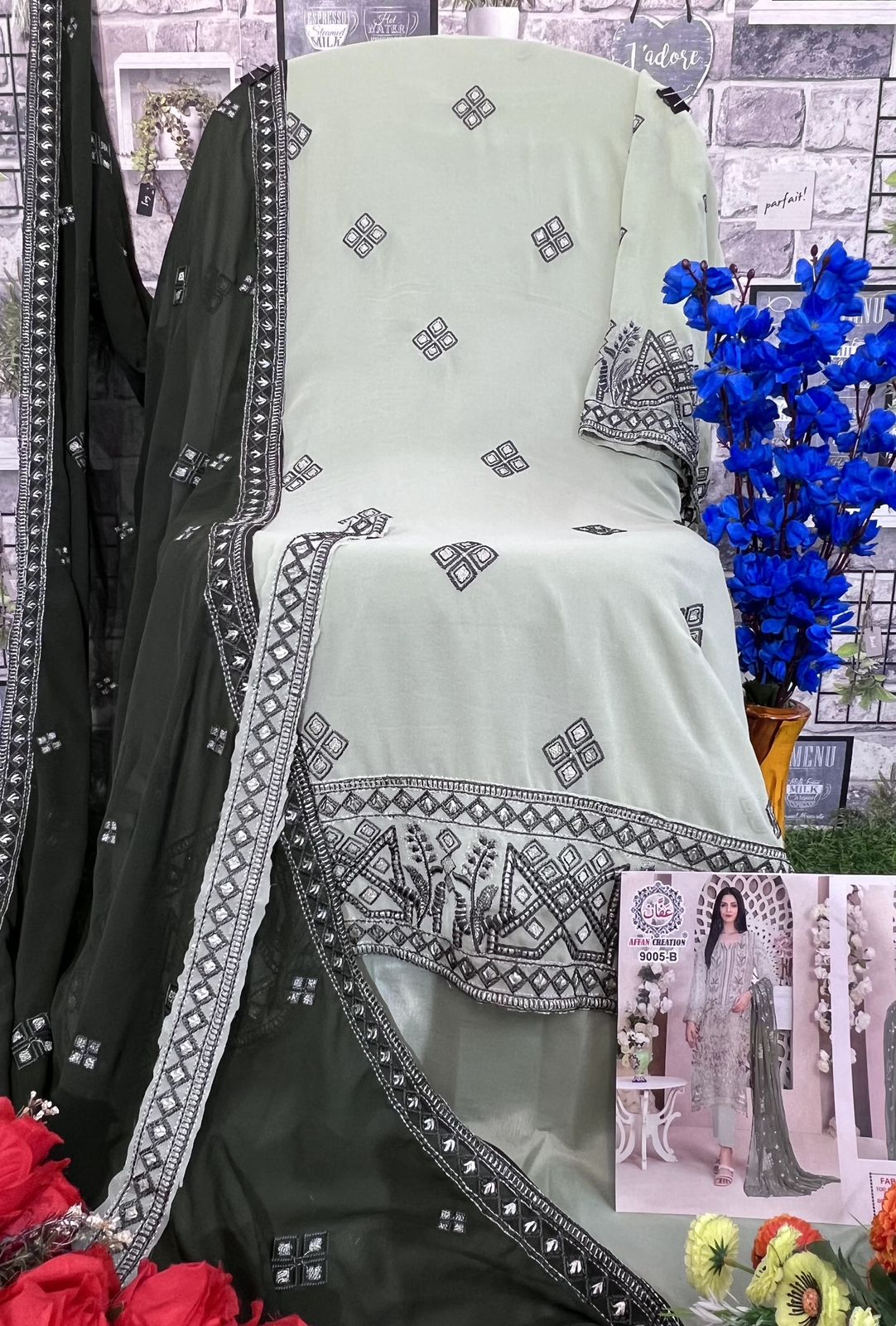Buy Online Affan Creation D No 9005 Georgette Embroidered Collection Manufacturer Surat 4 Pcs of Full Catalogue at Wholesale Price. Looking for Affan Creation D No 9005 Georgette Embroidered Collection Manufacturer Surat Full Catalouge at Best Price? Buy Now Affan Creation D No 9005 Georgette Embroidered Collection Manufacturer Surat at Wholesale Rate of Rs 5400 with Total 4 Pcs from authroized dealer and supplier of Brand. Cost of Each piece is just only Rs 1350 which is very low and affordable price to resale the product in your retail store ,This is Surat based Wholesale Supplier & Dealer of Brand. Click on Brand name to Know more about Brand's products.Call or Whatsapp on 9898838984 for booking or enquiry