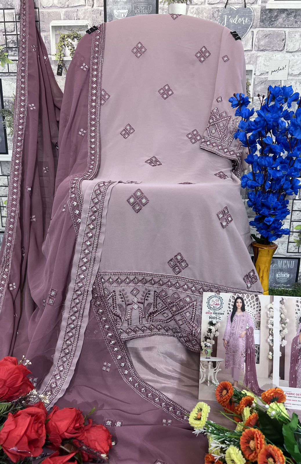 Affan Creation D No 9005 Georgette Embroidered Collection Manufacturer Surat