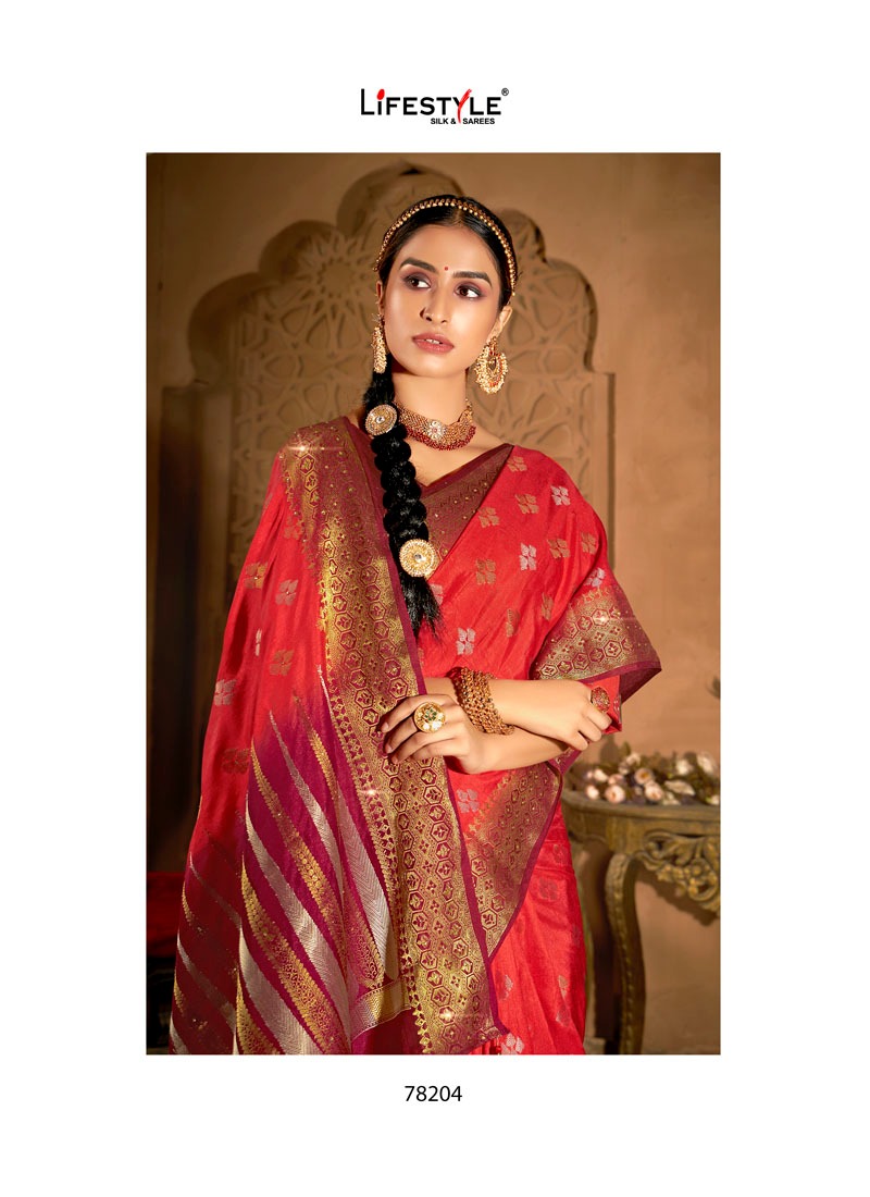 Brand = *LIFESTYLE* Catalog = *AFGHAN SILK* Volume =1 Fabric = *NYLON SILK* Packing = BOX Ex-mill Rate = *1340/- per pcs * Set to set Cut/Length = 6.4 FANCY NYLON DOUBLE JARI RICH PLLU GALA BLOUSE SAREE Packing : Today |