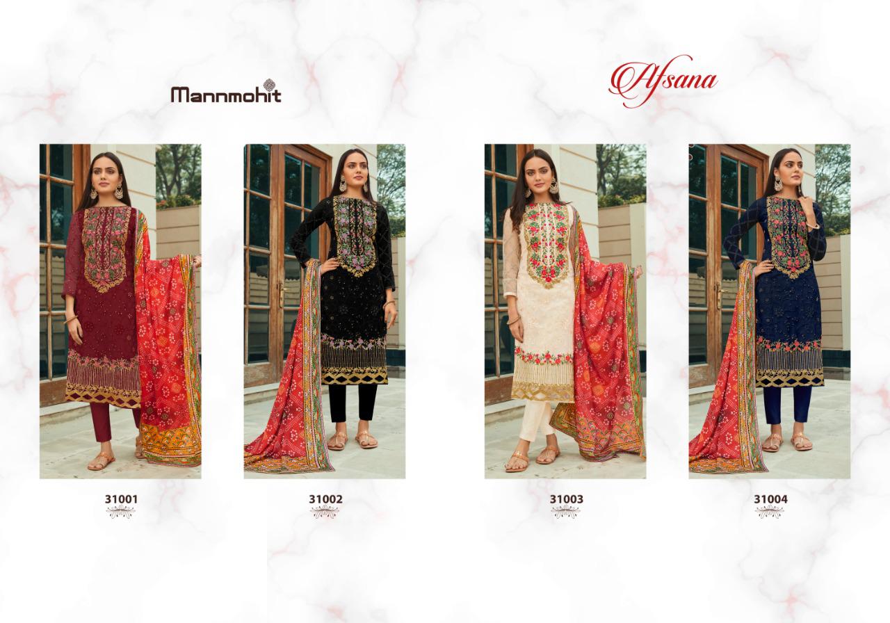 Buy Online Afsana By Mannmohit Manufacturer Traders Surat Gujrat 4 Pcs of Full Catalogue at Wholesale Price. Looking for Afsana By Mannmohit Manufacturer Traders Surat Gujrat Full Catalouge at Best Price? Buy Now Afsana By Mannmohit Manufacturer Traders Surat Gujrat at Wholesale Rate of Rs 4796 with Total 4 Pcs from authroized dealer and supplier of Brand. Cost of Each piece is just only Rs 1199 which is very low and affordable price to resale the product in your retail store ,This is Surat based Wholesale Supplier & Dealer of Brand. Click on Brand name to Know more about Brand's products.Call or Whatsapp on 9898838984 for booking or enquiry