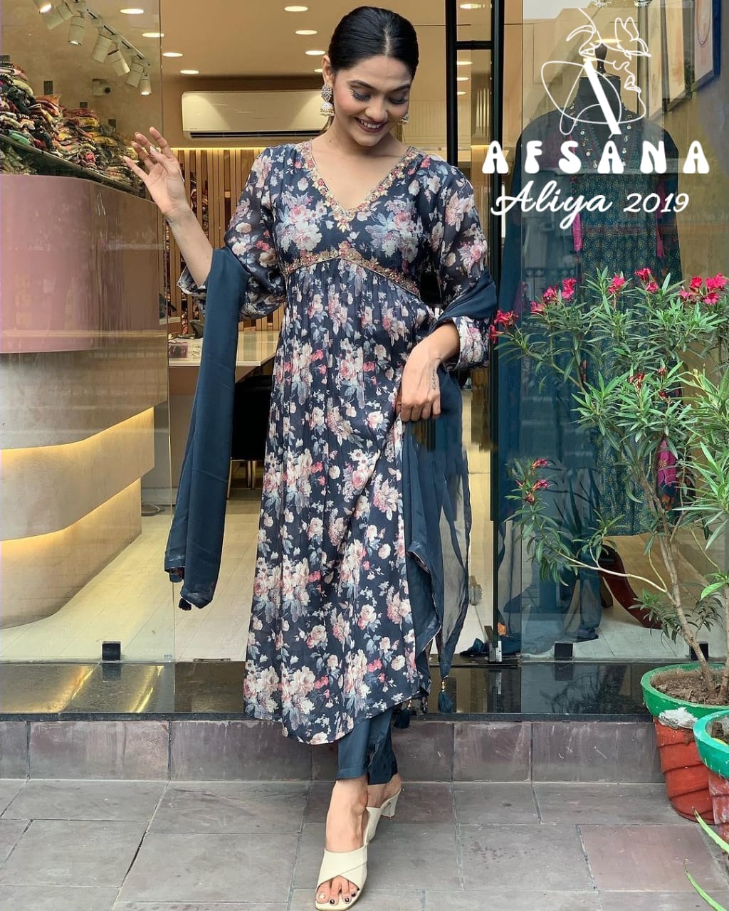 Afsana New Aliya Cut Top Bottom Duppata Aaliya 2019