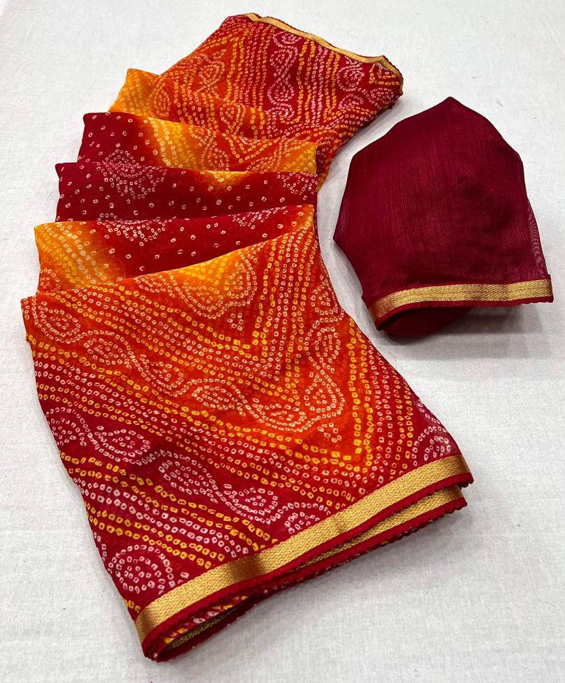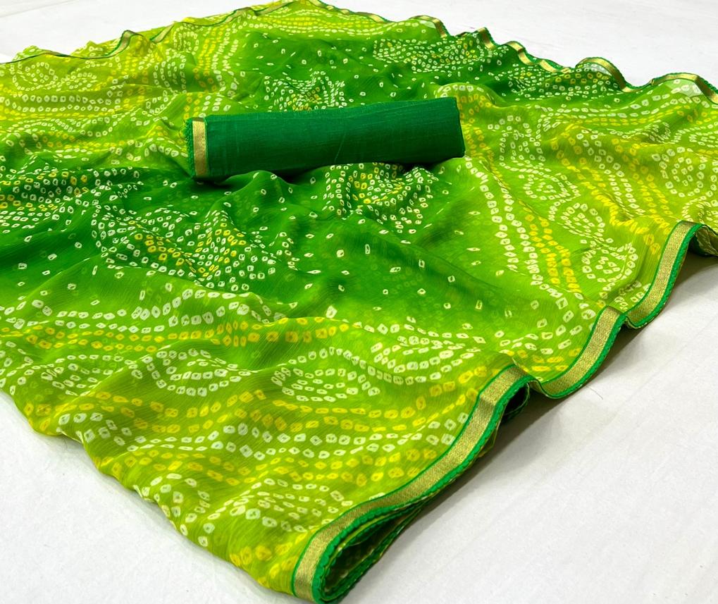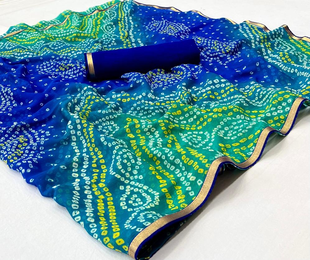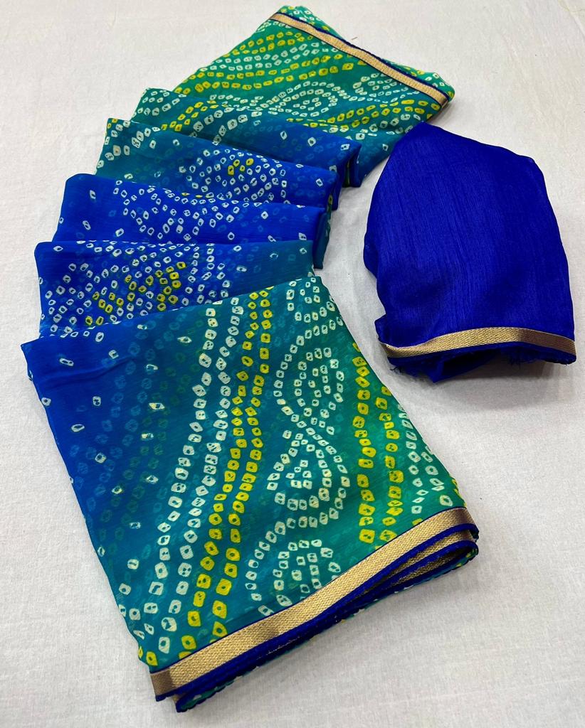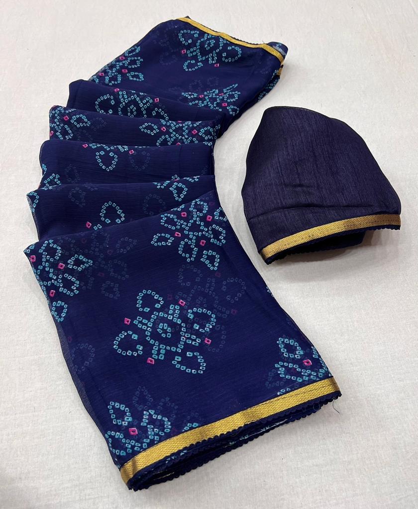 Ahiri By Kashvi Creation Chiffon Border With Fancy Blouse Saree