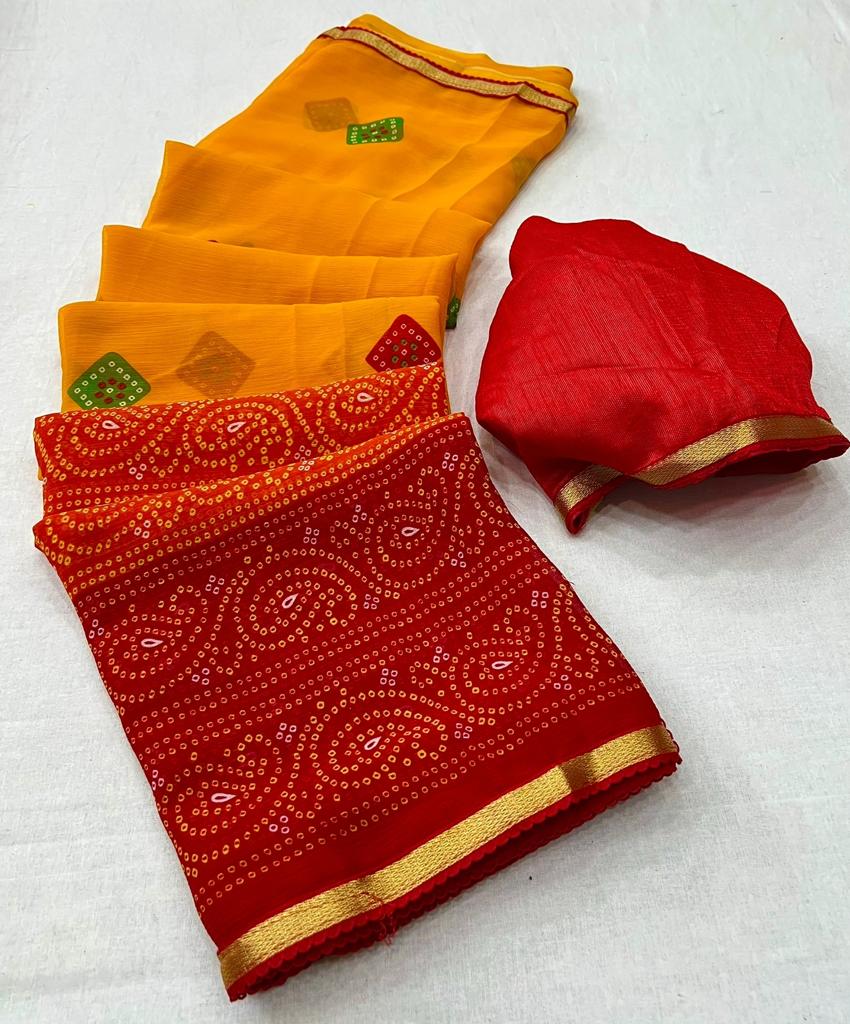 Buy Online Ahiri By Kashvi Creation Chiffon Border With Fancy Blouse Saree 10 Pcs of Full Catalogue at Wholesale Price. Looking for Ahiri By Kashvi Creation Chiffon Border With Fancy Blouse Saree Full Catalouge at Best Price? Buy Now Ahiri By Kashvi Creation Chiffon Border With Fancy Blouse Saree at Wholesale Rate of Rs 3800 with Total 10 Pcs from authroized dealer and supplier of Brand. Cost of Each piece is just only Rs 380 which is very low and affordable price to resale the product in your retail store ,This is Surat based Wholesale Supplier & Dealer of Brand. Click on Brand name to Know more about Brand's products.Call or Whatsapp on 9898838984 for booking or enquiry