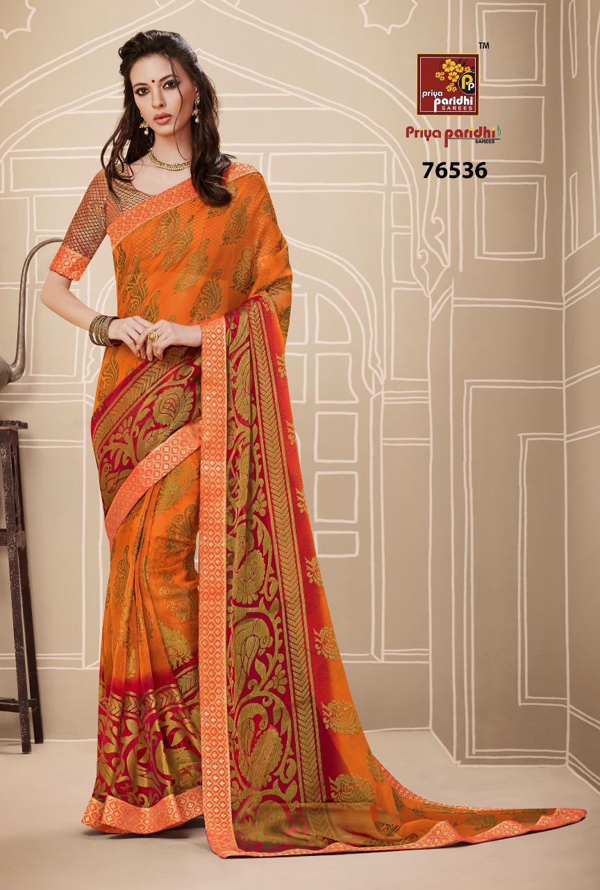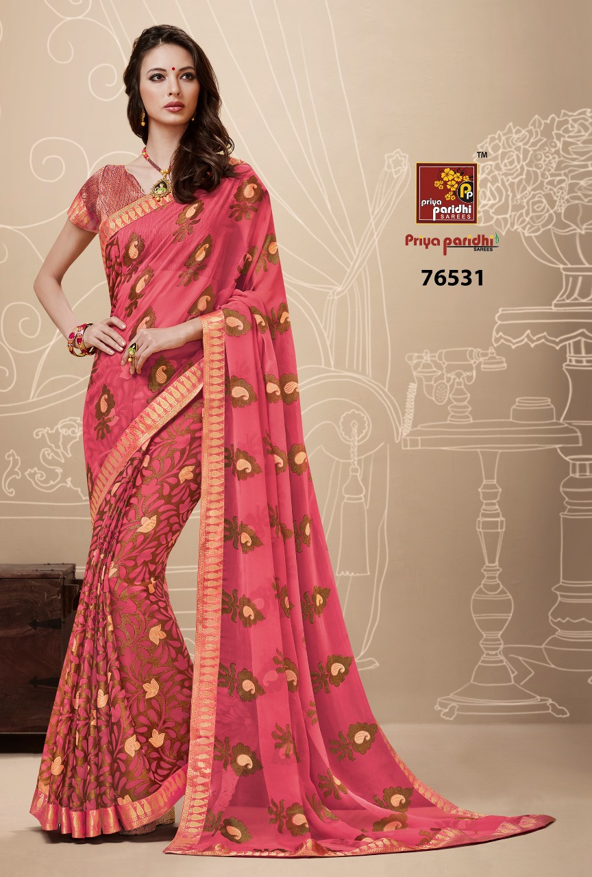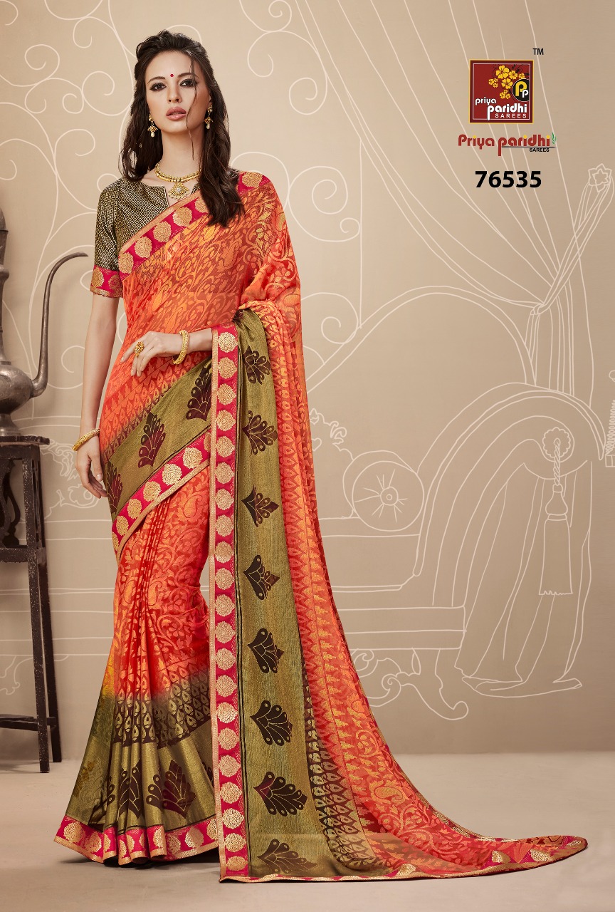 Buy Online Ahiri By Priya Paridhi Brasso Saree Wholesale Dealer From Surat 11 Pcs of Full Catalogue at Wholesale Price. Looking for Ahiri By Priya Paridhi Brasso Saree Wholesale Dealer From Surat Full Catalouge at Best Price? Buy Now Ahiri By Priya Paridhi Brasso Saree Wholesale Dealer From Surat at Wholesale Rate of Rs 8261 with Total 11 Pcs from authroized dealer and supplier of PRIYA PARIDHI Brand. Cost of Each piece is just only Rs 751 which is very low and affordable price to resale the product in your retail store ,This is Surat based Wholesale Supplier & Dealer of PRIYA PARIDHI Brand. Click on Brand name to Know more about PRIYA PARIDHI Brand's products.Call or Whatsapp on 9898838984 for booking or enquiry
