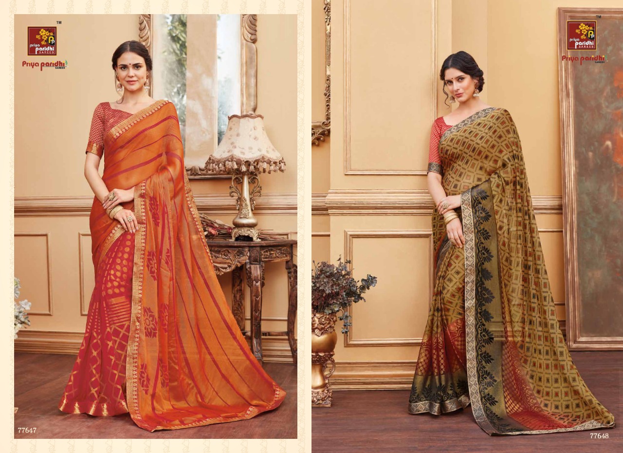 Buy Online Ahiri Vol 8 By Priyaparidhi Brasso Printed Desinger Party Wear Sarees Wholesale Supplier And Dealer Gujarat 10 Pcs of Full Catalogue at Wholesale Price. Looking for Ahiri Vol 8 By Priyaparidhi Brasso Printed Desinger Party Wear Sarees Wholesale Supplier And Dealer Gujarat Full Catalouge at Best Price? Buy Now Ahiri Vol 8 By Priyaparidhi Brasso Printed Desinger Party Wear Sarees Wholesale Supplier And Dealer Gujarat at Wholesale Rate of Rs 7510 with Total 10 Pcs from authroized dealer and supplier of PRIYA PARIDHI Brand. Cost of Each piece is just only Rs 751 which is very low and affordable price to resale the product in your retail store ,This is Surat based Wholesale Supplier & Dealer of PRIYA PARIDHI Brand. Click on Brand name to Know more about PRIYA PARIDHI Brand's products.Call or Whatsapp on 9898838984 for booking or enquiry