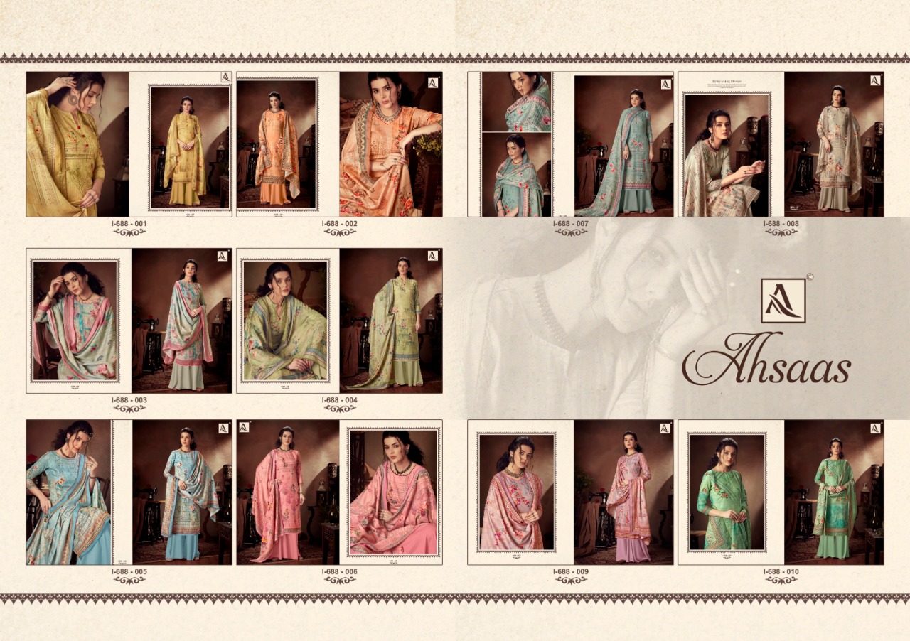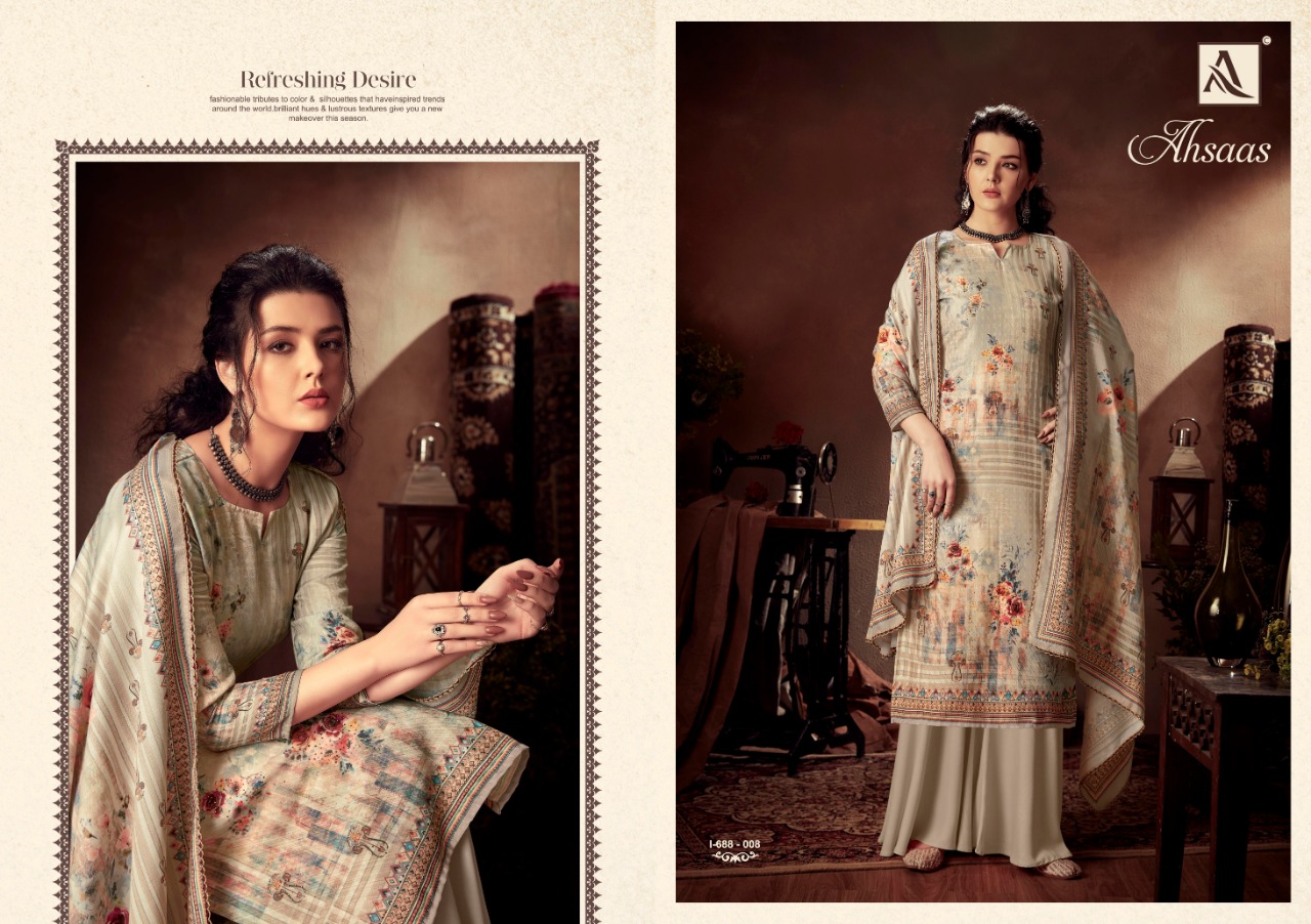 Buy Online Ahsaas By Alok Suit Manufacturer And Dealer From All Over India 10 Pcs of Full Catalogue at Wholesale Price. Looking for Ahsaas By Alok Suit Manufacturer And Dealer From All Over India Full Catalouge at Best Price? Buy Now Ahsaas By Alok Suit Manufacturer And Dealer From All Over India at Wholesale Rate of Rs 5990 with Total 10 Pcs from authroized dealer and supplier of Brand. Cost of Each piece is just only Rs 599 which is very low and affordable price to resale the product in your retail store ,This is Surat based Wholesale Supplier & Dealer of Brand. Click on Brand name to Know more about Brand's products.Call or Whatsapp on 9898838984 for booking or enquiry