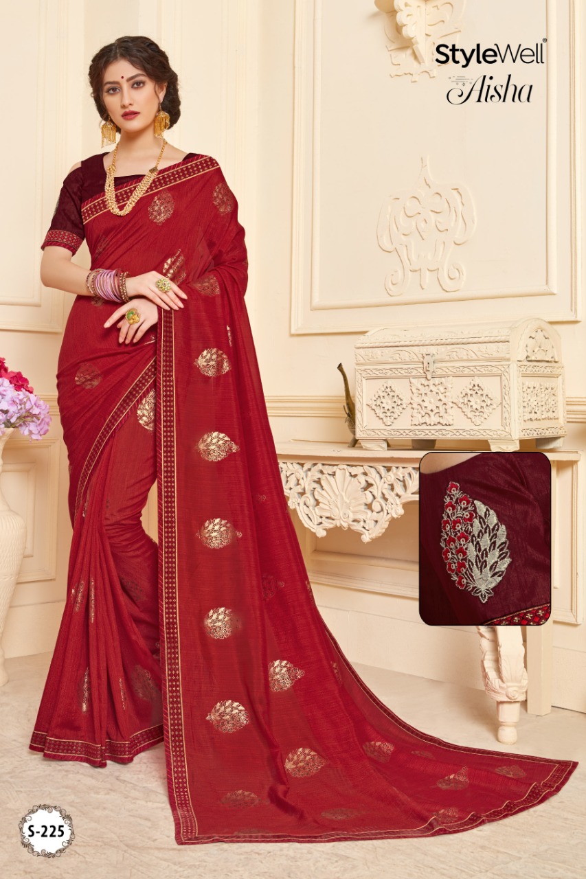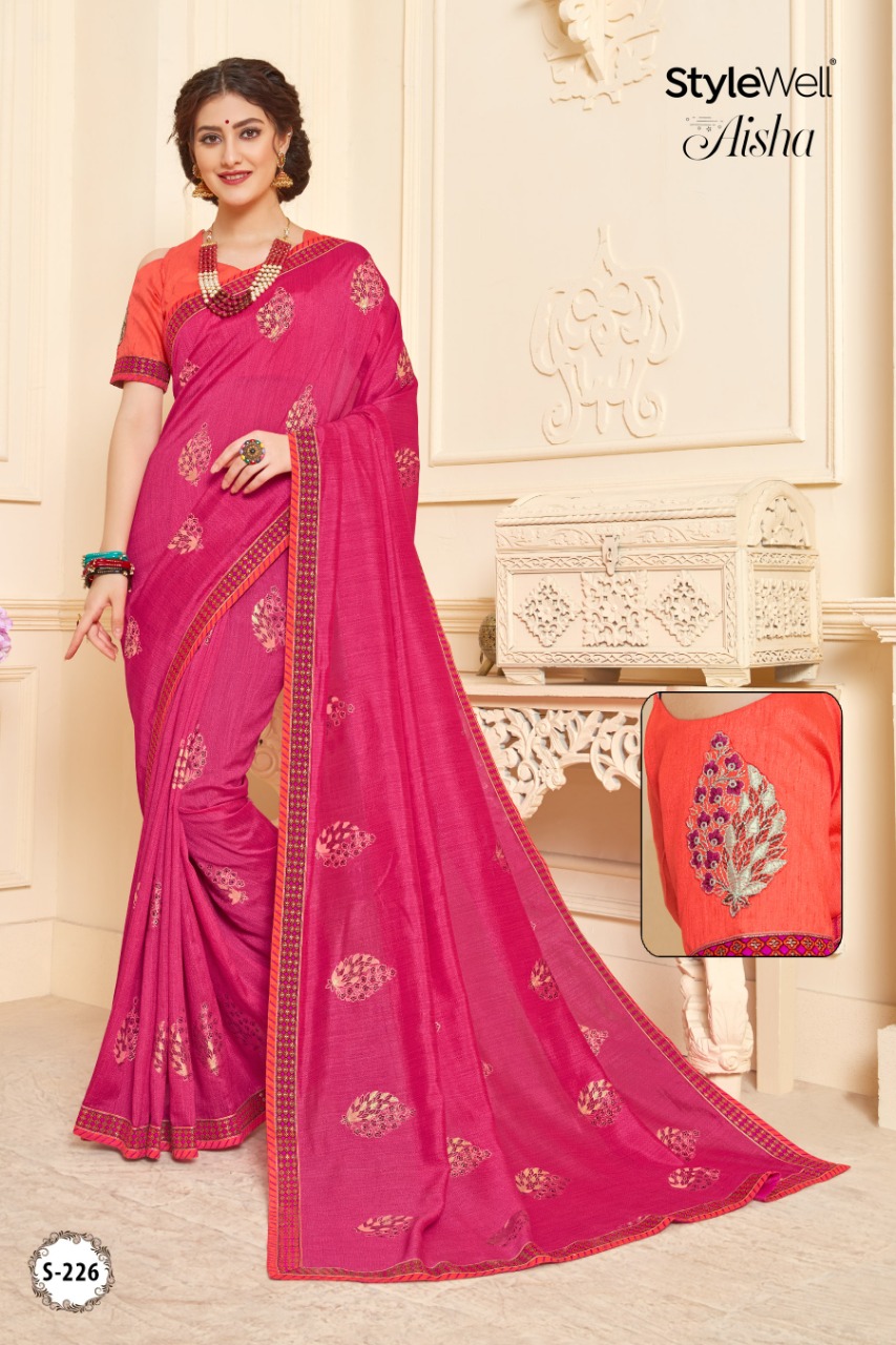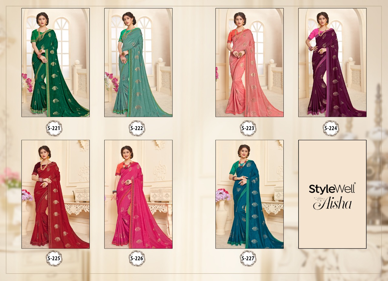 Buy Online Aisha By Stylewell Fancy Designer Party Wear Sarees Wholesale Supplier Gujarat 7 Pcs of Full Catalogue at Wholesale Price. Looking for Aisha By Stylewell Fancy Designer Party Wear Sarees Wholesale Supplier Gujarat Full Catalouge at Best Price? Buy Now Aisha By Stylewell Fancy Designer Party Wear Sarees Wholesale Supplier Gujarat at Wholesale Rate of Rs 6475 with Total 7 Pcs from authroized dealer and supplier of STYLE WELL Brand. Cost of Each piece is just only Rs 925 which is very low and affordable price to resale the product in your retail store ,This is Surat based Wholesale Supplier & Dealer of STYLE WELL Brand. Click on Brand name to Know more about STYLE WELL Brand's products.Call or Whatsapp on 9898838984 for booking or enquiry
