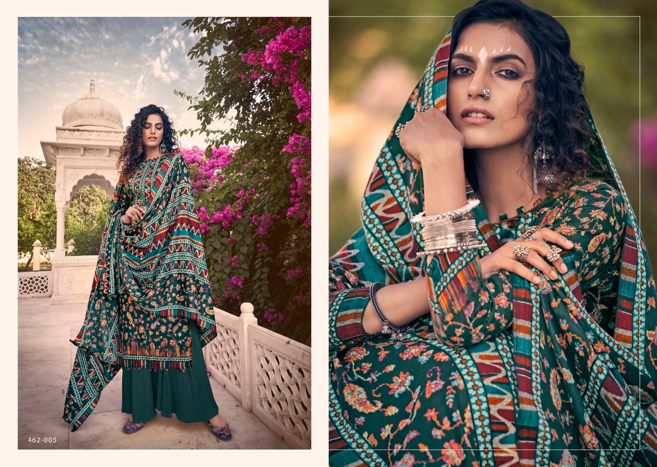 # Aisha Vol 2 # Pure Pashmina Collection _*......BelliZa DesigNer StuDio......*_ _presents_ *"AISHA"* _designer woollen collection_ Vol-2 ??Top: 100% Pure Pashmina Digital Style Print (2.50 mtrs) ??Dupatta: Pure Pashmina Shawl with Four Side Lace (2.30 mtr) ??Bottom: Pure Pashmina Spun (3 mtrs apx) ??Pcs: 10 ??Selling Rate: 485/- (GST extra) At Belliza, Quality Pashmina Fabrics with Exquisite Designing at Best Price is our 'Cherished Legacy'. |