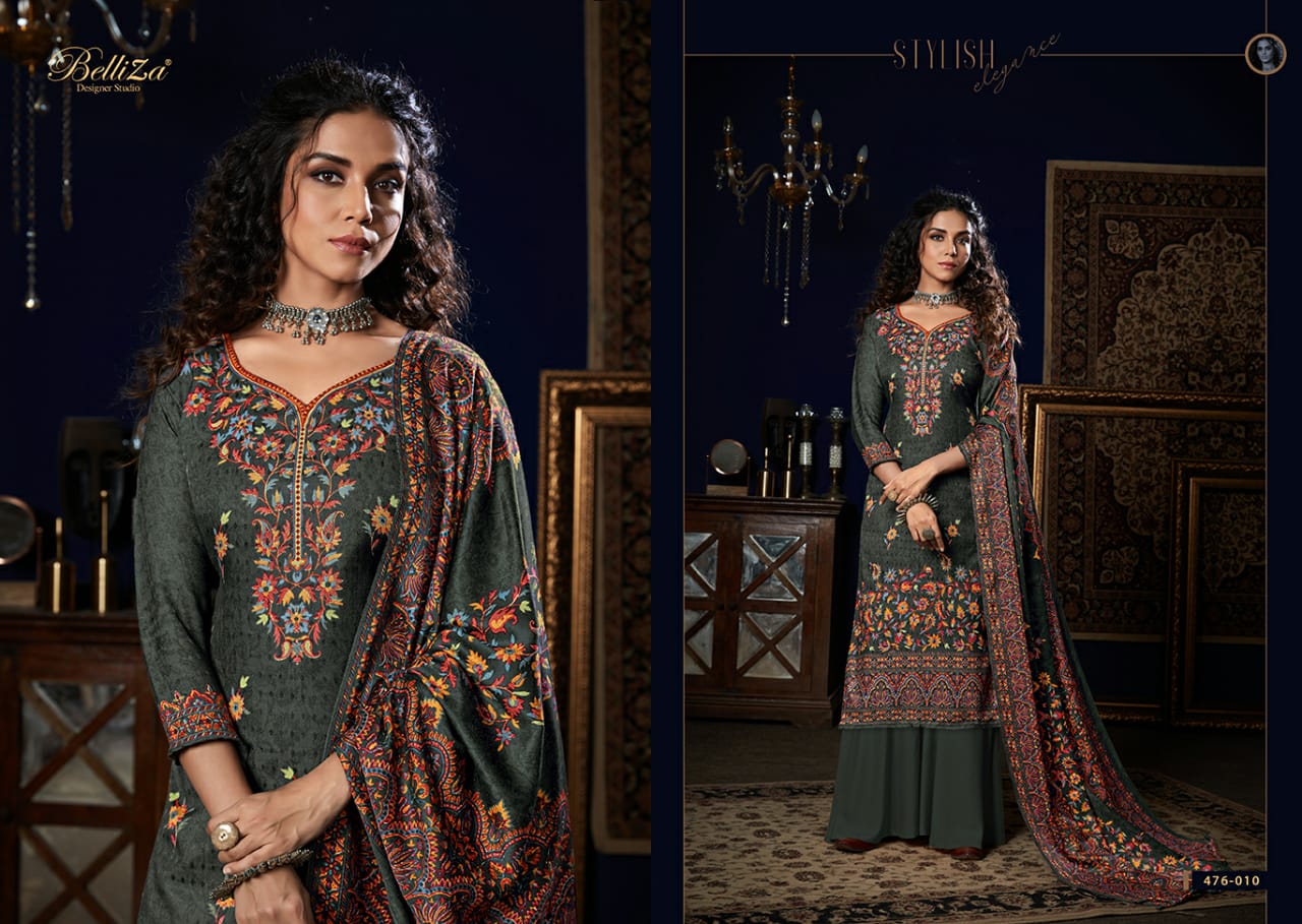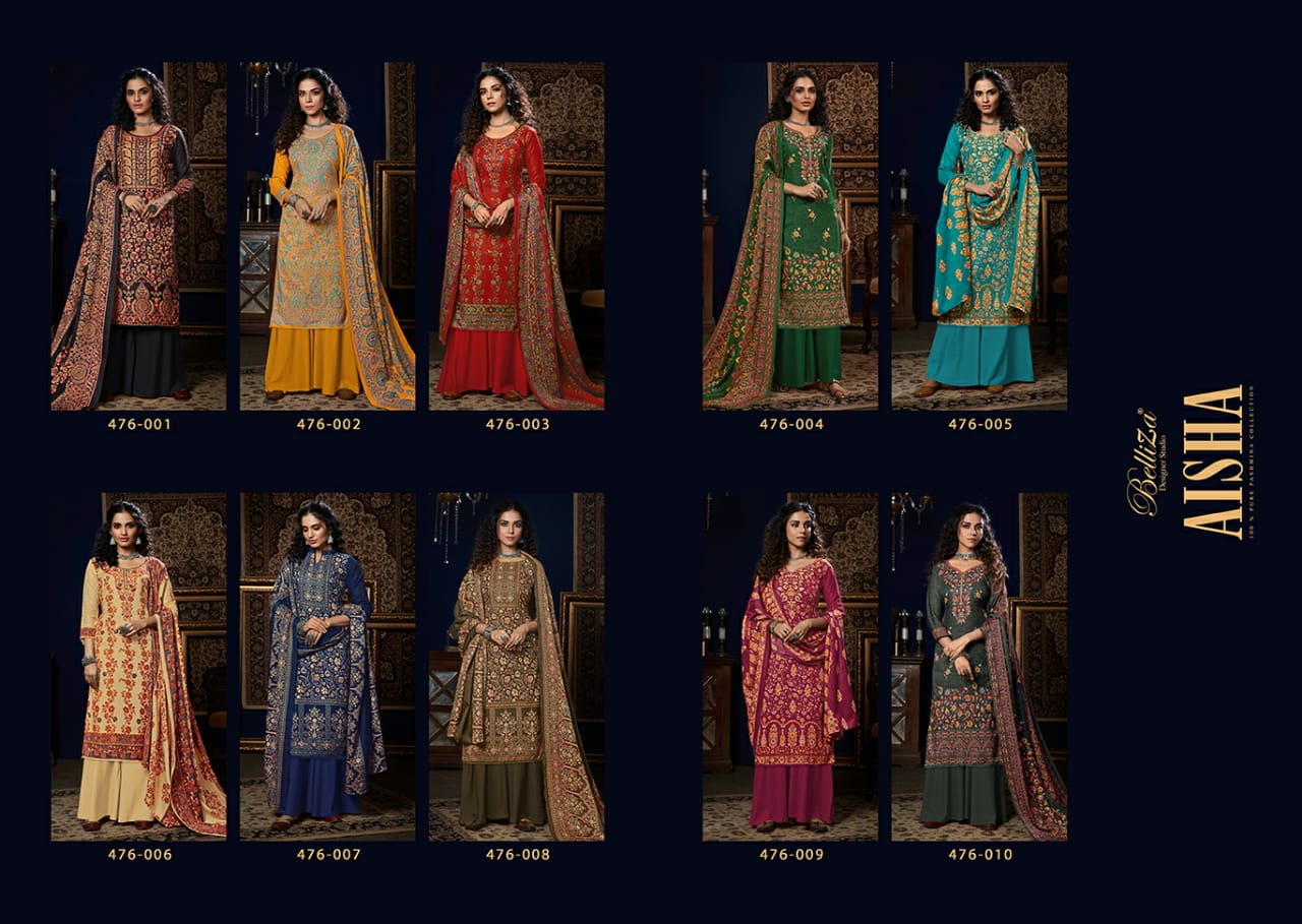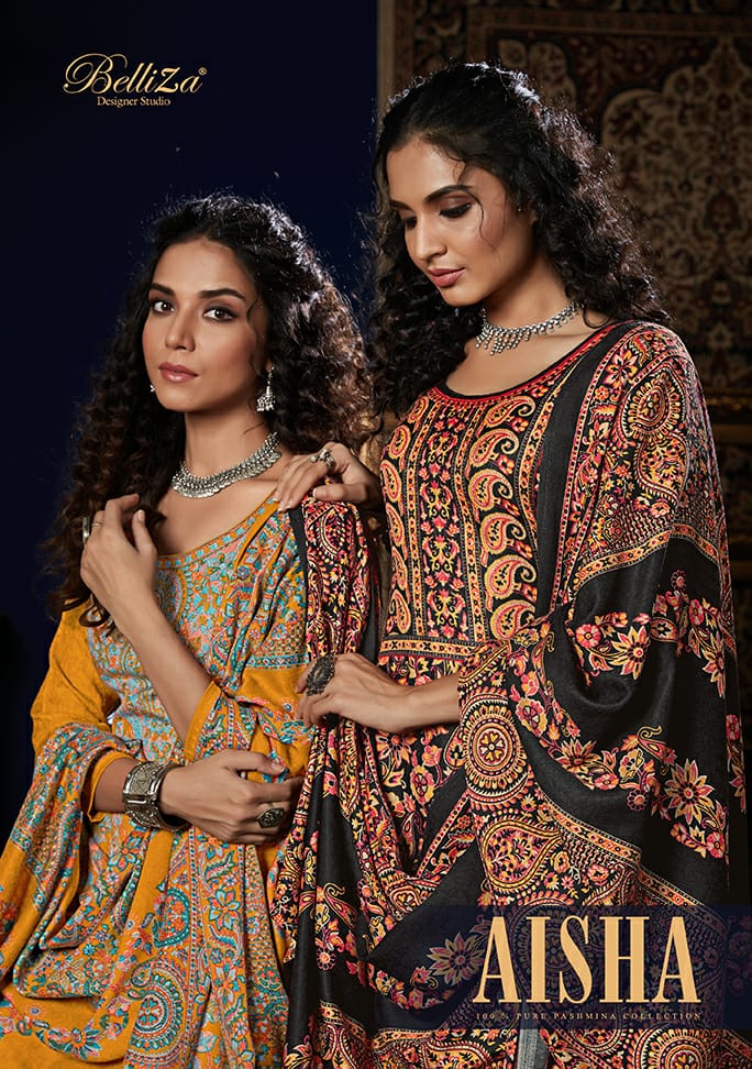 # Aisha Vol 3 # Pure Pashmina Collection _*......BelliZa DesigNer StuDio......*_ _presents_ *"AISHA"* _designer woollen collection_ Vol-3 ??Top: 100% Pure Pashmina Digital Style Print (2.50 mtrs) ??Dupatta: Pure Pashmina Shawl with Four Side Lace (2.30 mtr) ??Bottom: Pure Pashmina Spun (3 mtrs apx) ??Pcs: 10 ??Selling Rate: 485/- (GST extra) At Belliza, Quality Pashmina Fabrics with Exquisite Designing at Best Price is our 'Cherished Legacy'. |