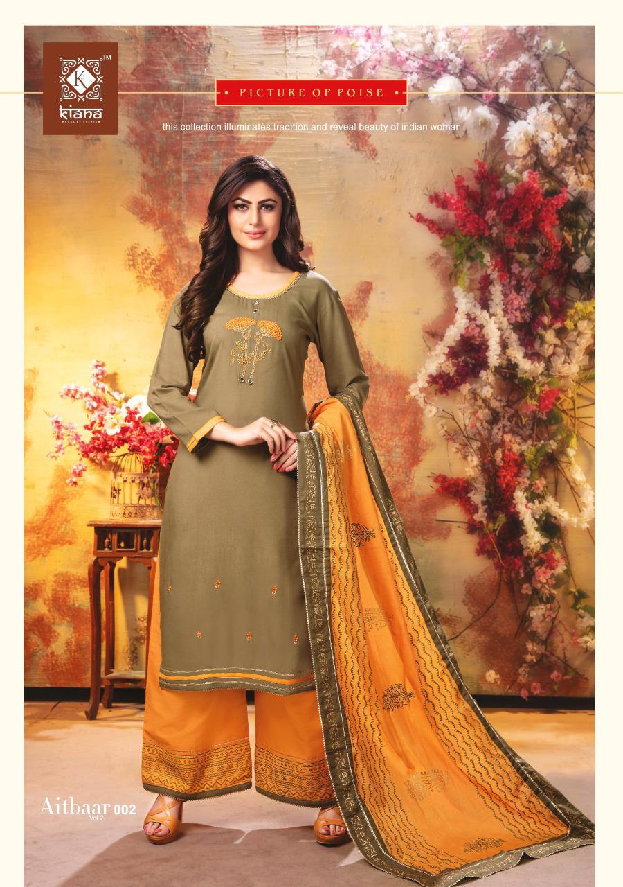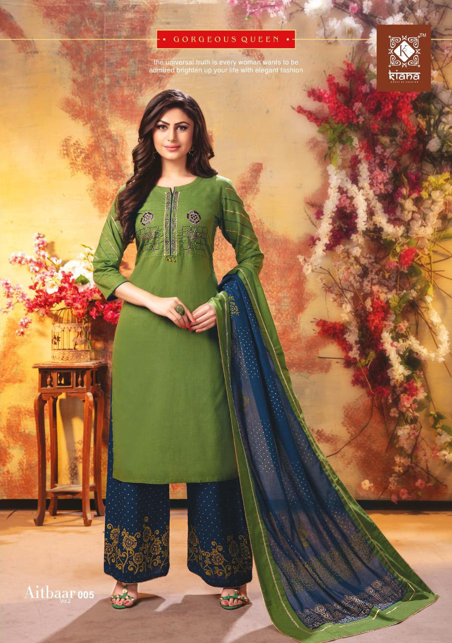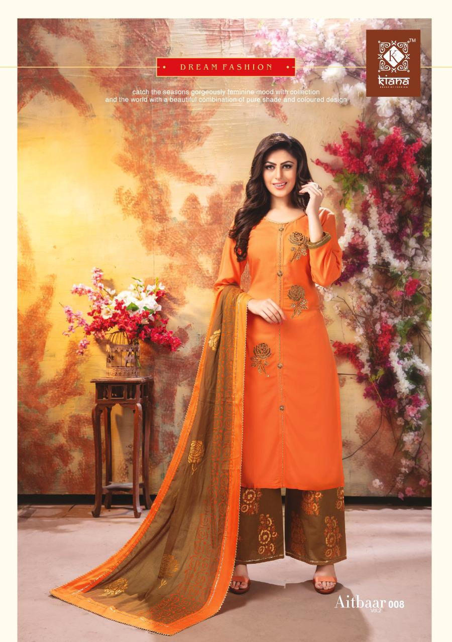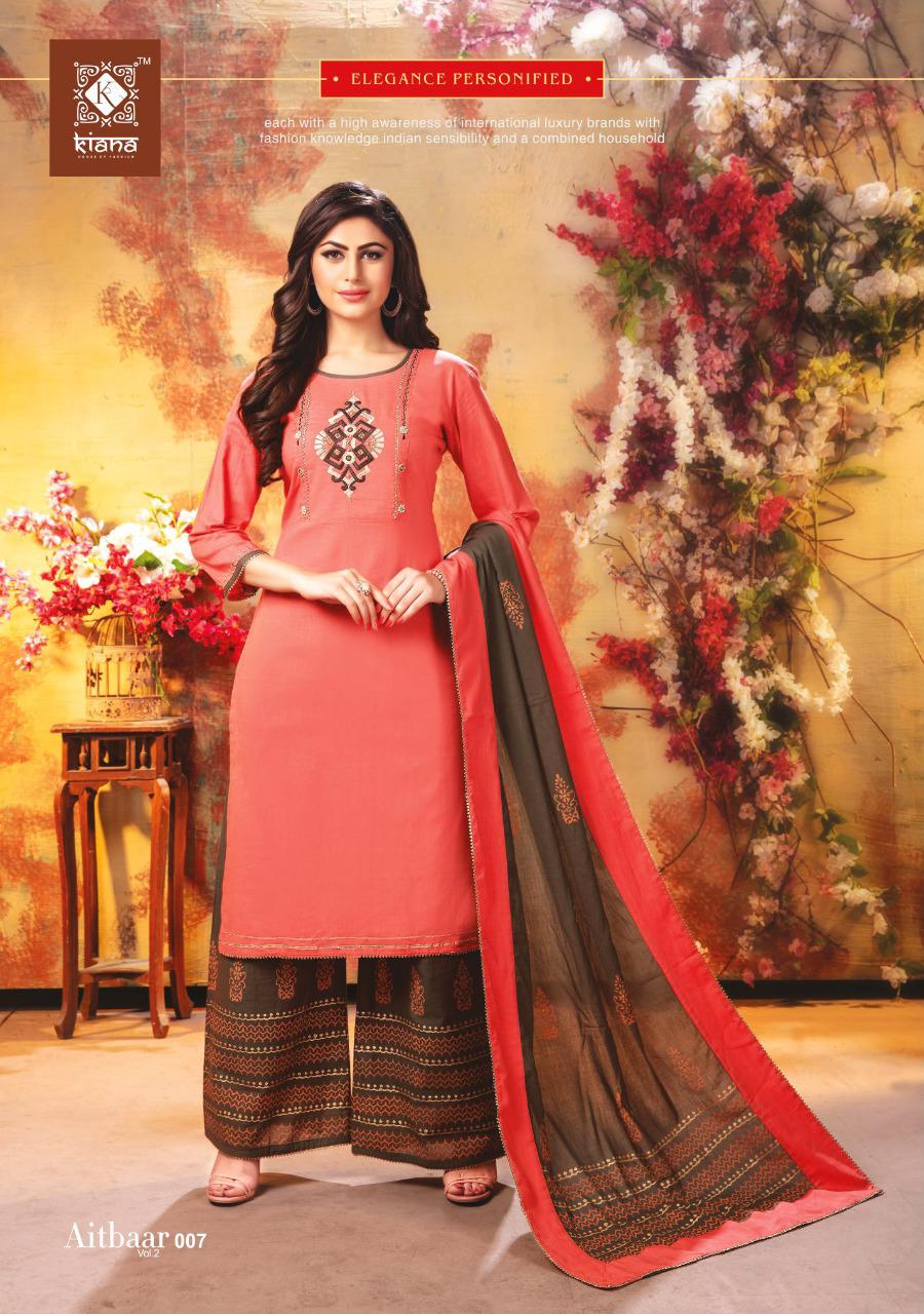 Buy Online Aitbaar Vol 2 By Kiana Fashion Reyon Kurtis Plazzo Wholesale Supplier And Dealer Surat 8 Pcs of Full Catalogue at Wholesale Price. Looking for Aitbaar Vol 2 By Kiana Fashion Reyon Kurtis Plazzo Wholesale Supplier And Dealer Surat Full Catalouge at Best Price? Buy Now Aitbaar Vol 2 By Kiana Fashion Reyon Kurtis Plazzo Wholesale Supplier And Dealer Surat at Wholesale Rate of Rs 8800 with Total 8 Pcs from authroized dealer and supplier of KIANAA FASHION Brand. Cost of Each piece is just only Rs 1100 which is very low and affordable price to resale the product in your retail store ,This is Surat based Wholesale Supplier & Dealer of KIANAA FASHION Brand. Click on Brand name to Know more about KIANAA FASHION Brand's products.Call or Whatsapp on 9898838984 for booking or enquiry