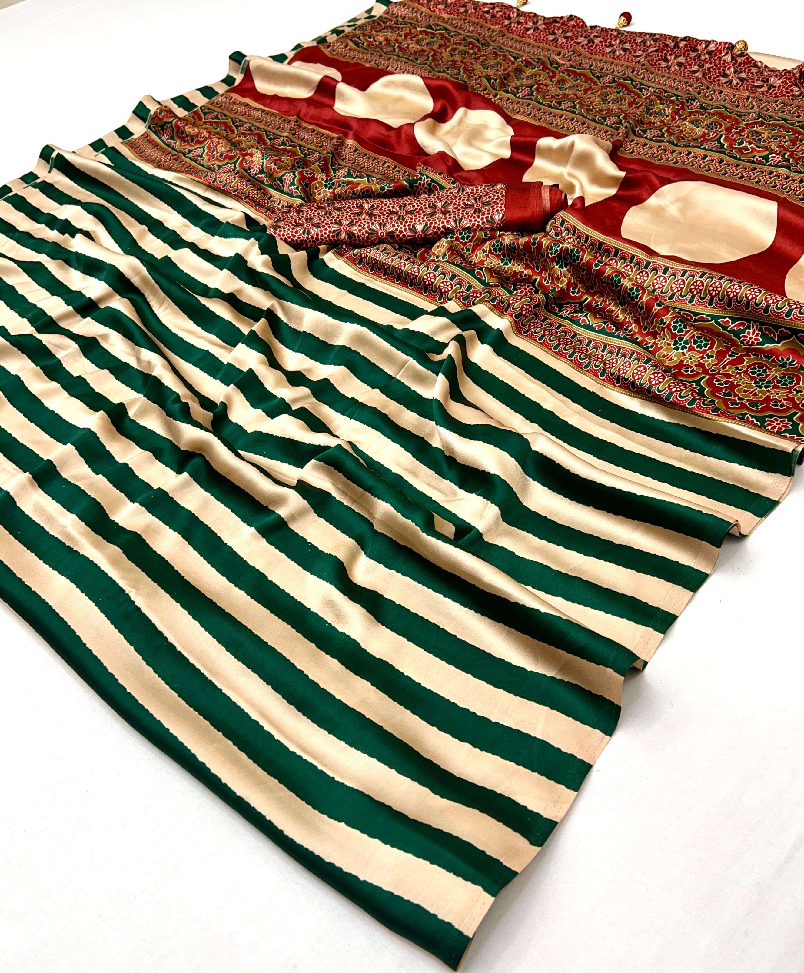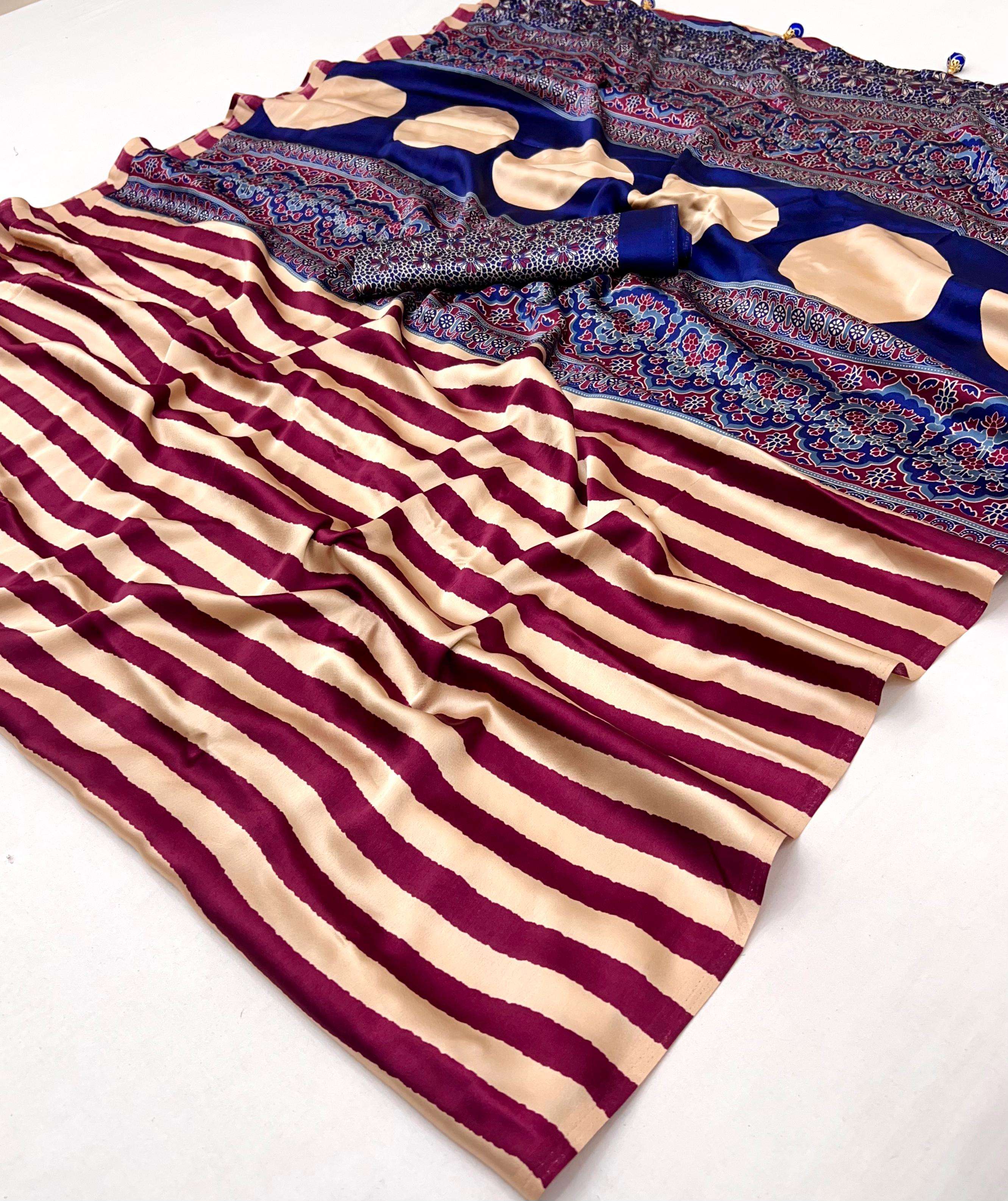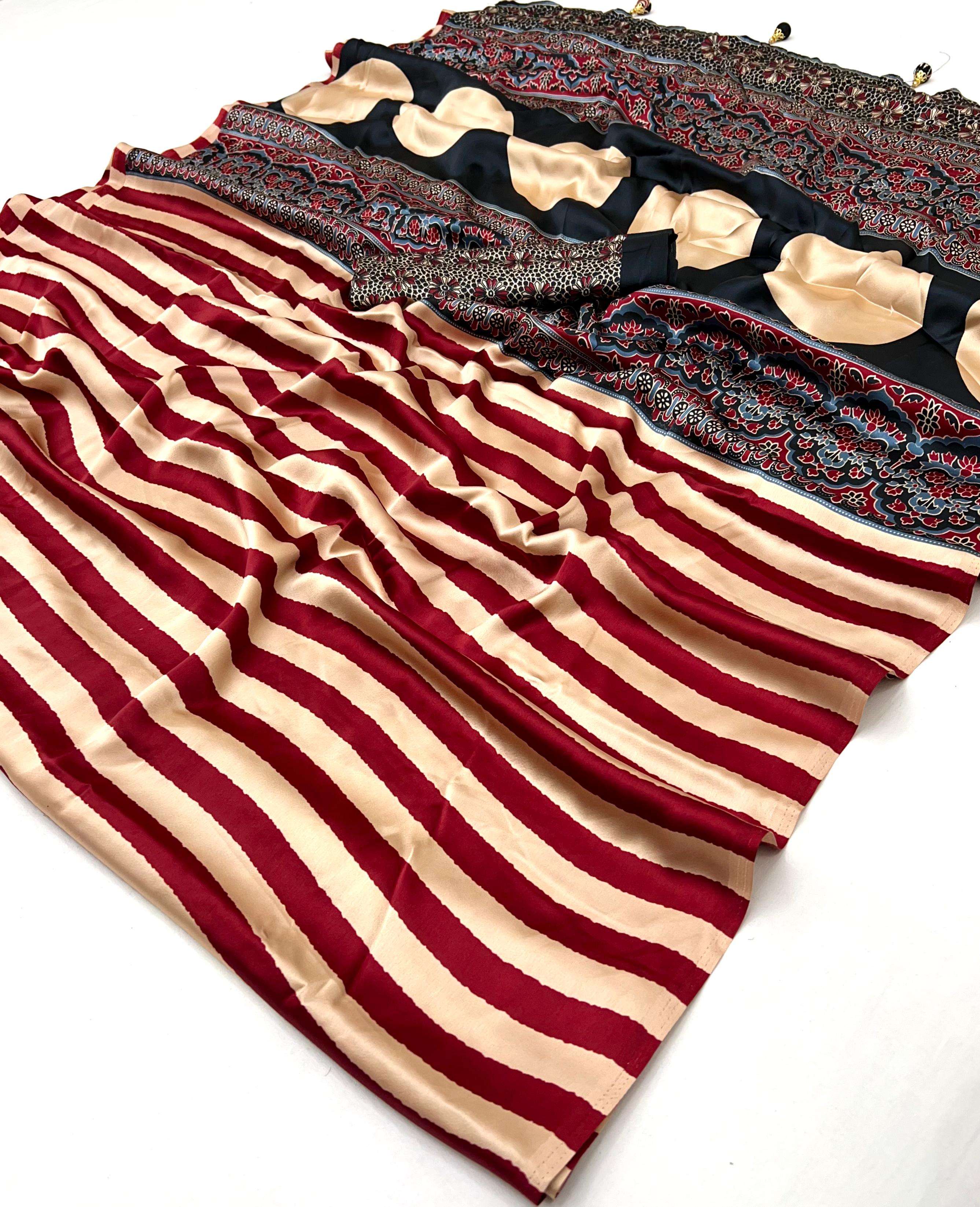 Fabric - *Printed Ajarakh Satin Crepe Saree*