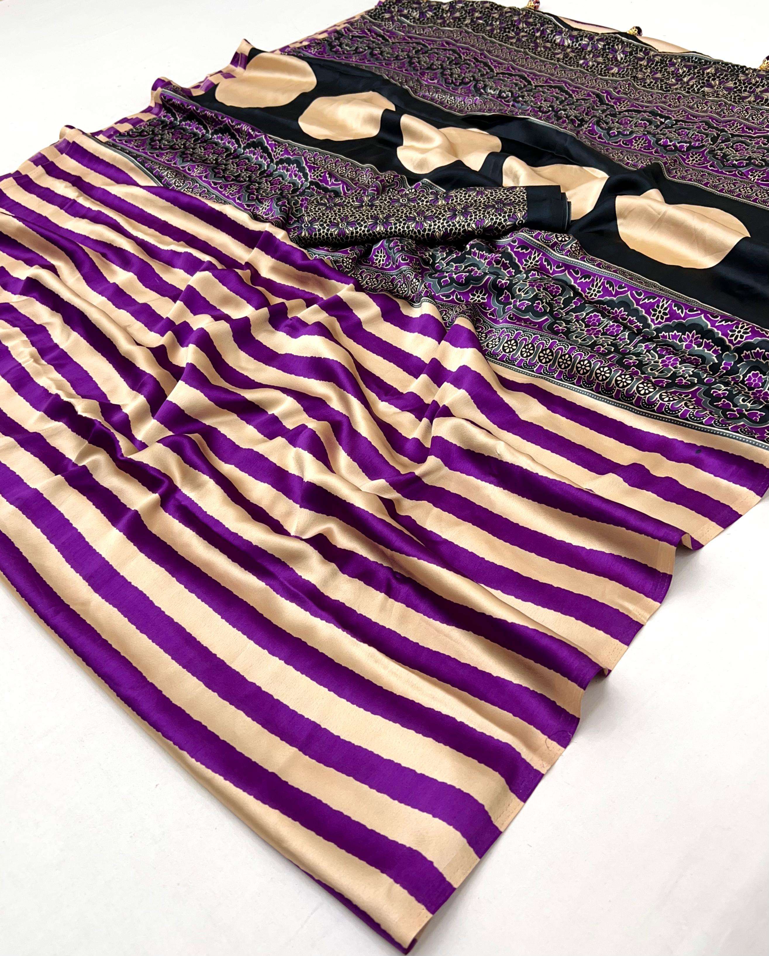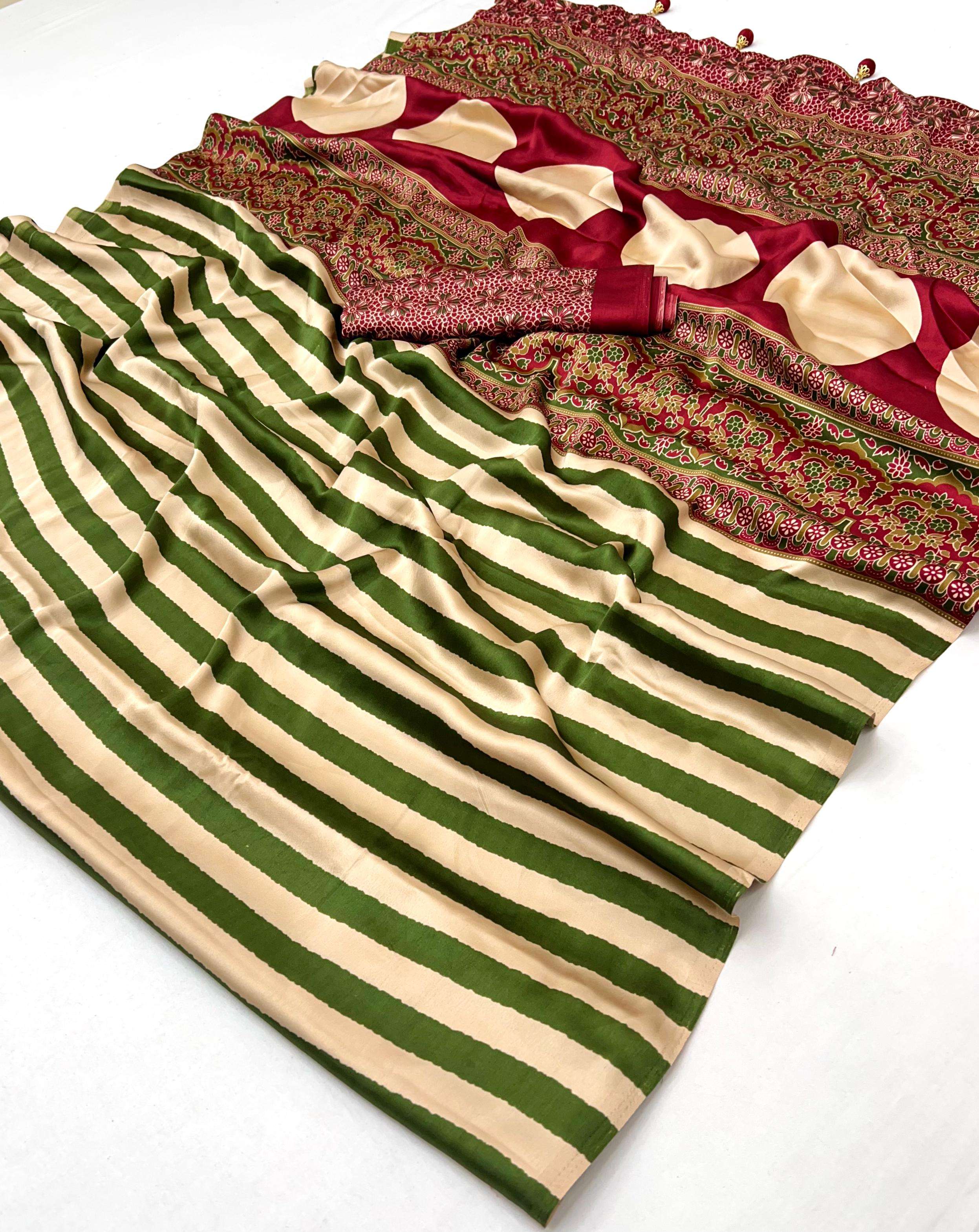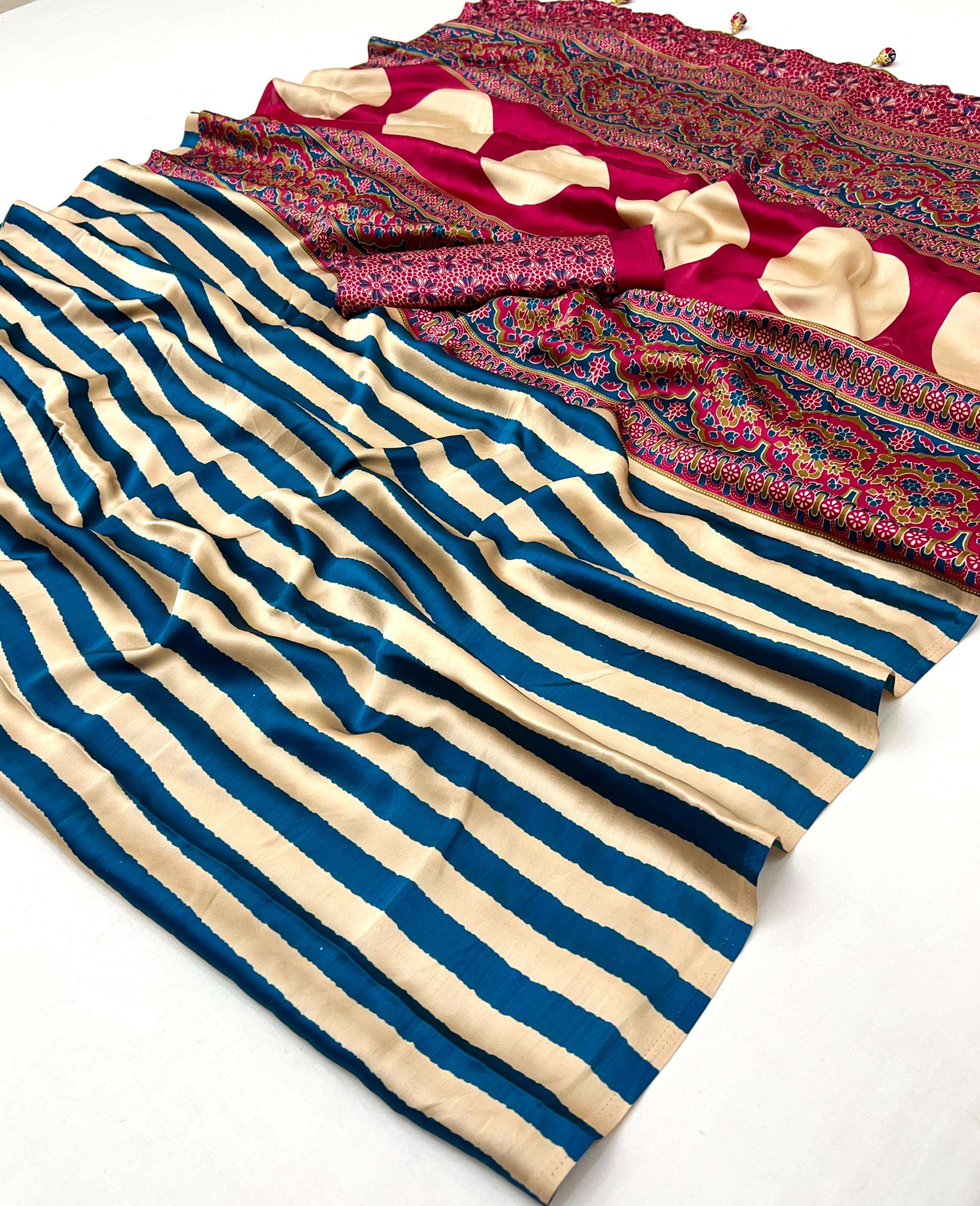 Fabric - *Printed Ajarakh Satin Crepe Saree*
