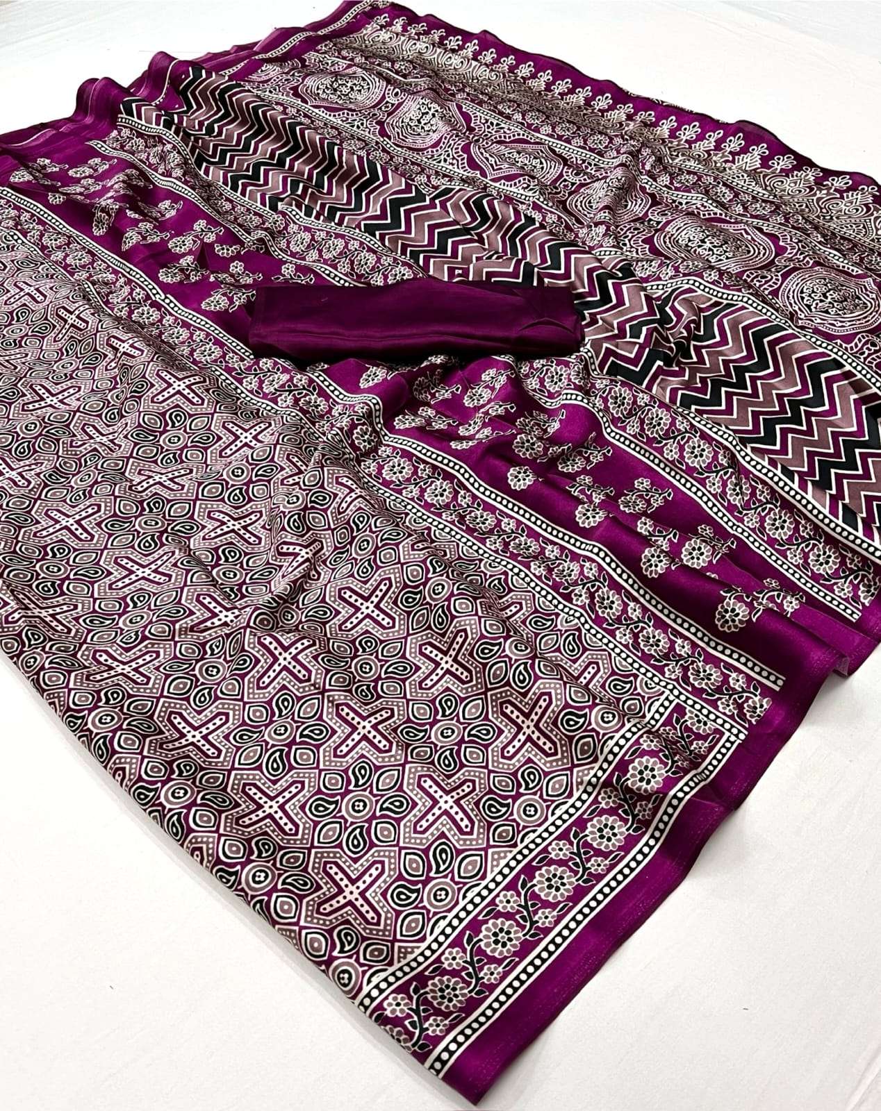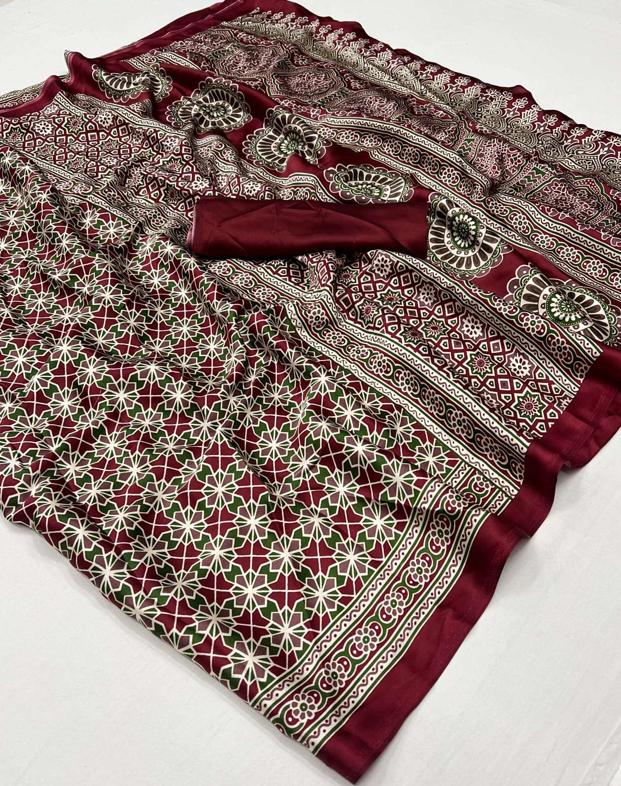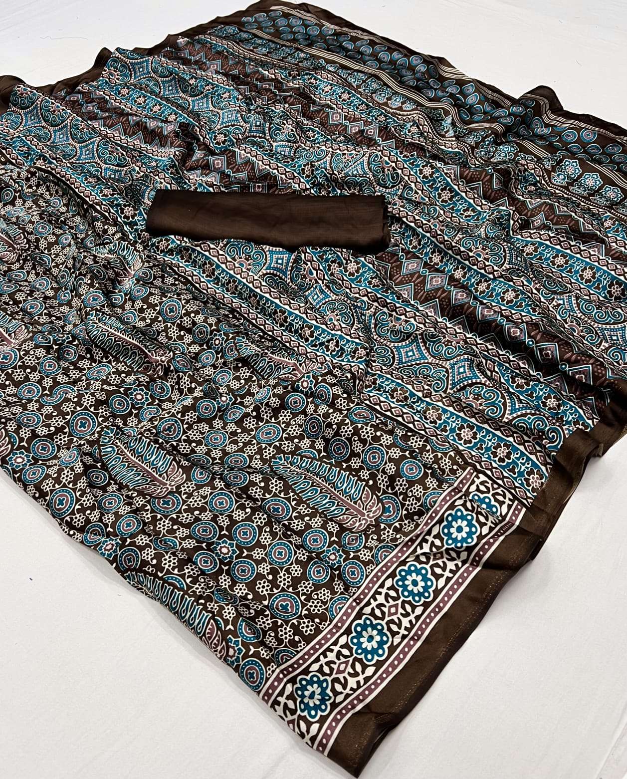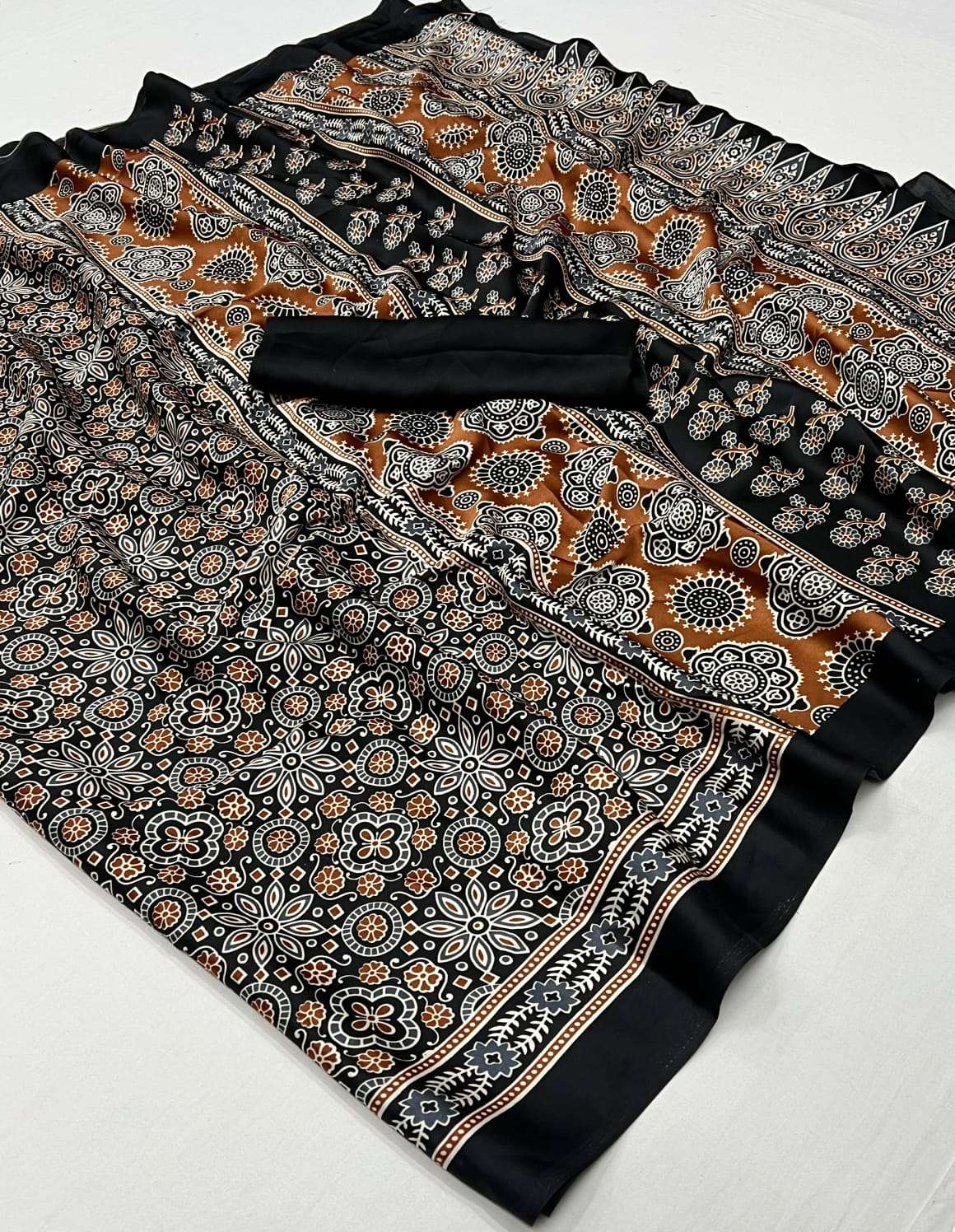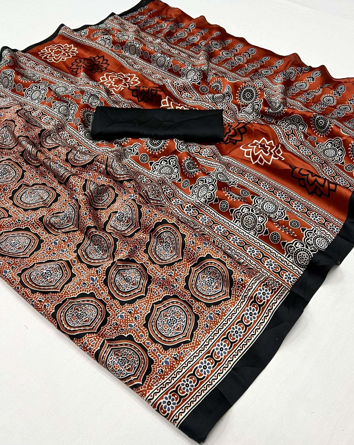 Fabric - *Printed Ajarakh Satin Crepe Saree*