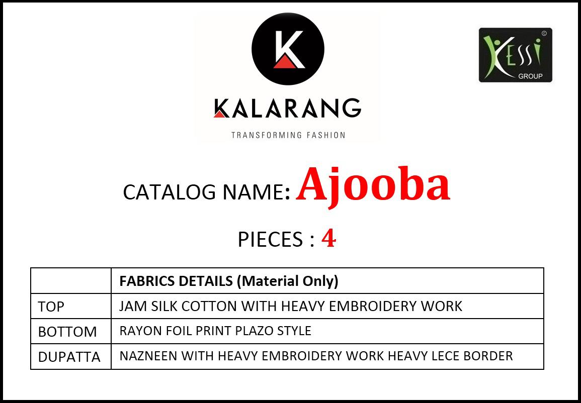 Buy Online Ajooba By Kalarnag Jam Silk Cottan With Heavy Emb Work Suit 4 Pcs of Full Catalogue at Wholesale Price. Looking for Ajooba By Kalarnag Jam Silk Cottan With Heavy Emb Work Suit Full Catalouge at Best Price? Buy Now Ajooba By Kalarnag Jam Silk Cottan With Heavy Emb Work Suit at Wholesale Rate of Rs 3596 with Total 4 Pcs from authroized dealer and supplier of Brand. Cost of Each piece is just only Rs 899 which is very low and affordable price to resale the product in your retail store ,This is Surat based Wholesale Supplier & Dealer of Brand. Click on Brand name to Know more about Brand's products.Call or Whatsapp on 9898838984 for booking or enquiry