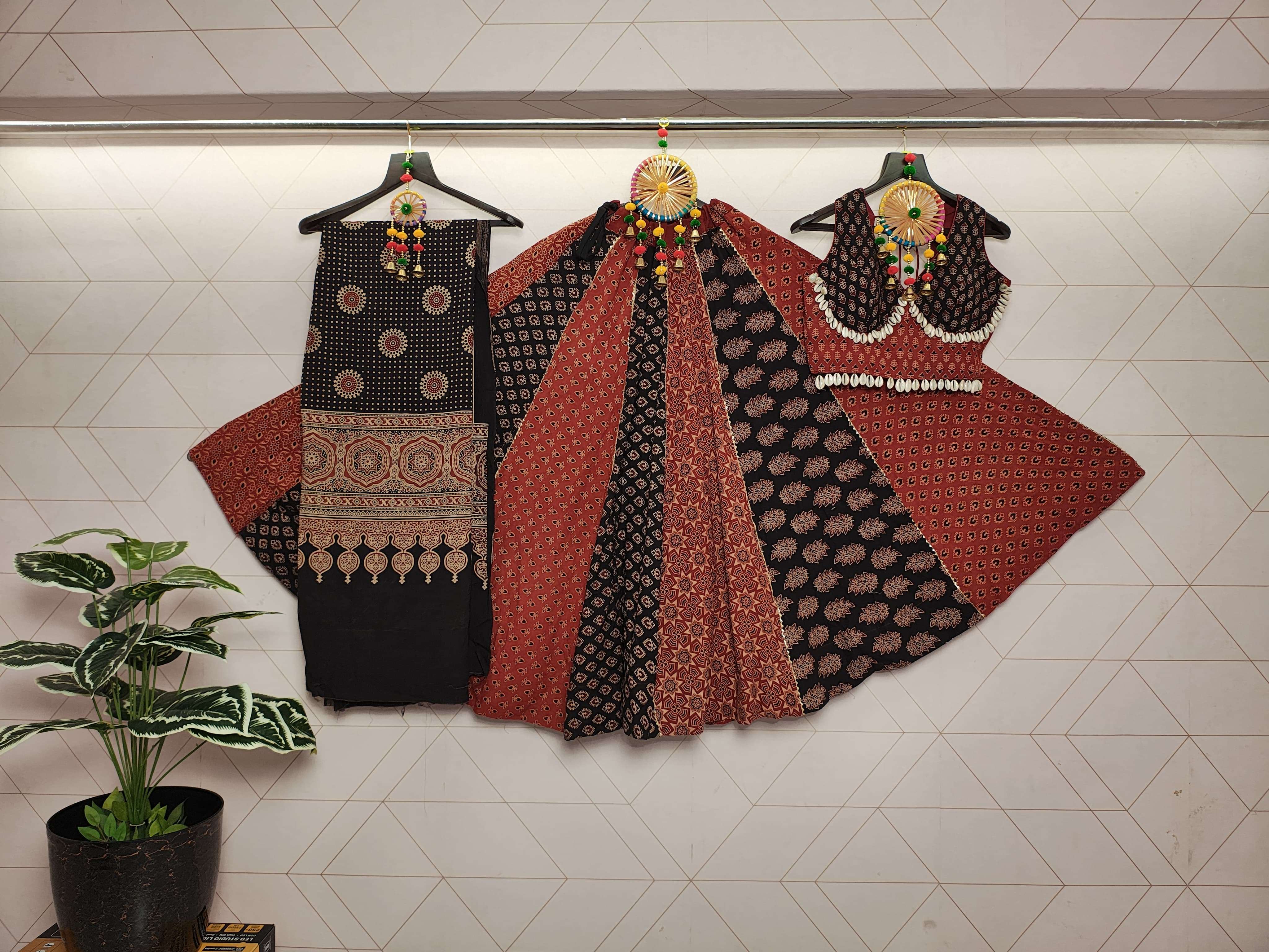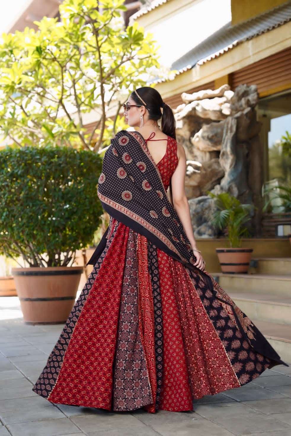 *Step into Navratri with grace and tradition – handcrafted Ajrakh on pure cotton, made to dance through every garba night*