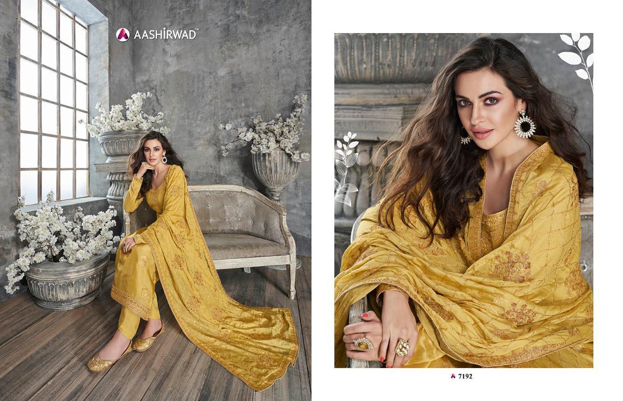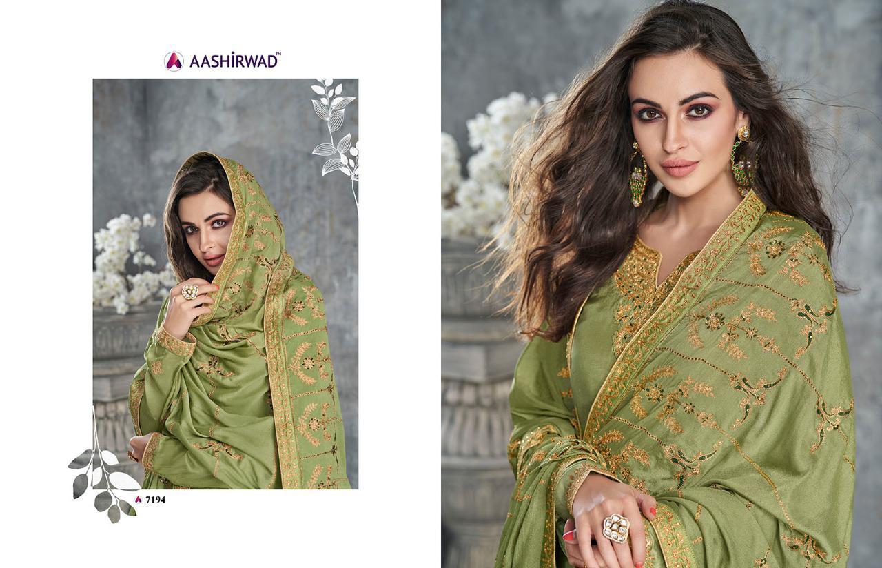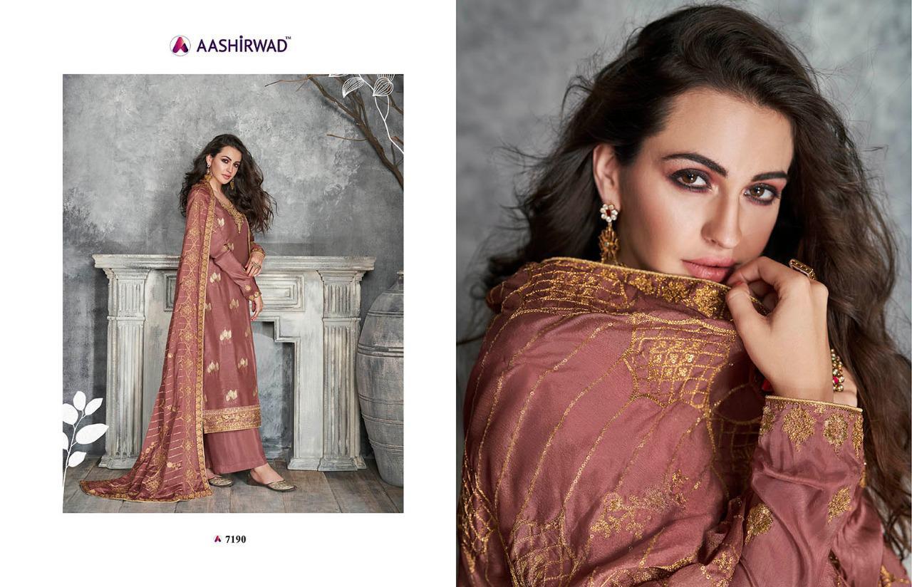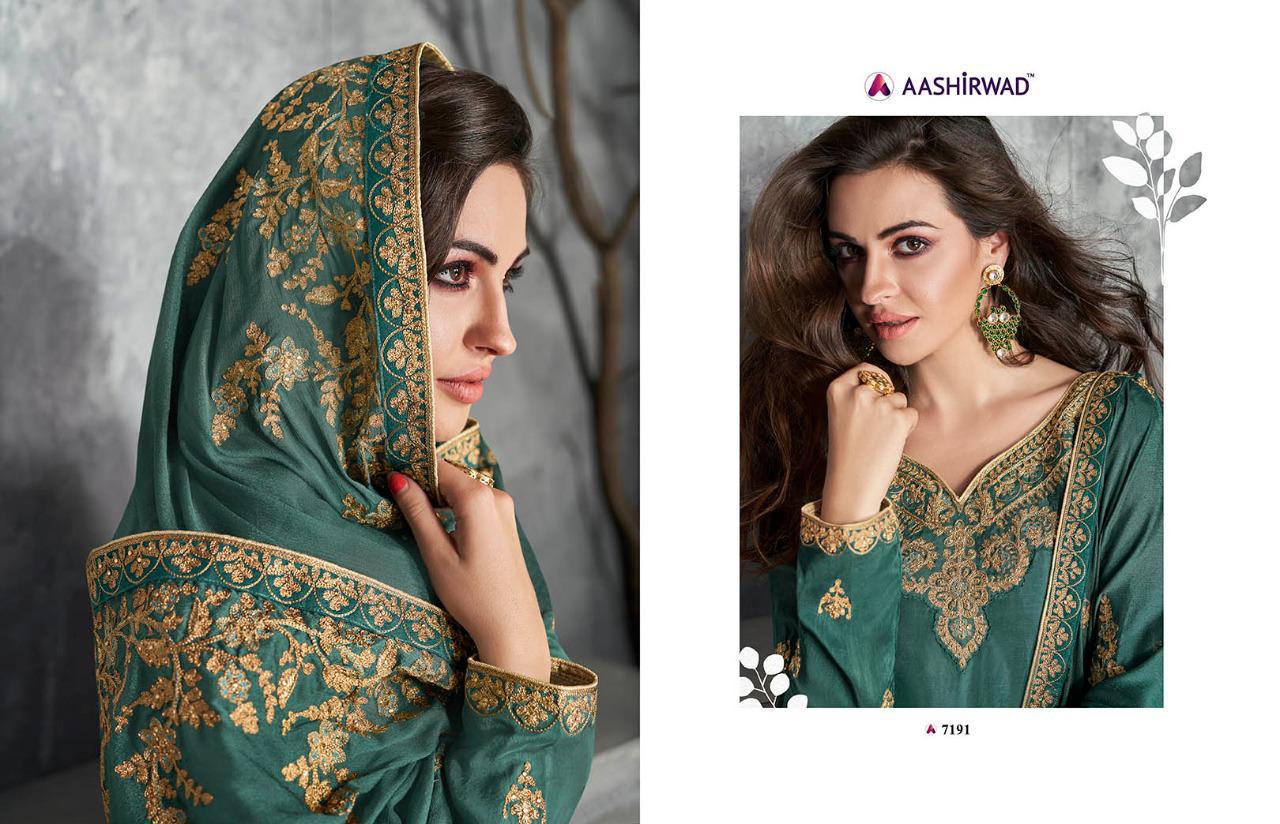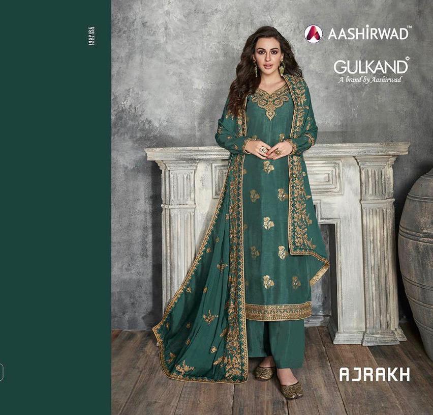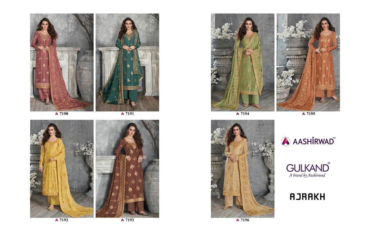 Brand - Ashirwad . AASHIRWAD AJRAKH (7 pcs ) Top- Pura DOLLA silk Inner - Dull Santoon Bottom- Dull Santoon Duptta - chinnon with heavy embroidery Price - 1895 Gst - 5 percent extra Set to set . GST 5 Percent Extra Dispatching in 3 days !!! |