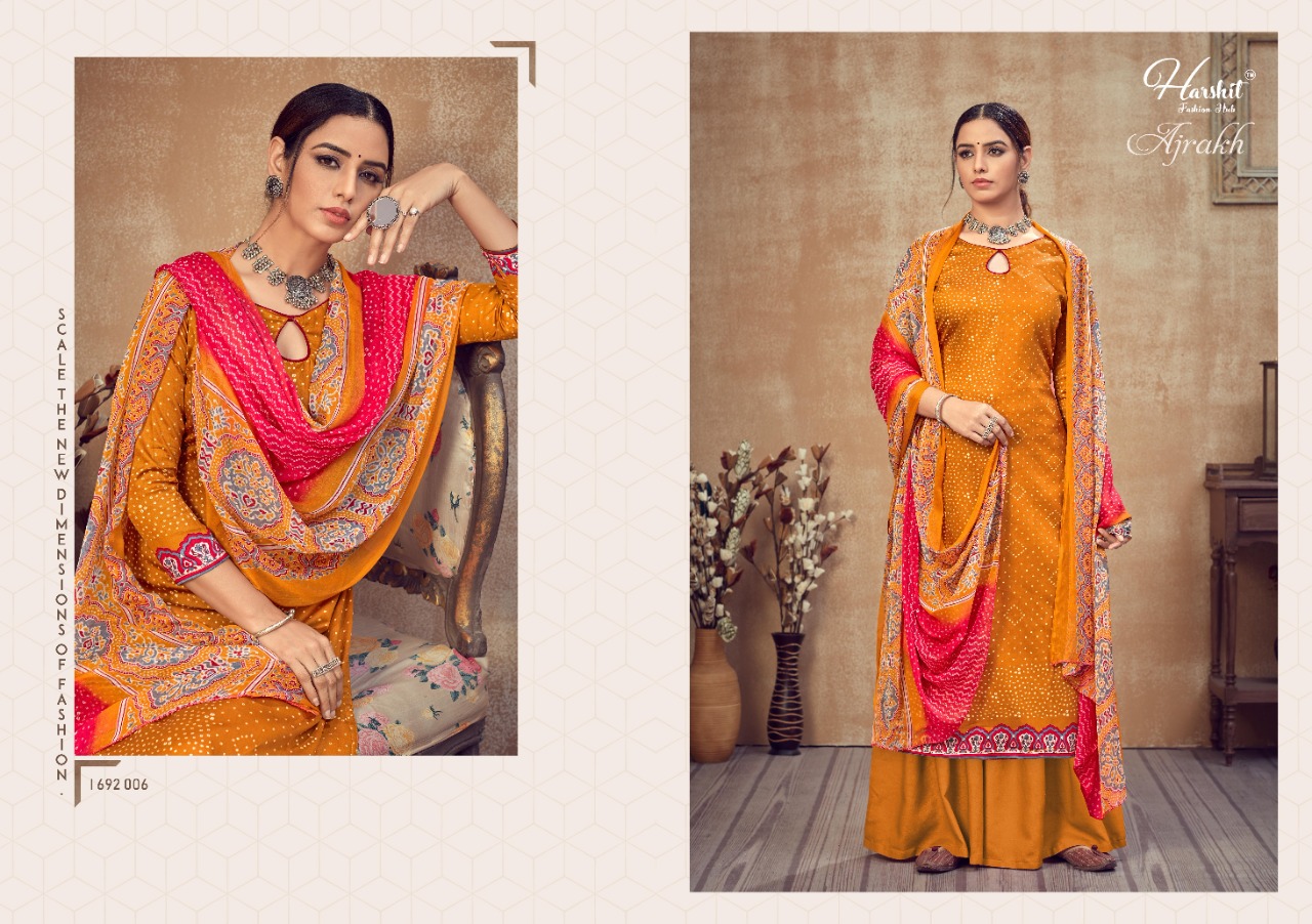 AJRAKH by alok suit make in India single and catlogue wholsaler ? *Harshit Fashion Hub by Alok Suit - Make in India* ? Launches its New Catalog: *AJRAKH* *Fabric Details:* ? *TOP: Pure Zam Digital Bandni Print* ? BOTTOM: Pure Cotton Solid ? *DUPPATTA: Pure Nazneen Print* *Rate:* 4??4??5?? + 5??% GST ?pcs There is *No RD* in Harshit Fashion Brand by Alok Suit *HD images:* https://photos.app.goo.gl/MUzgpqa1NgLoBC7f8 Happy ShoppingÂ? *Vocal for Local* |