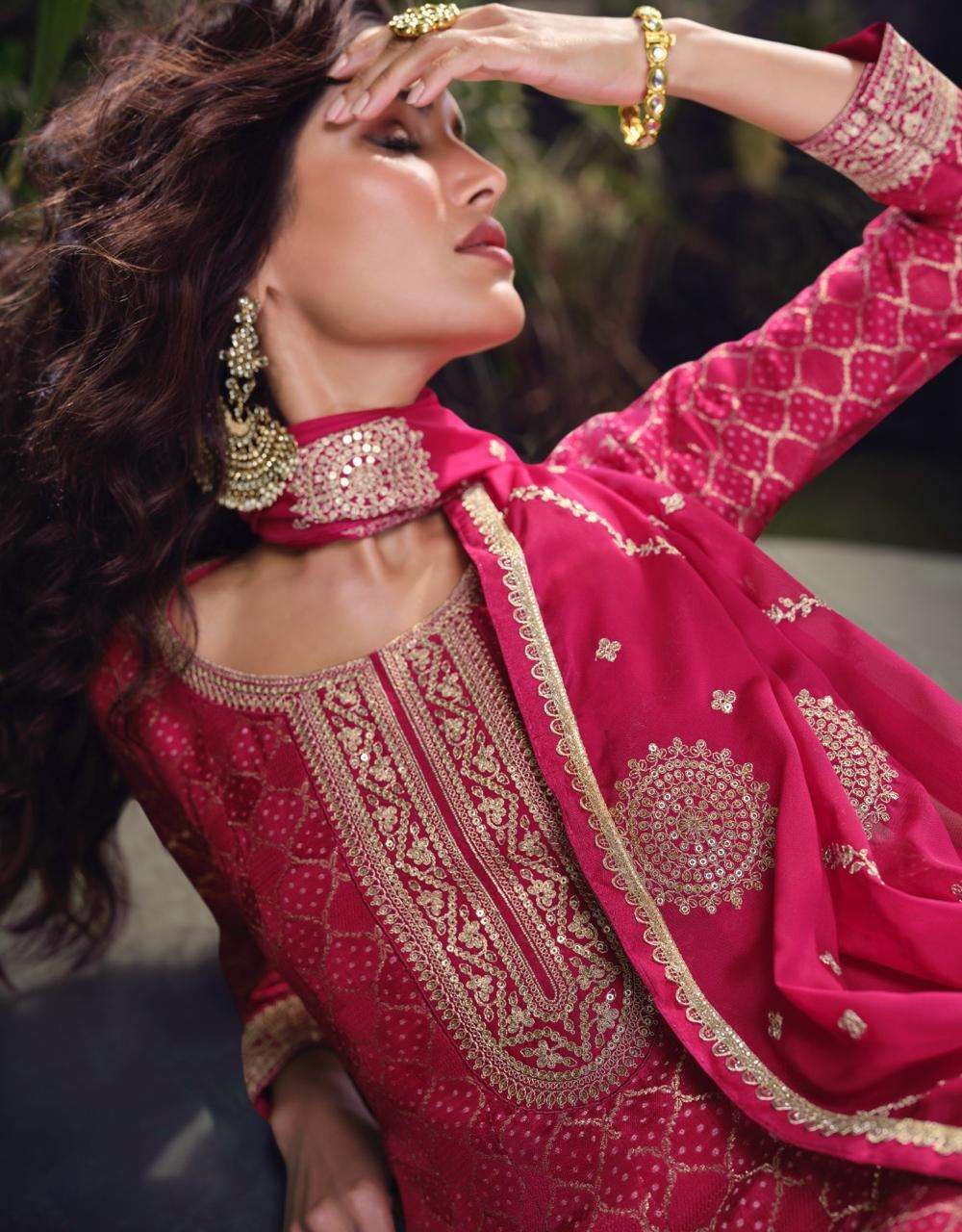 FABRIC - PURE VISCOS JACQUARD SILK ( FRONT AND BACK EMBROIDERED WITH EMBROIDERED PLAZZO AND DUPATTA )
