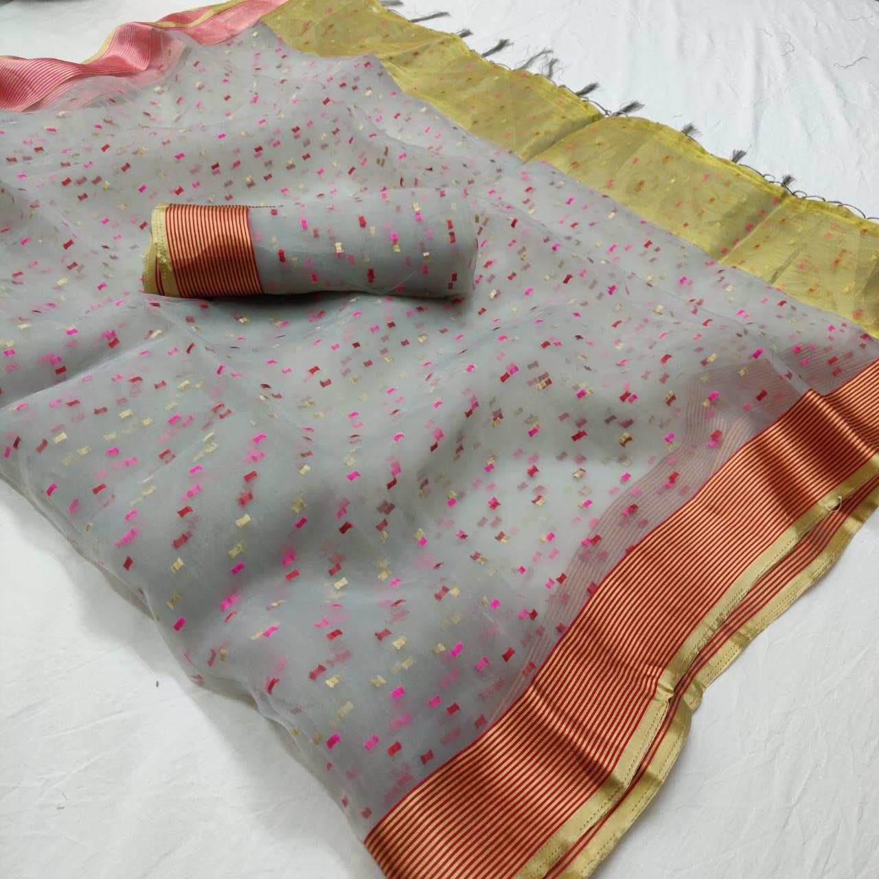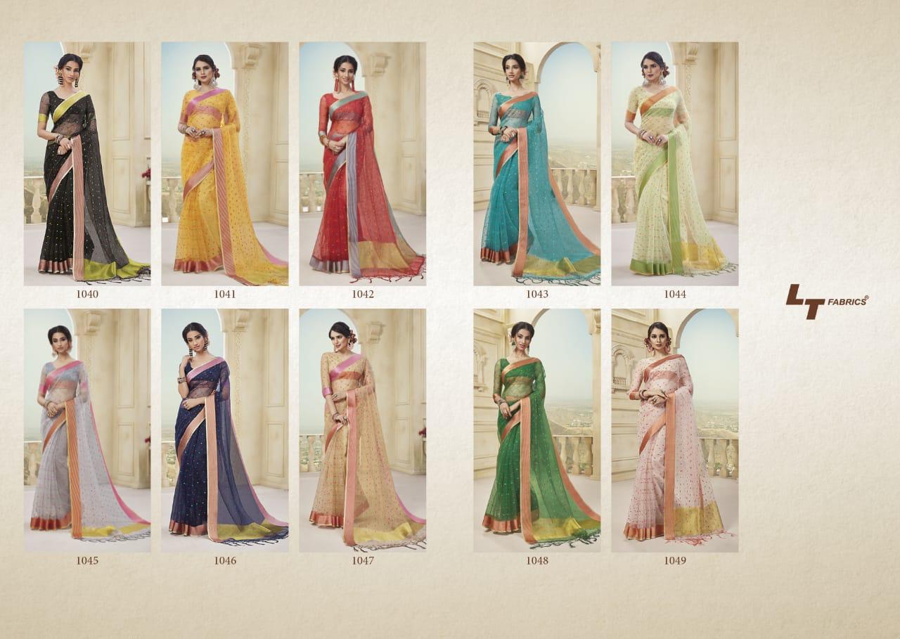 Brand - LT . Type - Saree. L.T.FASHION Akshra Rate 555 Fabrics = kora silk Set To Set. 10 pcs set. GST 5 Percent Extra. Delivery from today. |