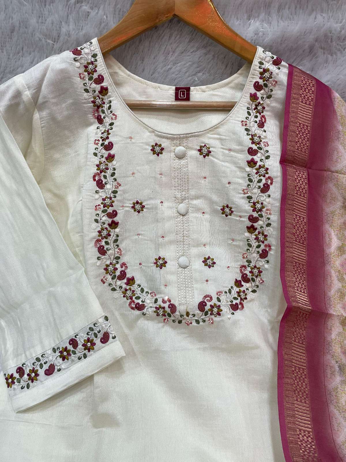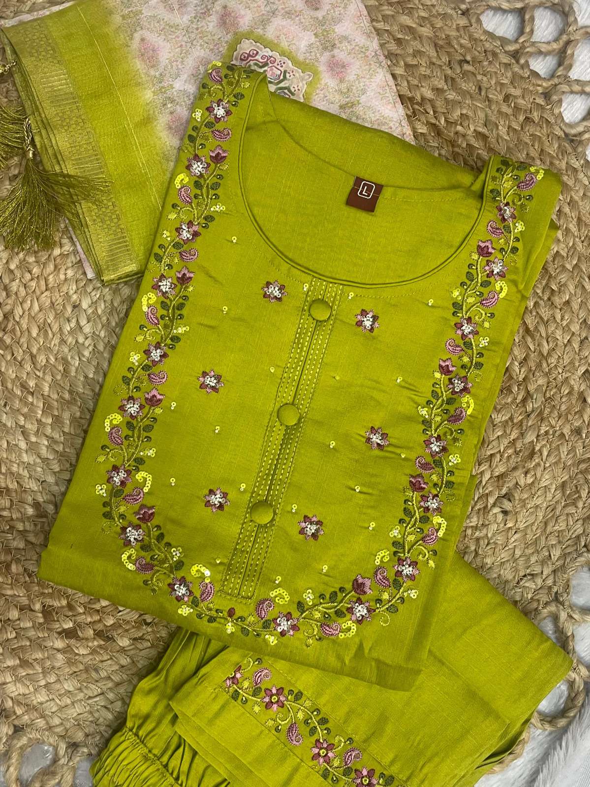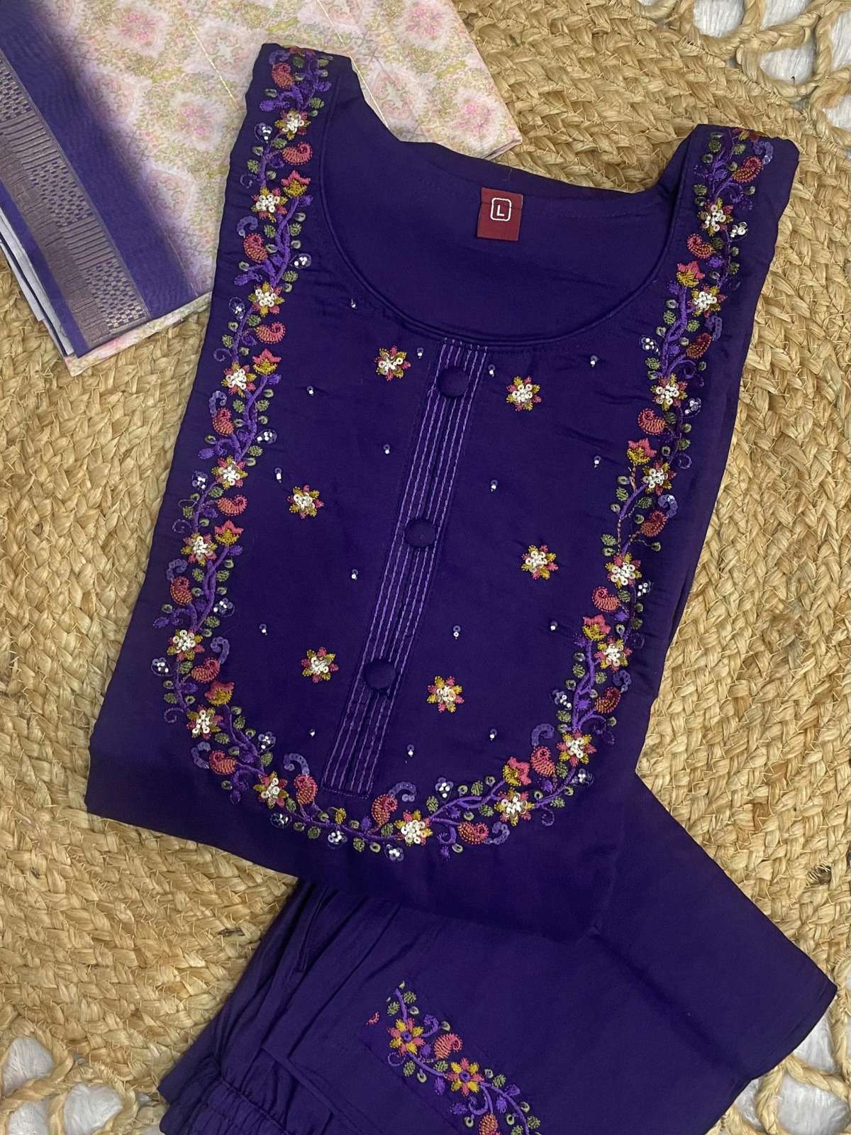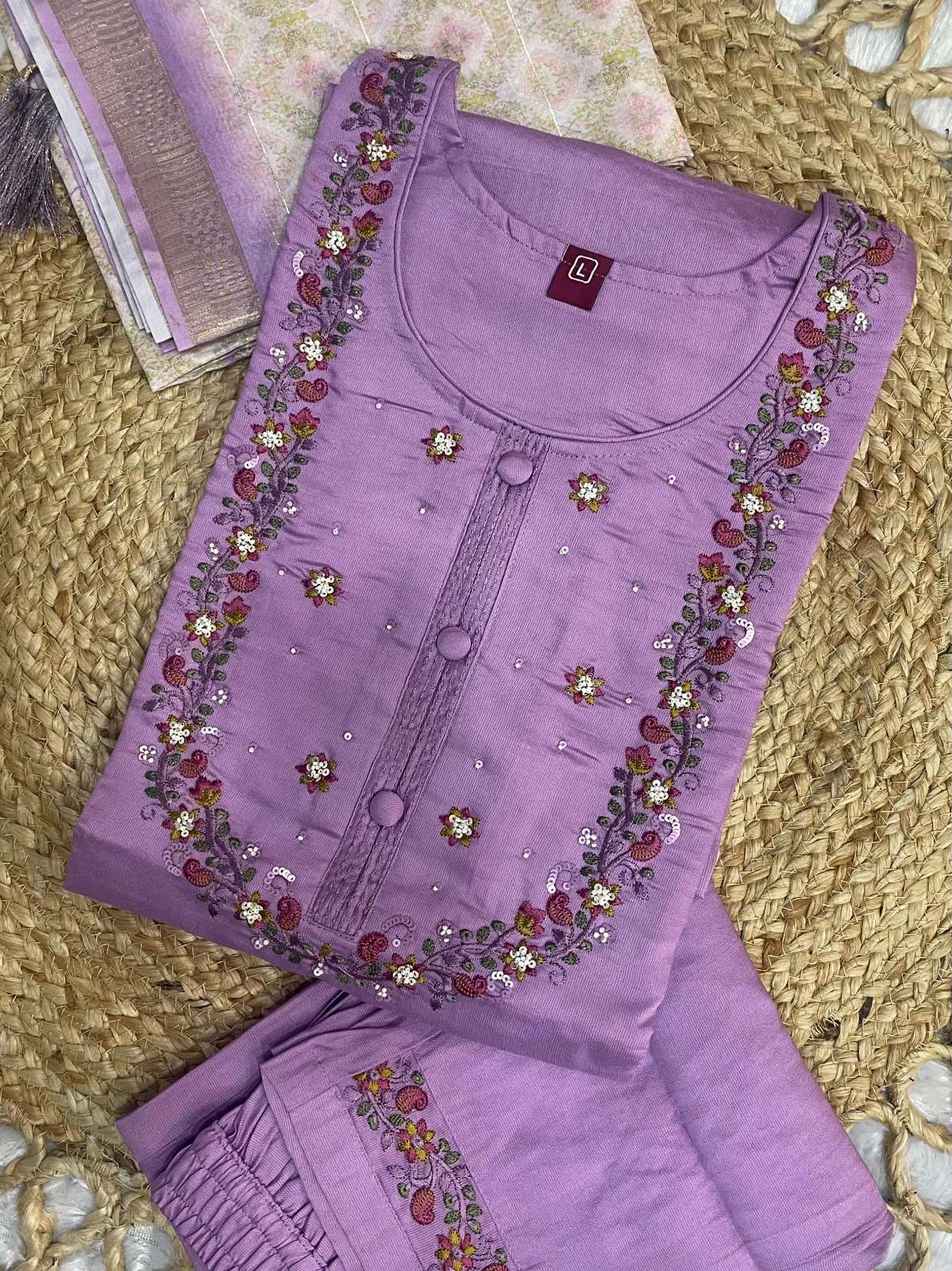 👉Pant (Stitched)👇 Fabric :- Marina Silk Work :- Multi Embroidery Thread Length: 38”