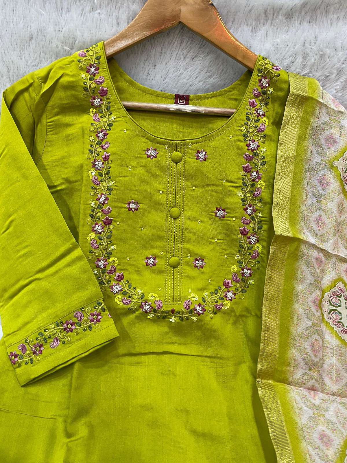 👉Dupatta:-👇 Fabric :-Maslin Work :- Digital Print Length :- 2.5 Meter Package Contains :- Kurti, Pant, Dupatta Weight: 0.750 kg COLOUR:- 6 (Wine, Parrot Green, Off White, Lavender, Purple, Peach)