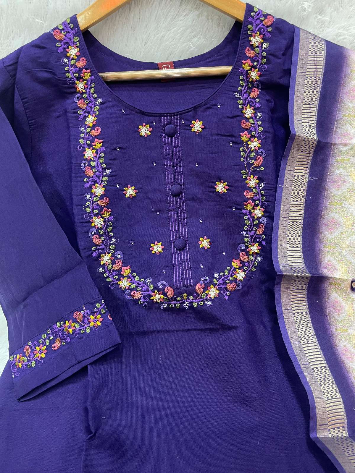 👉Kurti (Stitched)👇 Fabric :- Marina Silk Work :- Multi Embroidery Thread With Hand Work Chest Size :- M(38”),L(40”),XL(42”),2XL(44”),3XL(46”) Length :- 46” Sleeve Length :- 16”