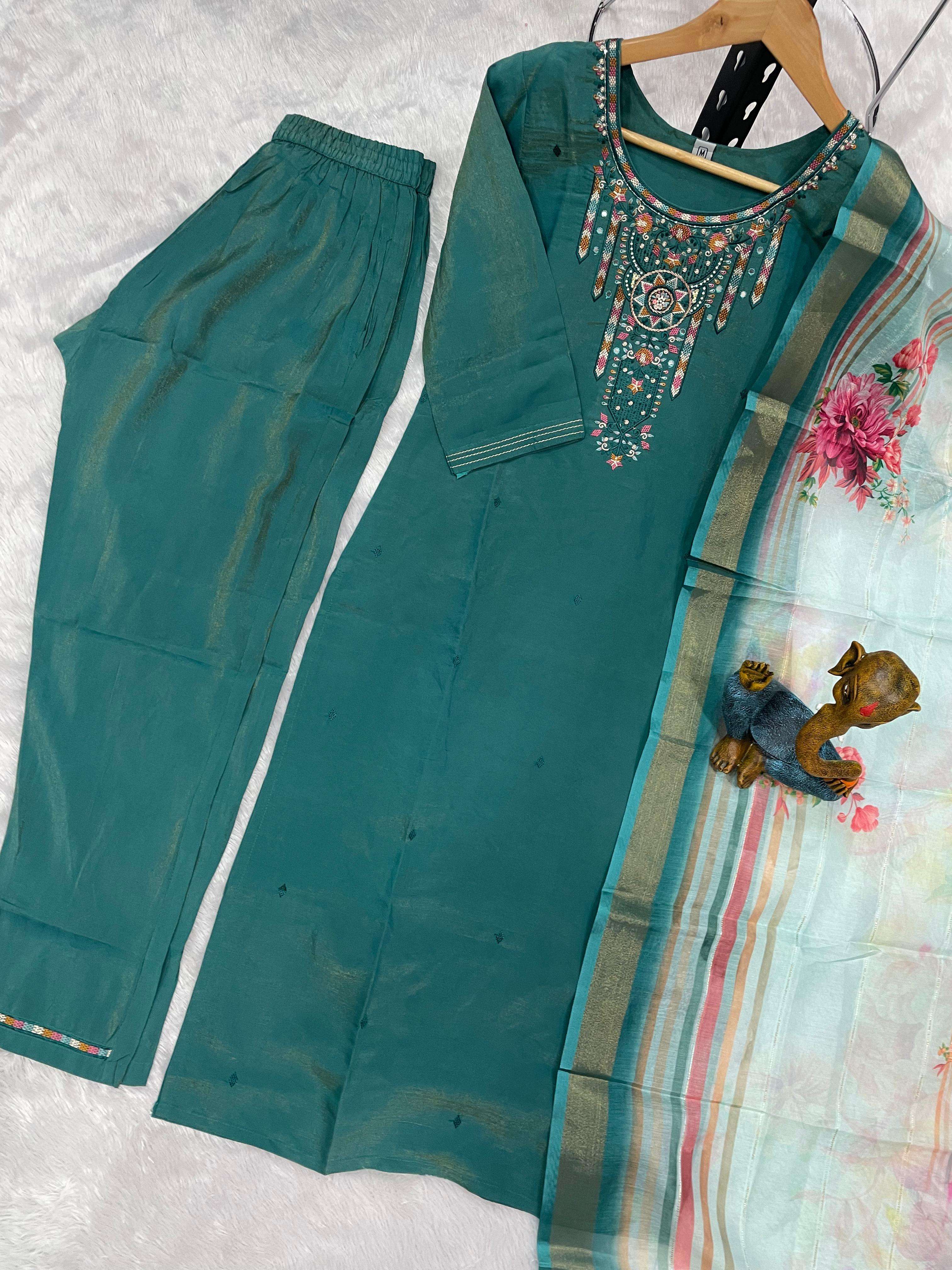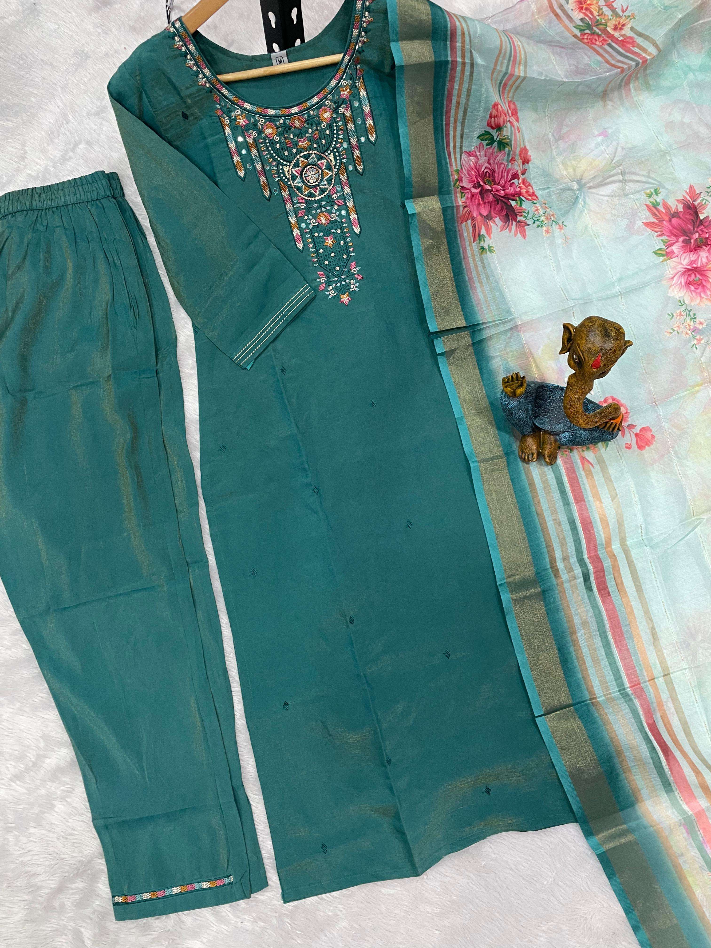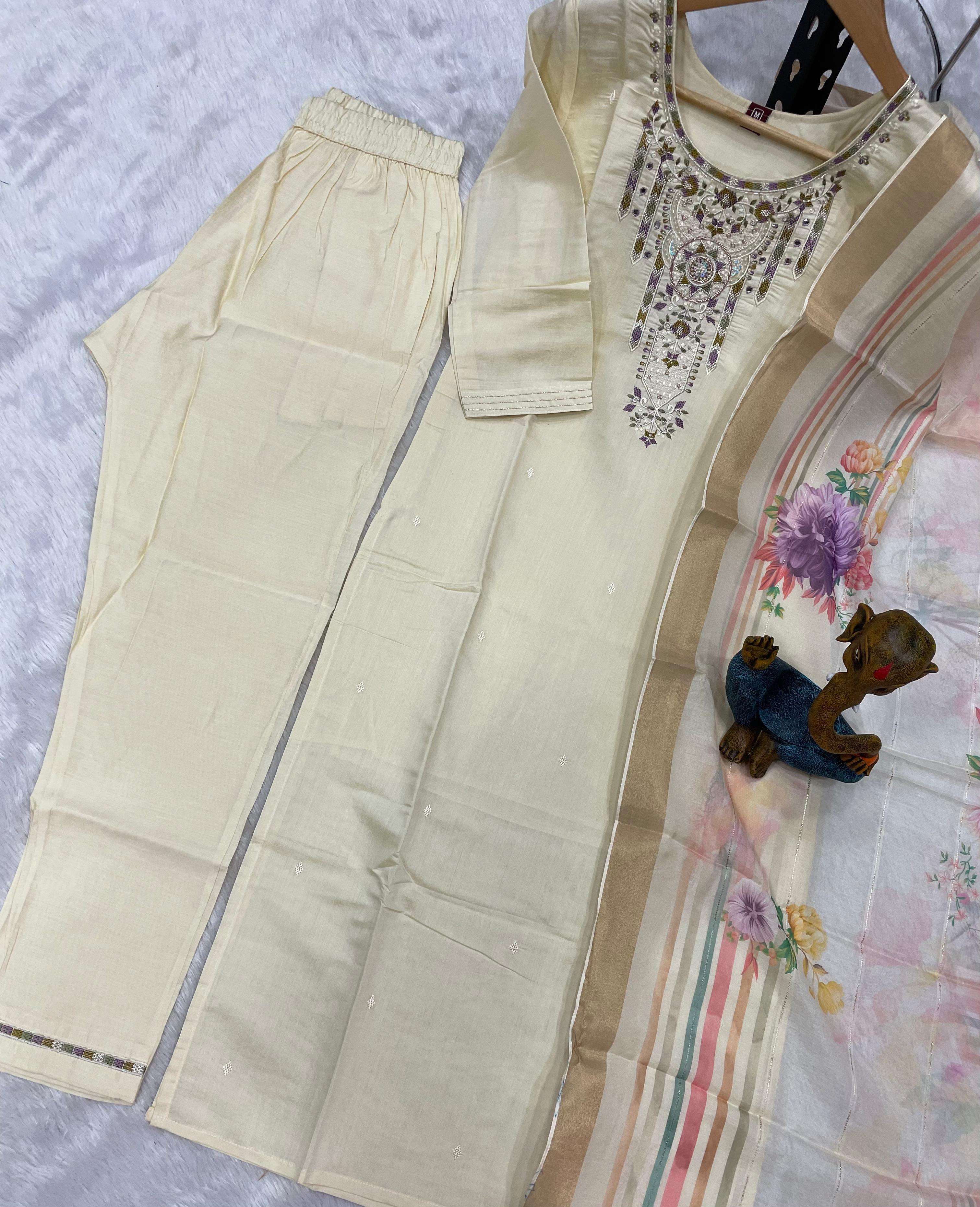 *Dupatta* Fabric :-Maslin Work :- Digital Print Length :- 2.25 Meter Package Contains :- Kurti, Pant, Dupatta Weight: 500gm