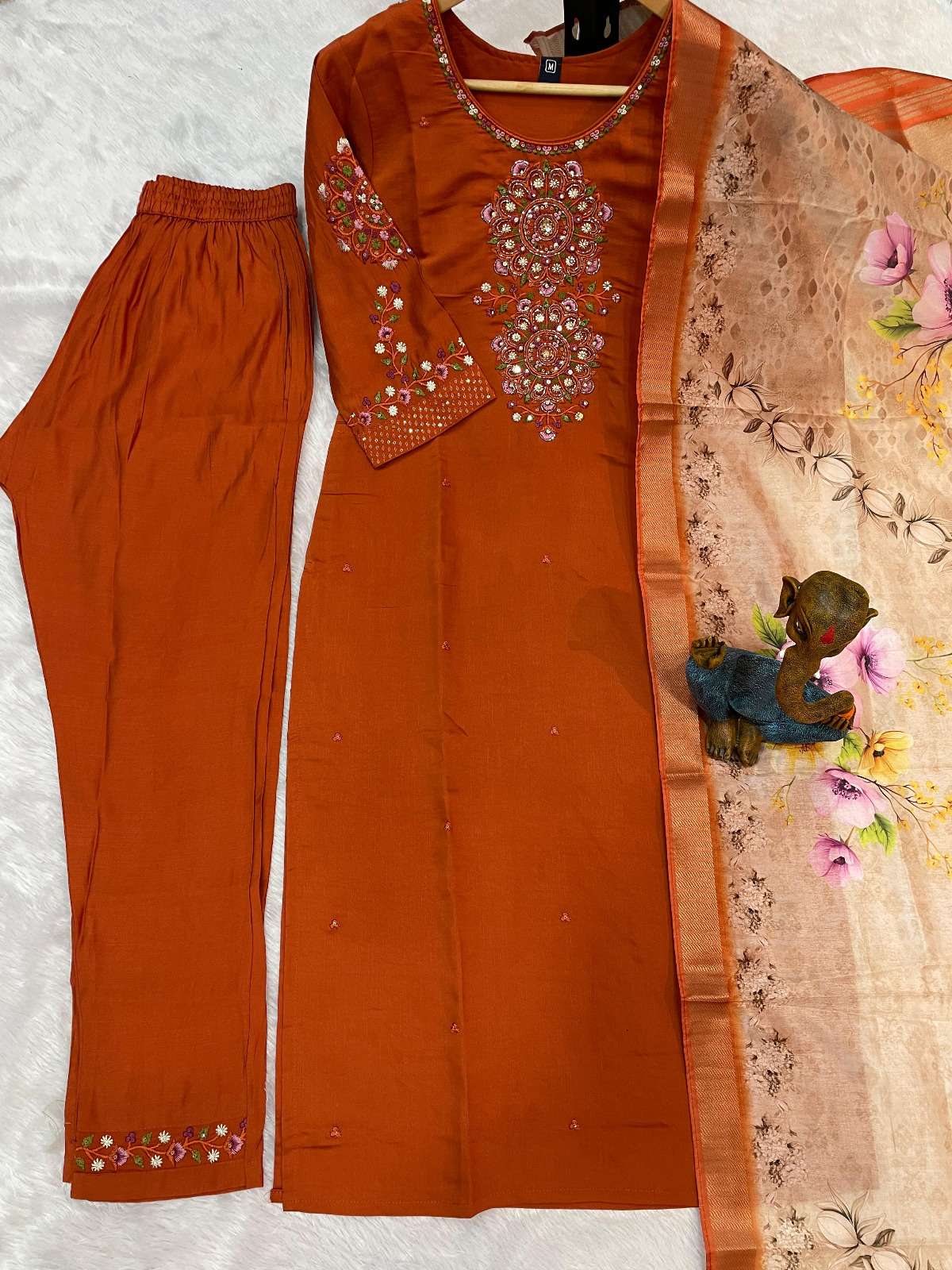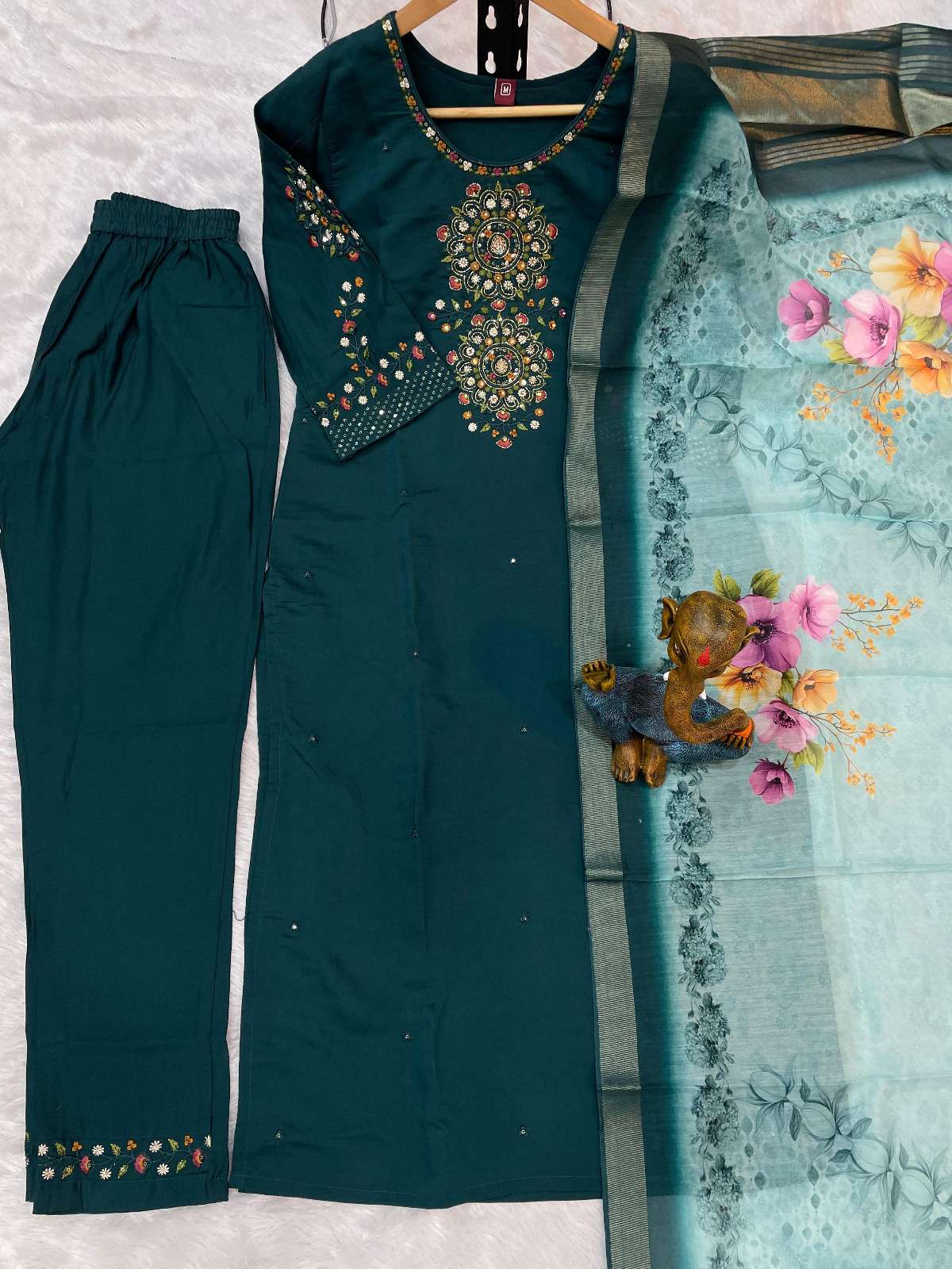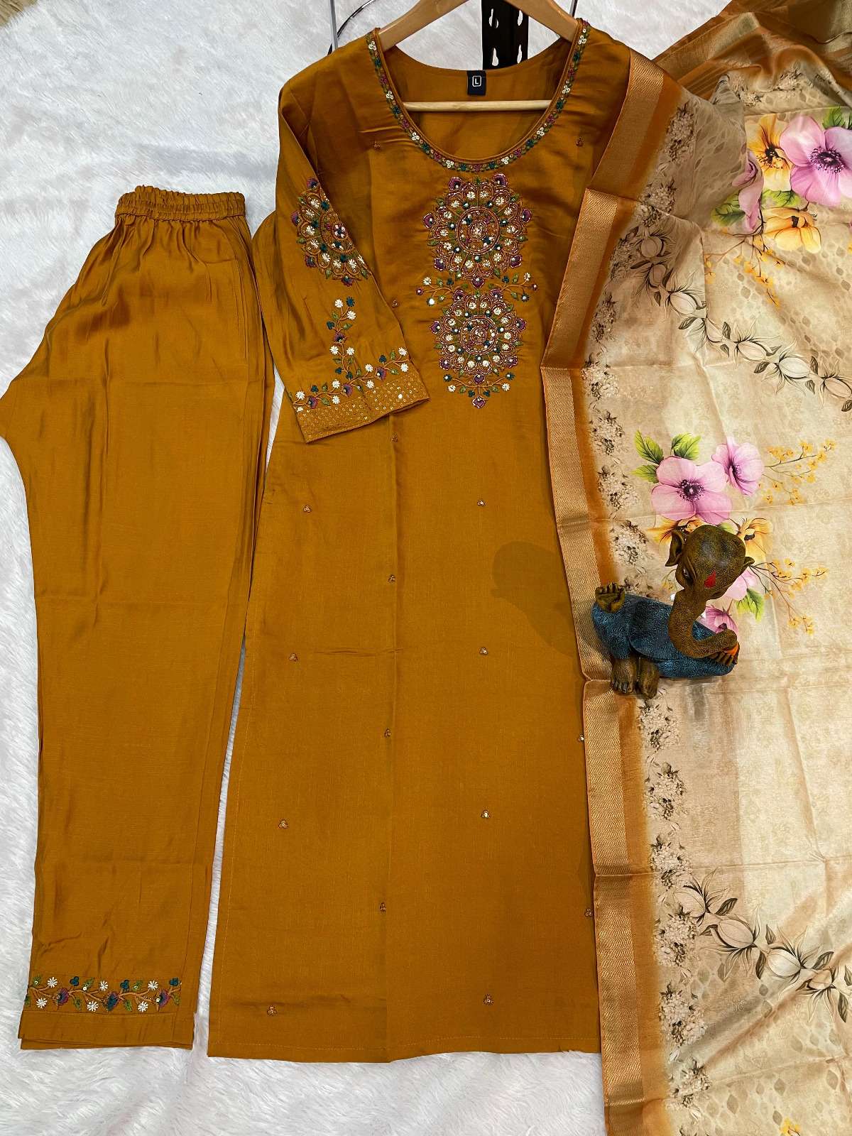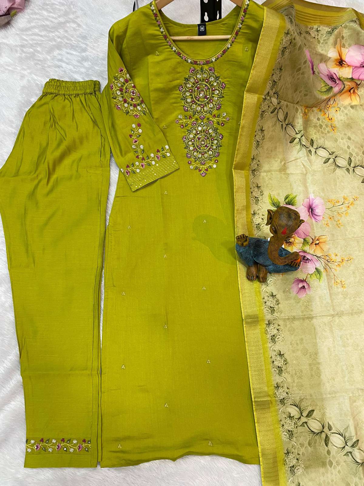 👉🏻*Dupatta*👇🏻 Fabric :- Chanderi Silk Work :- jacquard border Work With Bluetiful Digital Print Length :- 2.25 Meter Package Contains :- Kurti, Pant, Dupatta Weight: 0.600 kg
