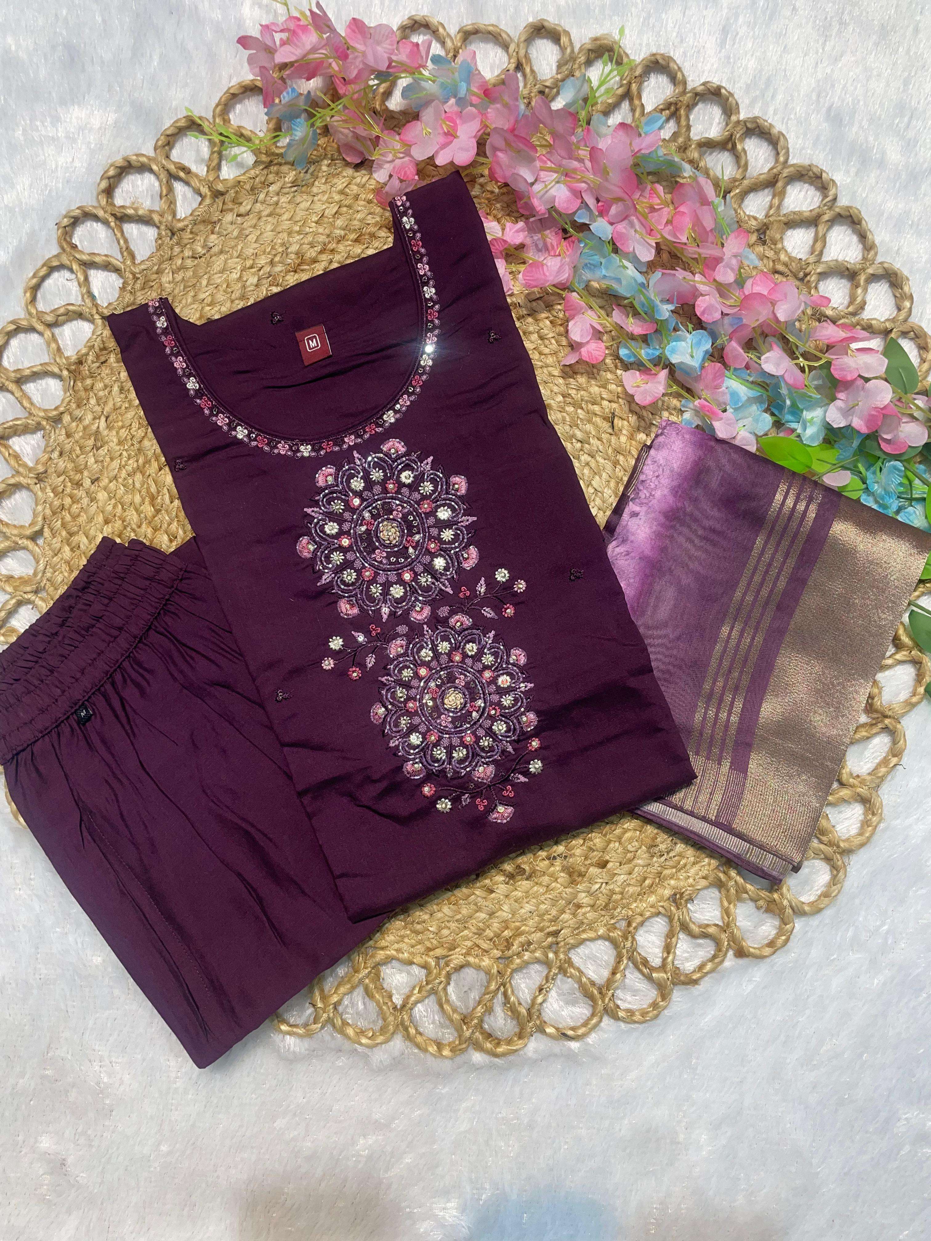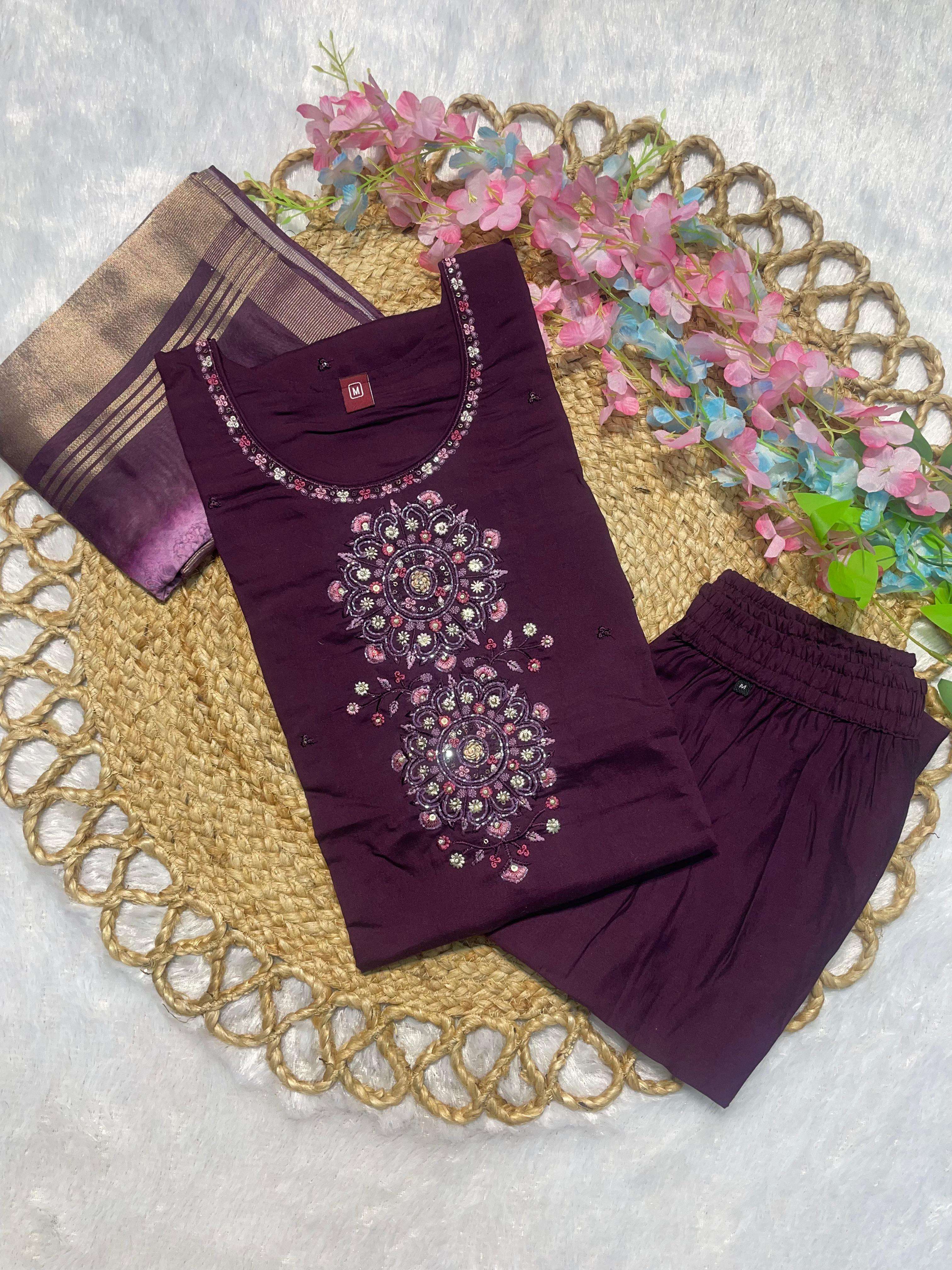 👉🏻*Pant (Stitched)*👇🏻 Fabric :- Viscose Silk Work :- Multi Embroidery Thread Work Fit :- Straight-Cut Pant for a sleek look Length: 38”